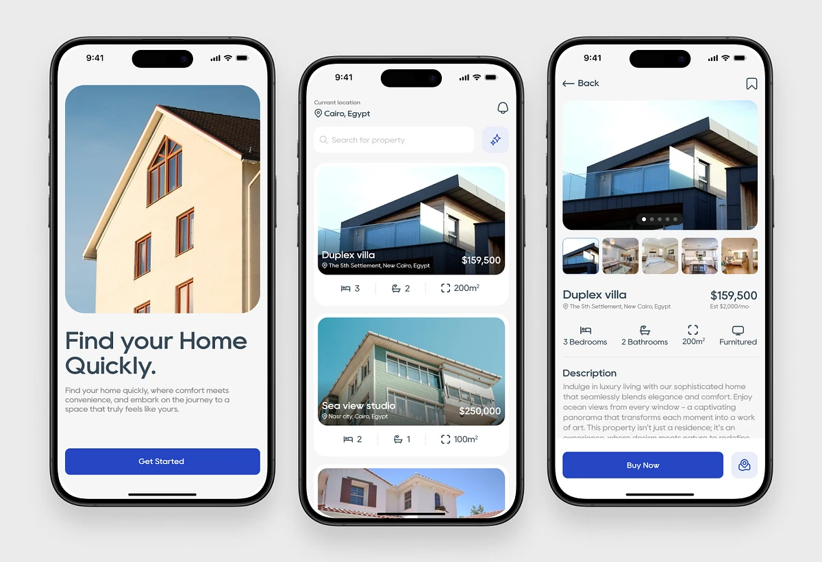 A modern, user-friendly mobile app that helps users easily browse, filter, and explore property listings. Designed with a clean interface, smart search, and map integration to streamline the home-buying or renting experience.