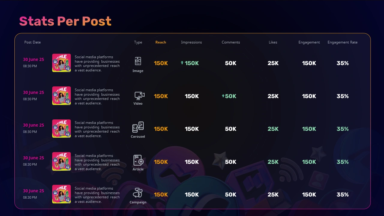 Designed for recurring client use, this Social Media monthly report improves workflow efficiency, maintains brand consistency, and delivers professional, easy-to-understand insights for strategic decision-making.