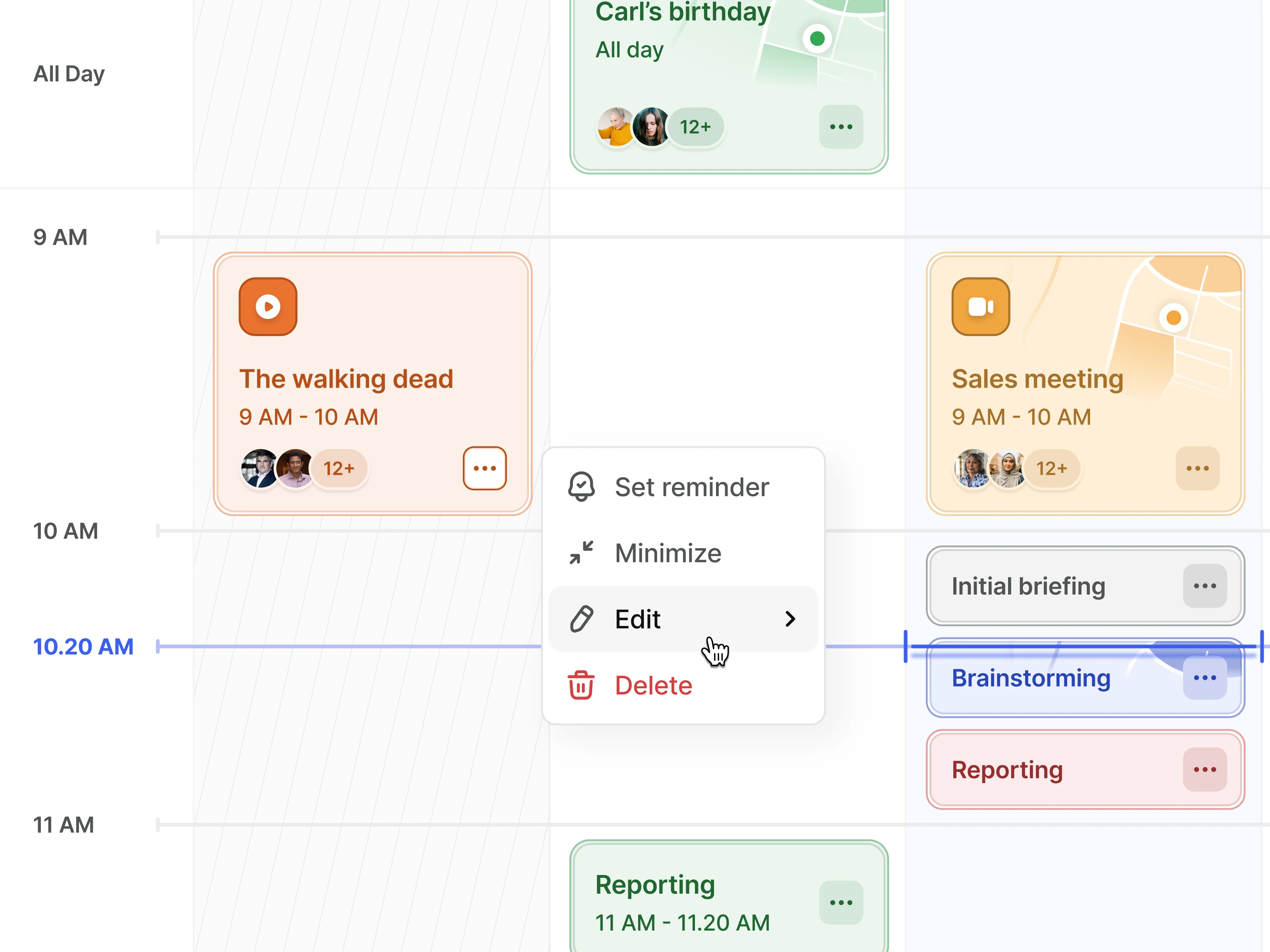 An intuitive web calendar interface designed for organizing events, tasks, and schedules with ease. Users can view events in a structured timeline, edit details, set reminders, and switch between different color-coded event categories for better visual clarity.