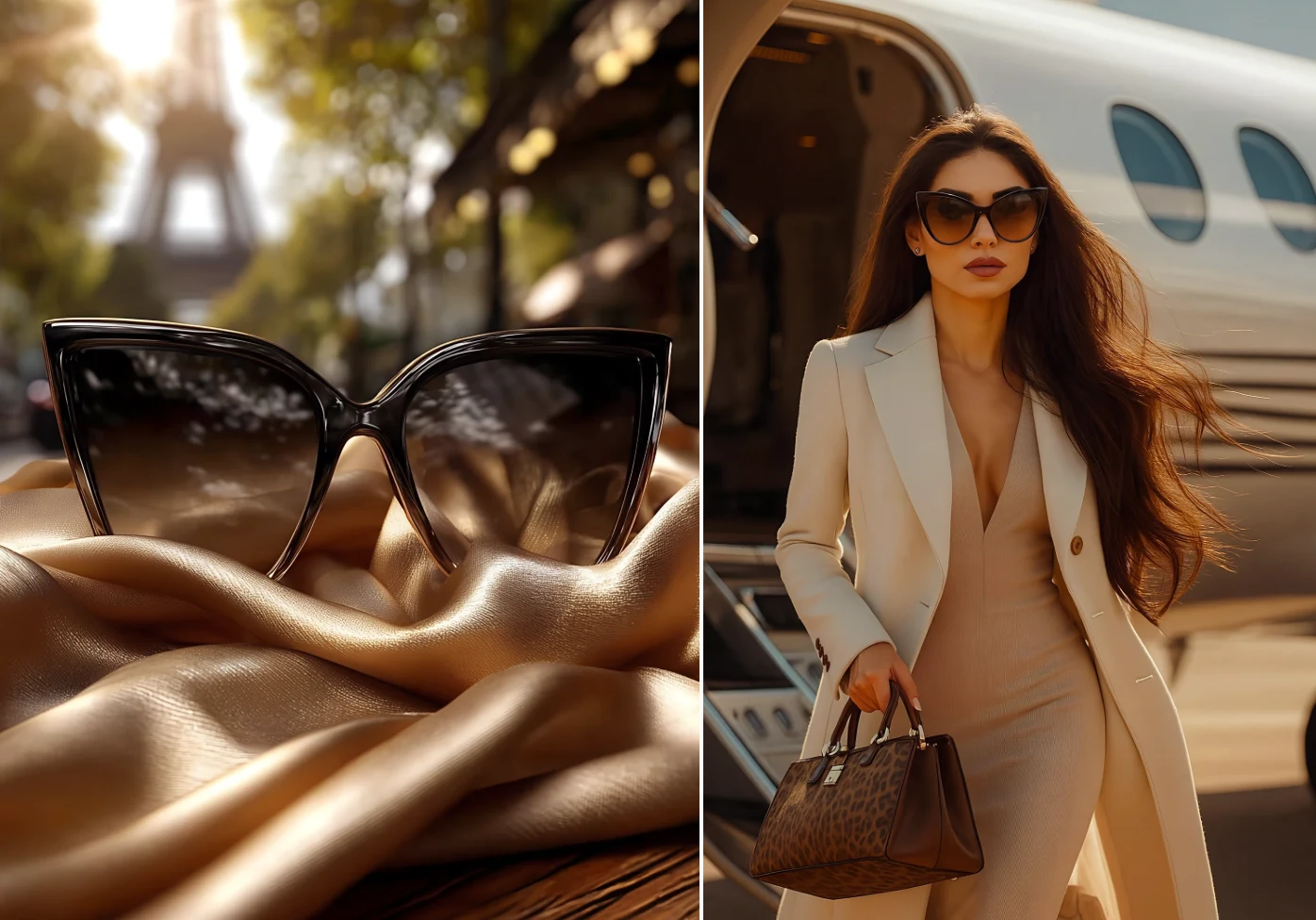 At the same time, we wanted to convey a very specific atmosphere: luxury, warmth, comfort, and self-confidence. Some images also intentionally incorporated recognisable lifestyle elements (designer bags, travel settings) to strengthen the association with a luxury lifestyle.
