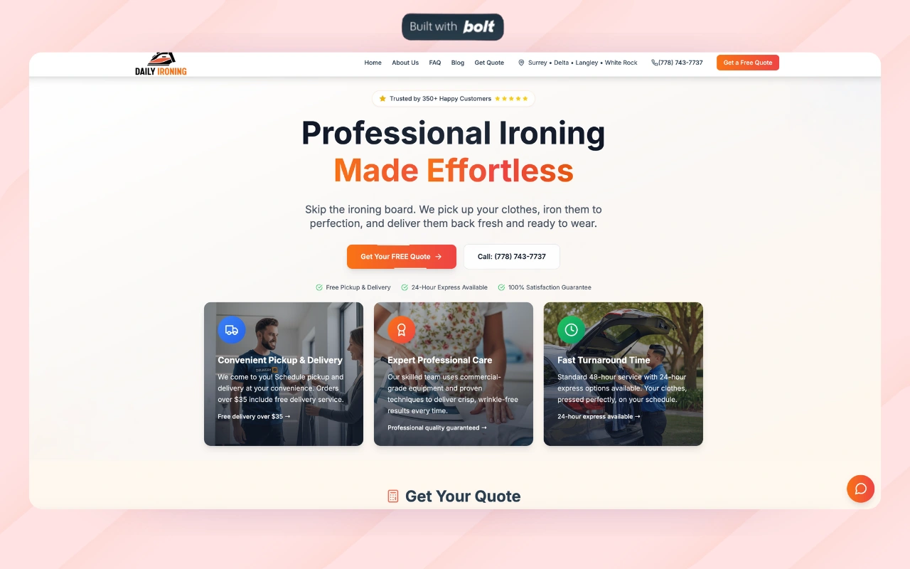 Designed and developed a seamless digital experience for Daily Ironing, including ordering, pickup scheduling, backend workflows, and customer communication.