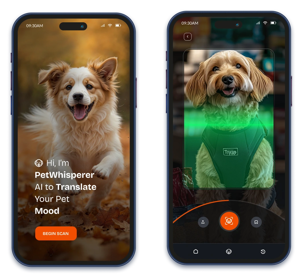 AI-powered facial recognition to interpret pet moods, primarily focusing on dogs. The app scans the dog’s face in real-time and translates its emotional state into friendly, shareable text for pet owners. This project aims to deepen the bond between pets and their owners by offering playful and empathetic communication.