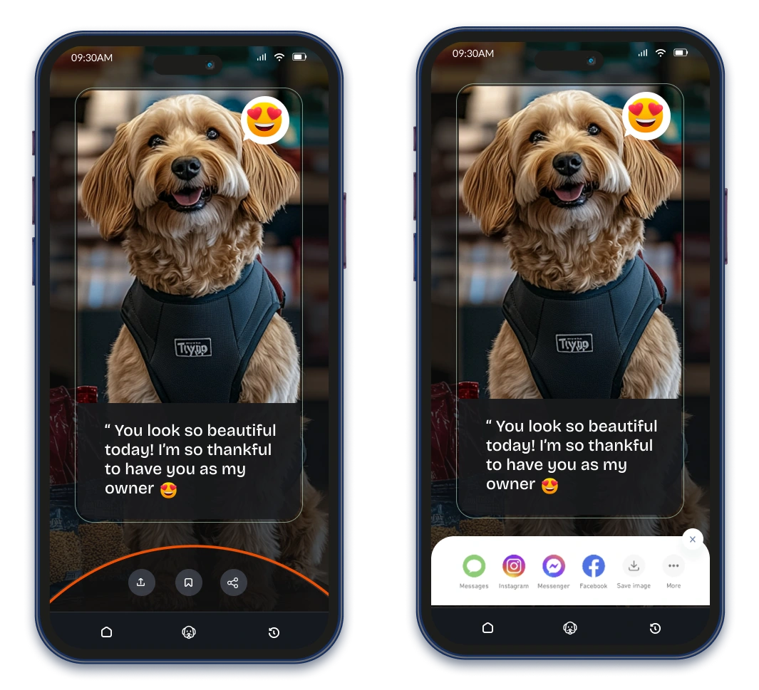 Share Option: Owners can share the translated mood as text or an image on social platforms.