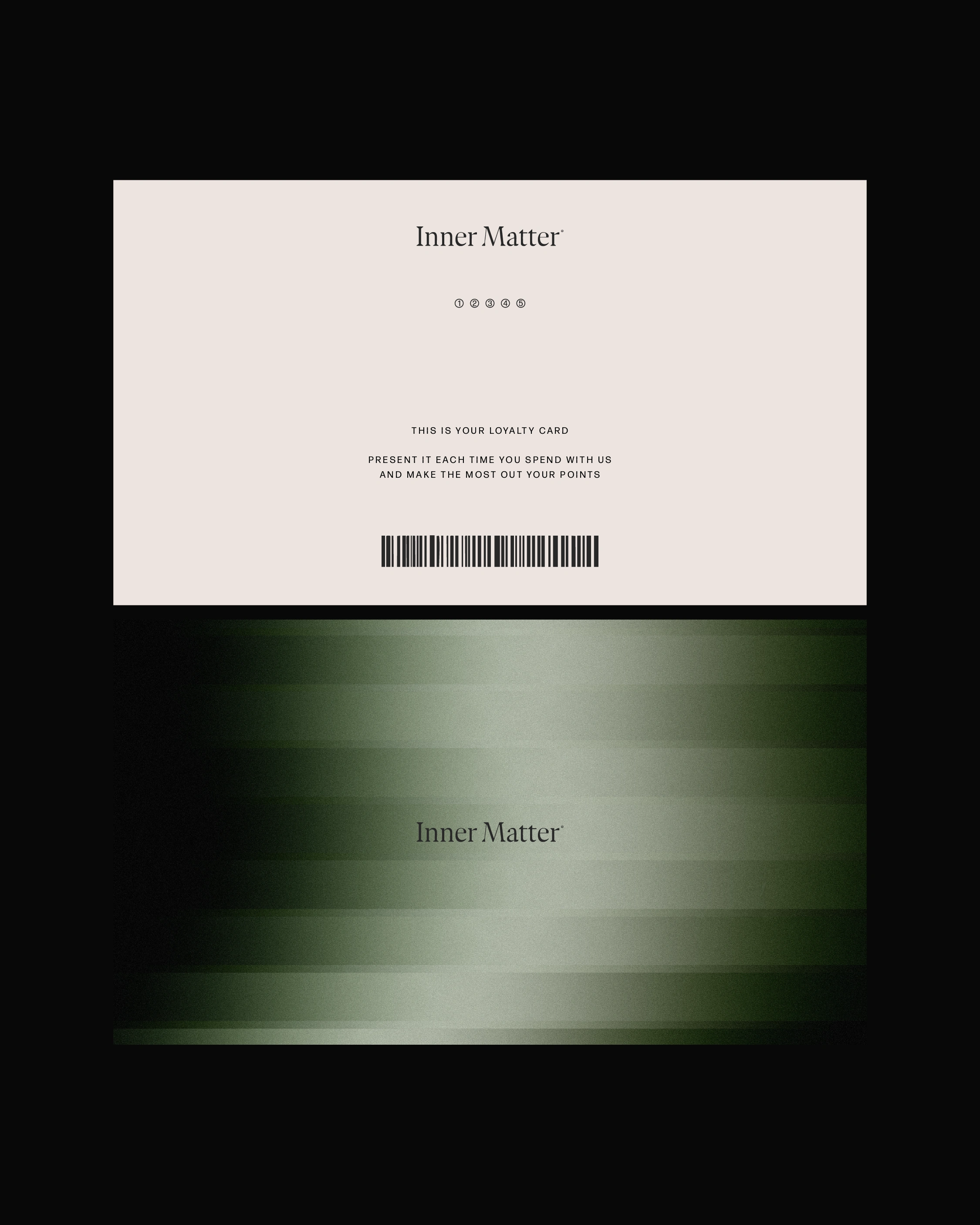 The creative direction for Inner Matter is a mix of modern visuals and soft, calming colors, giving off a premium, luxurious feel. The special blend of green shades creates a calming, inviting presence, while the muted nude shade adds balance.