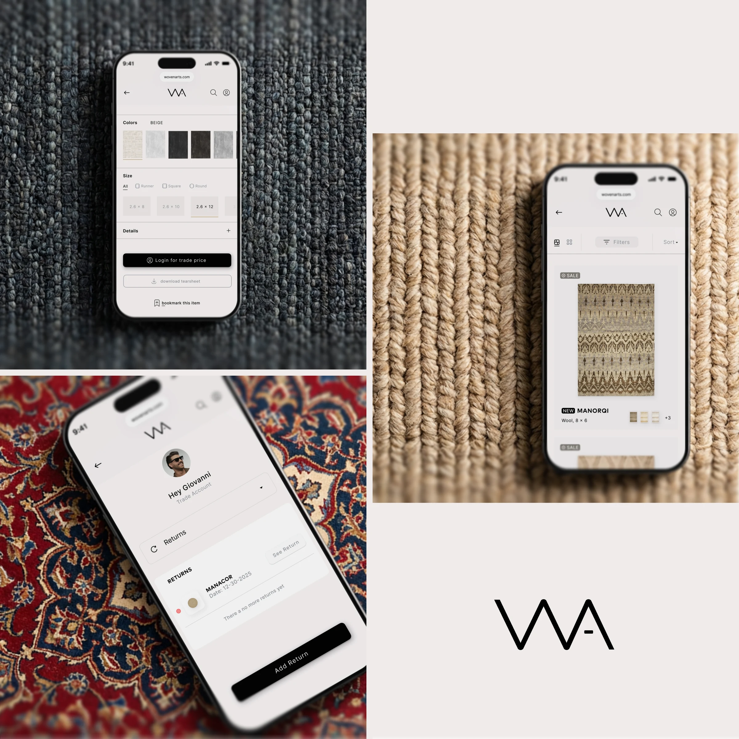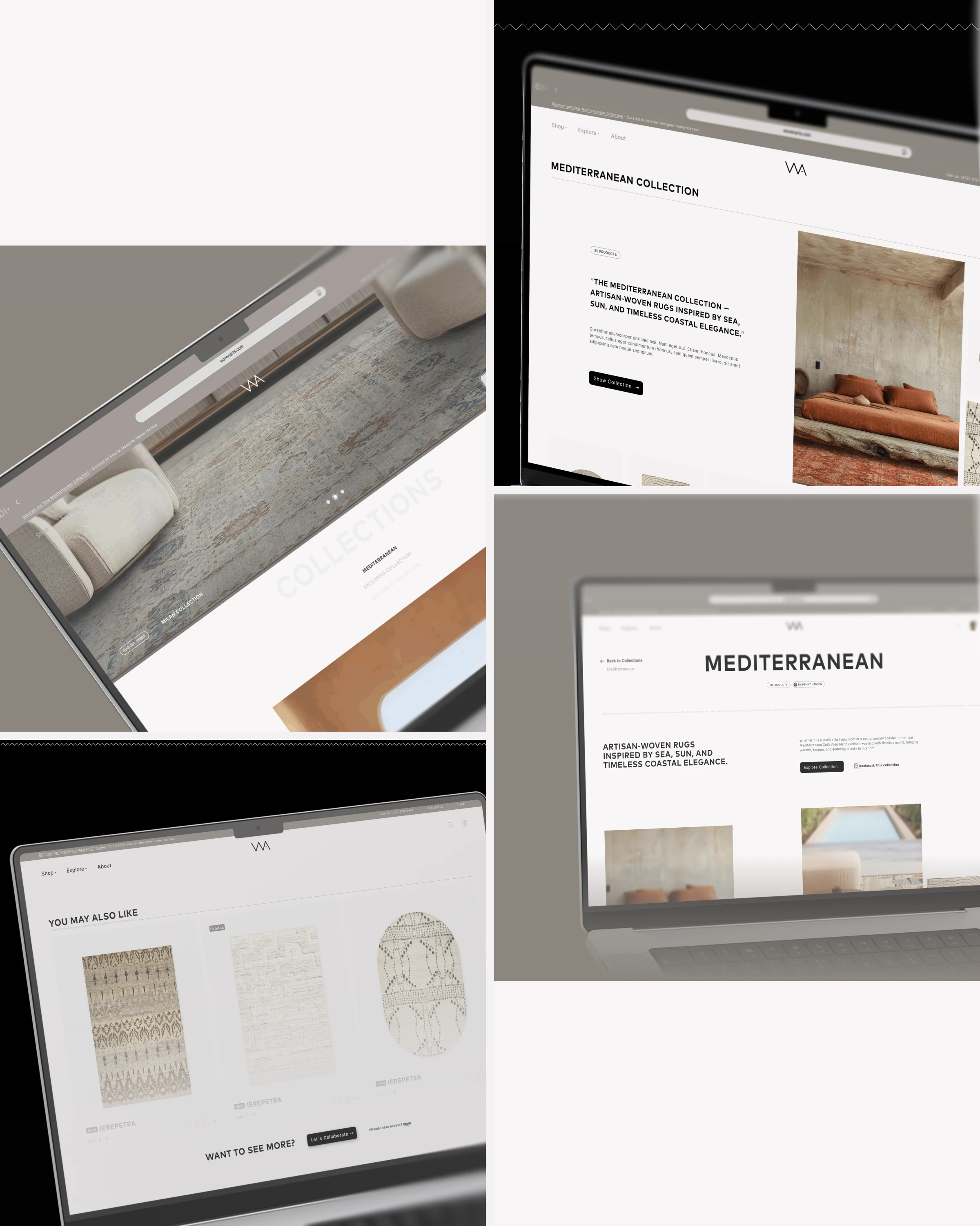 A modern e-commerce interface for Wovenarts translating their artisanal quality into a timeless, elegant digital brand experience.