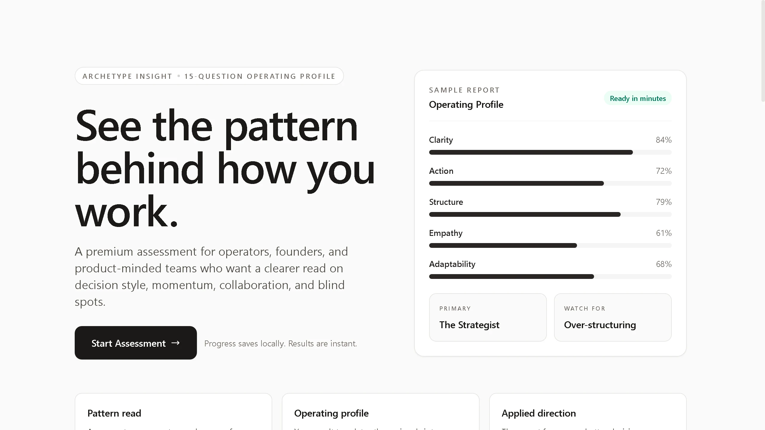 Interactive quiz experience focused on simple flow, clean UX, and structured result delivery.