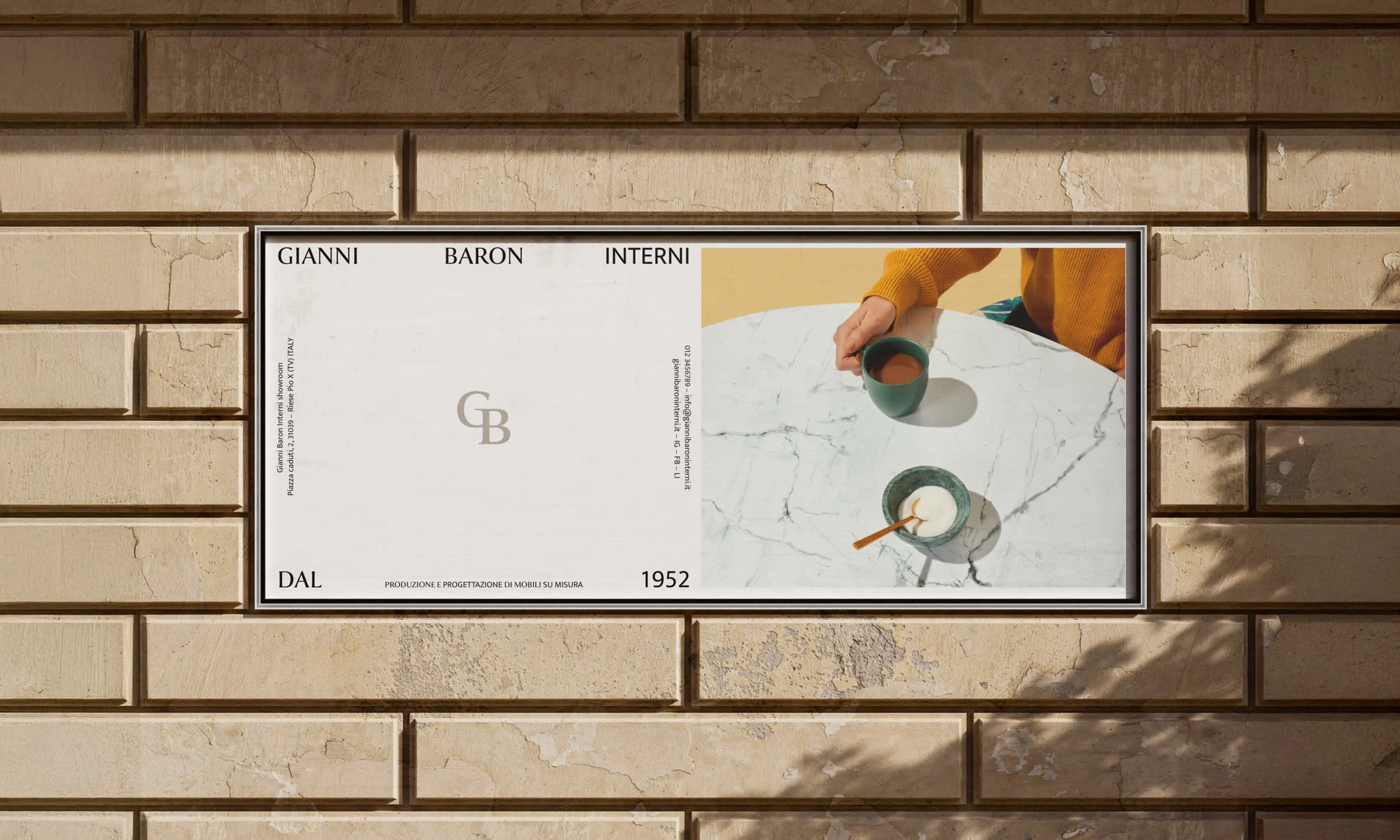 Gianni Baron Interni is a company specializing in custom-made furniture, built on over fifty years of craftsmanship and high-quality materials. The brand aims to elevate its prestige by offering exclusive, sophisticated pieces rooted in timeless elegance. The new identity highlights quality, expertise and attention to detail through a refined visual system with authoritative typography and a distinctive monogram, strengthening the brand’s presence and appeal across a broader, premium-oriented audience.