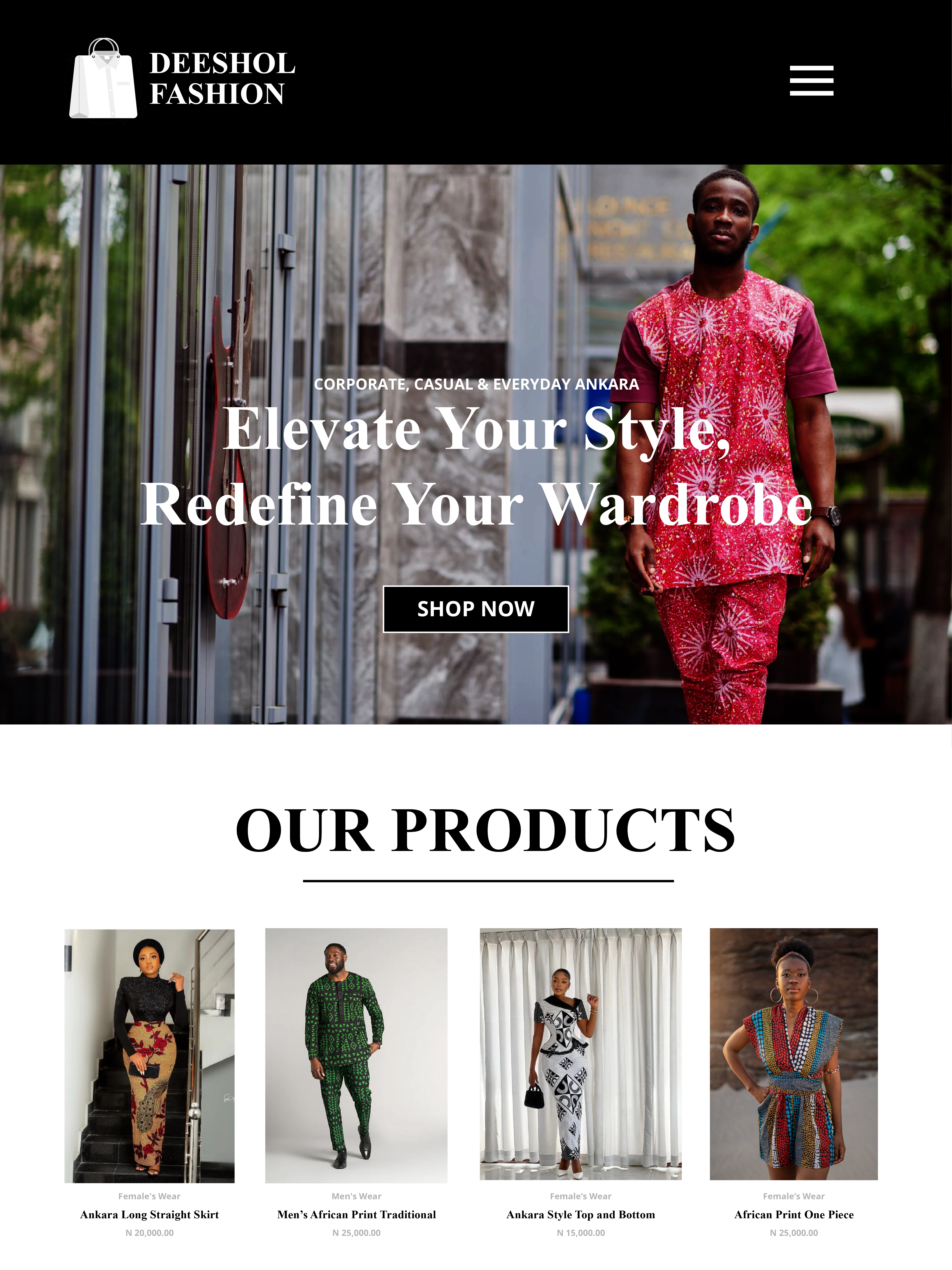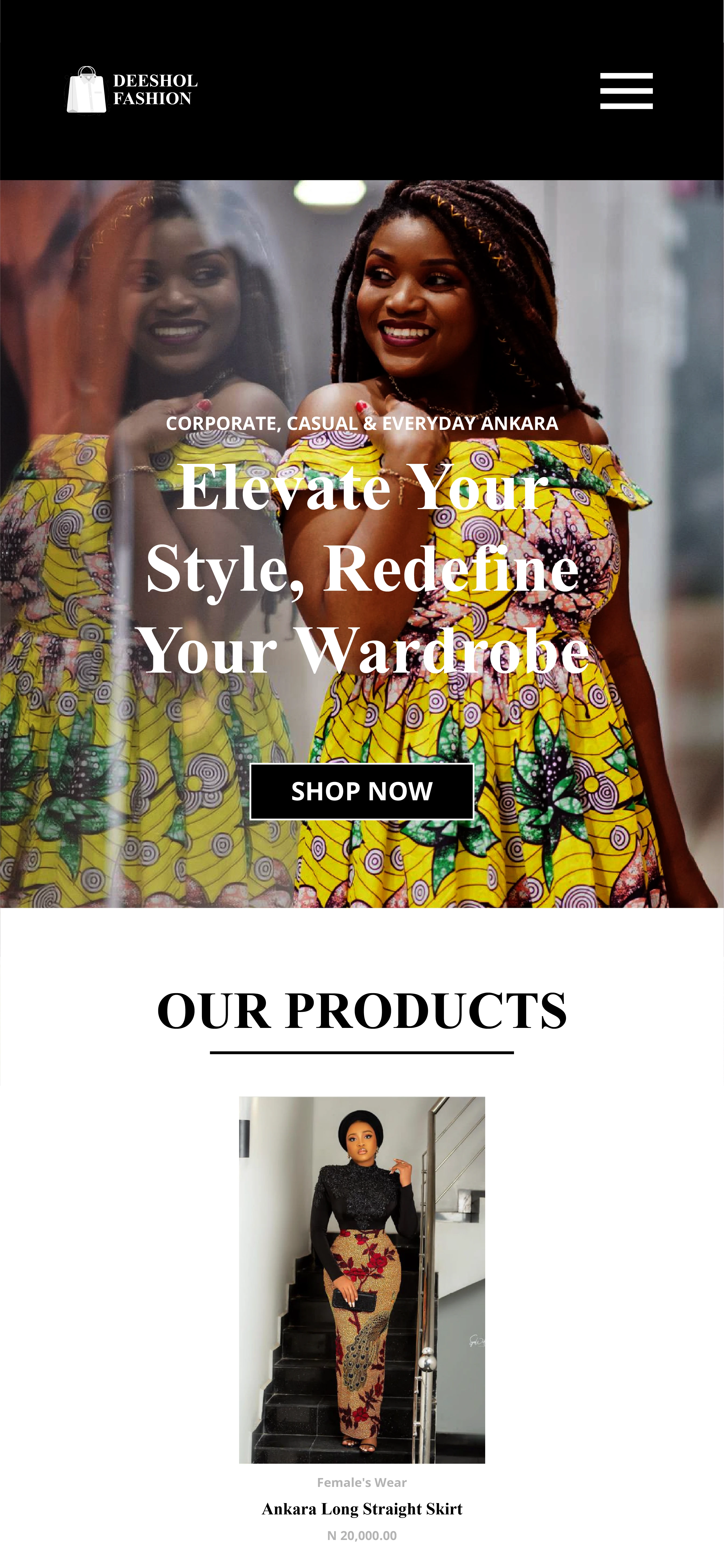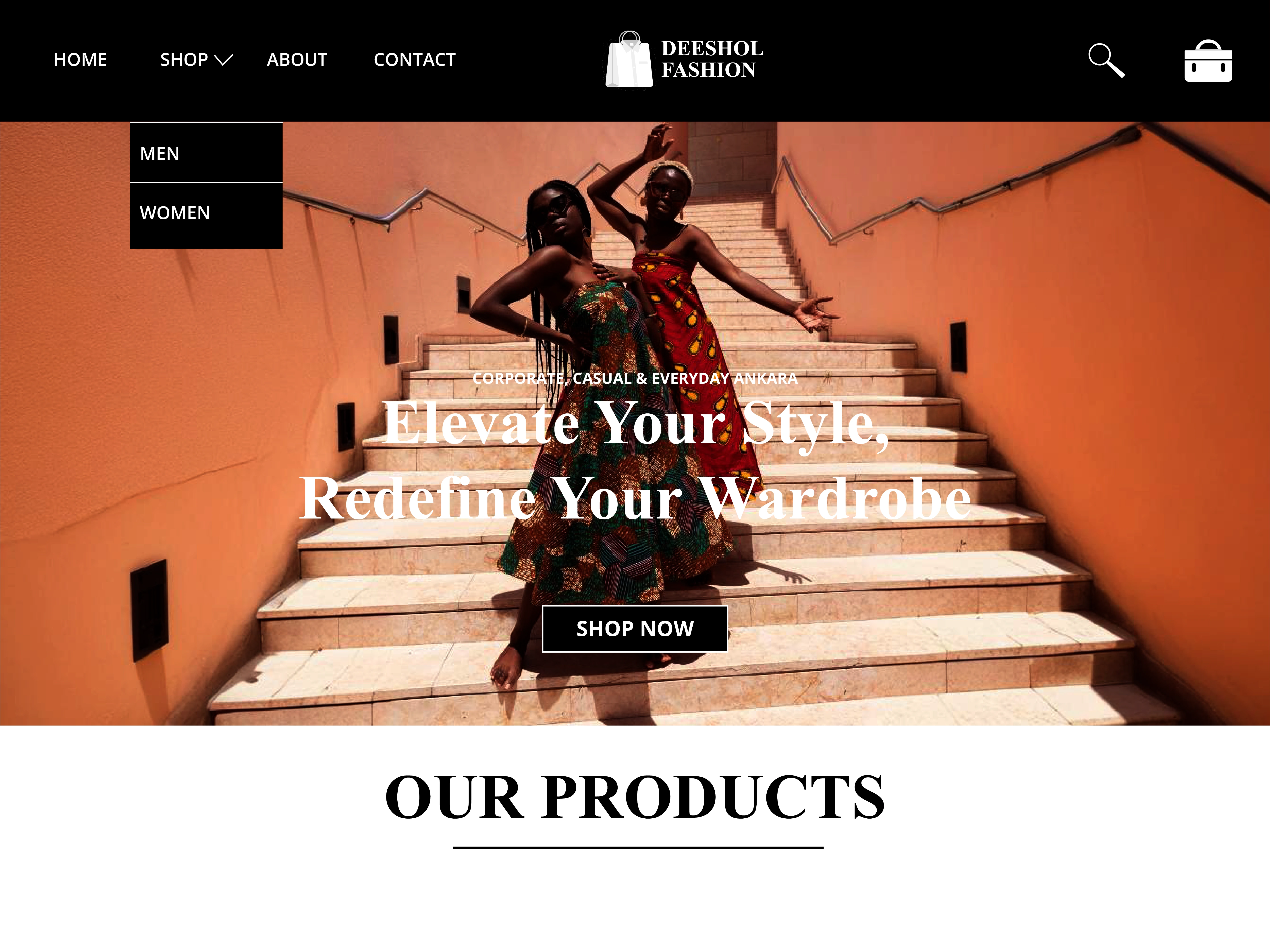 Web design project for Deeshol Fashion Store. Client wanted a simple, clean and modern feel. Check out the website on https://www.deeshol.com.ng/