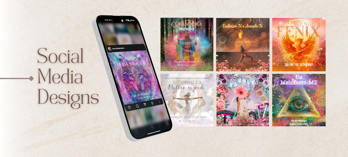 From social media content to oracle cards, publications, and brand elements, every piece is crafted with purpose, combining aesthetics with storytelling.