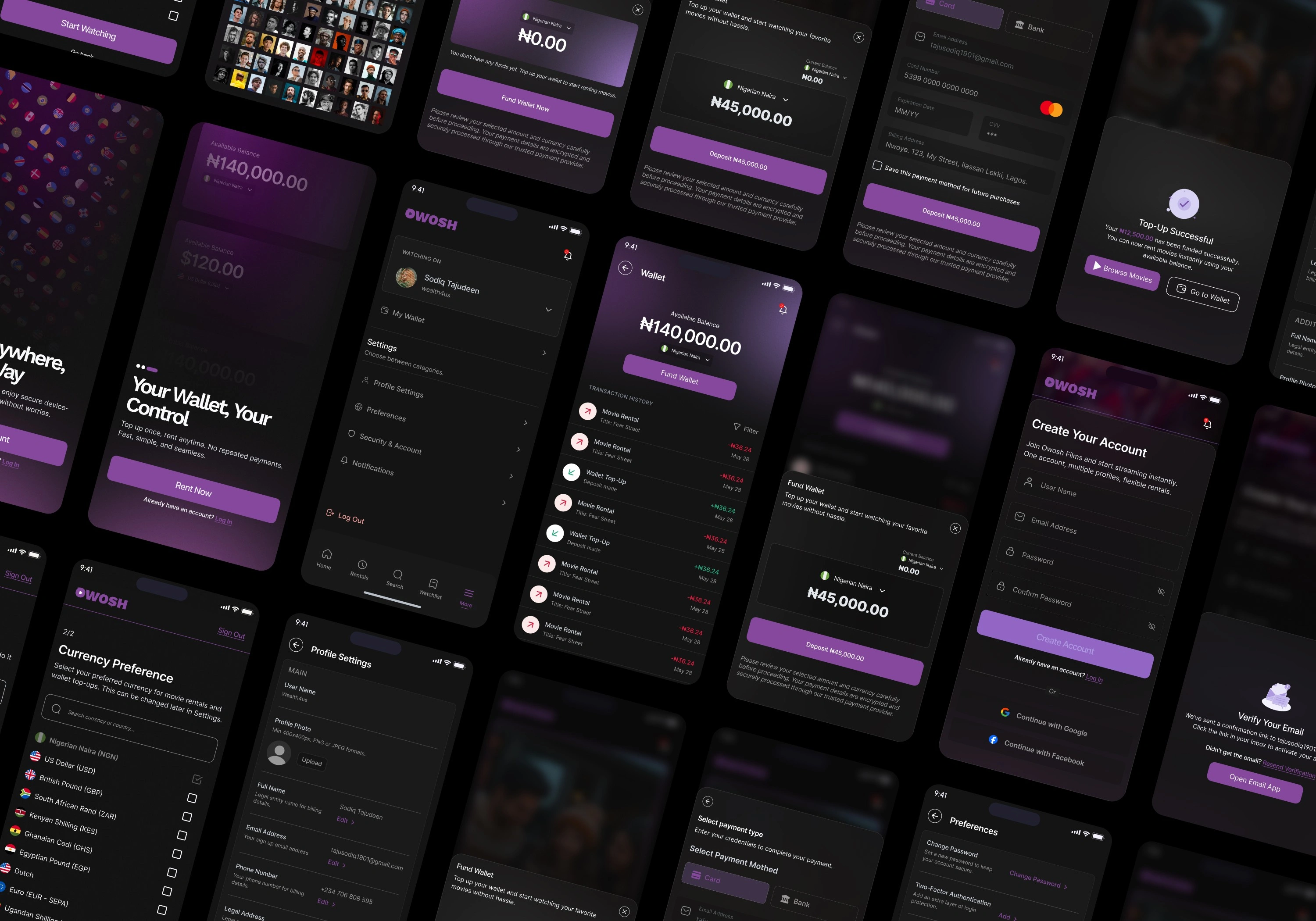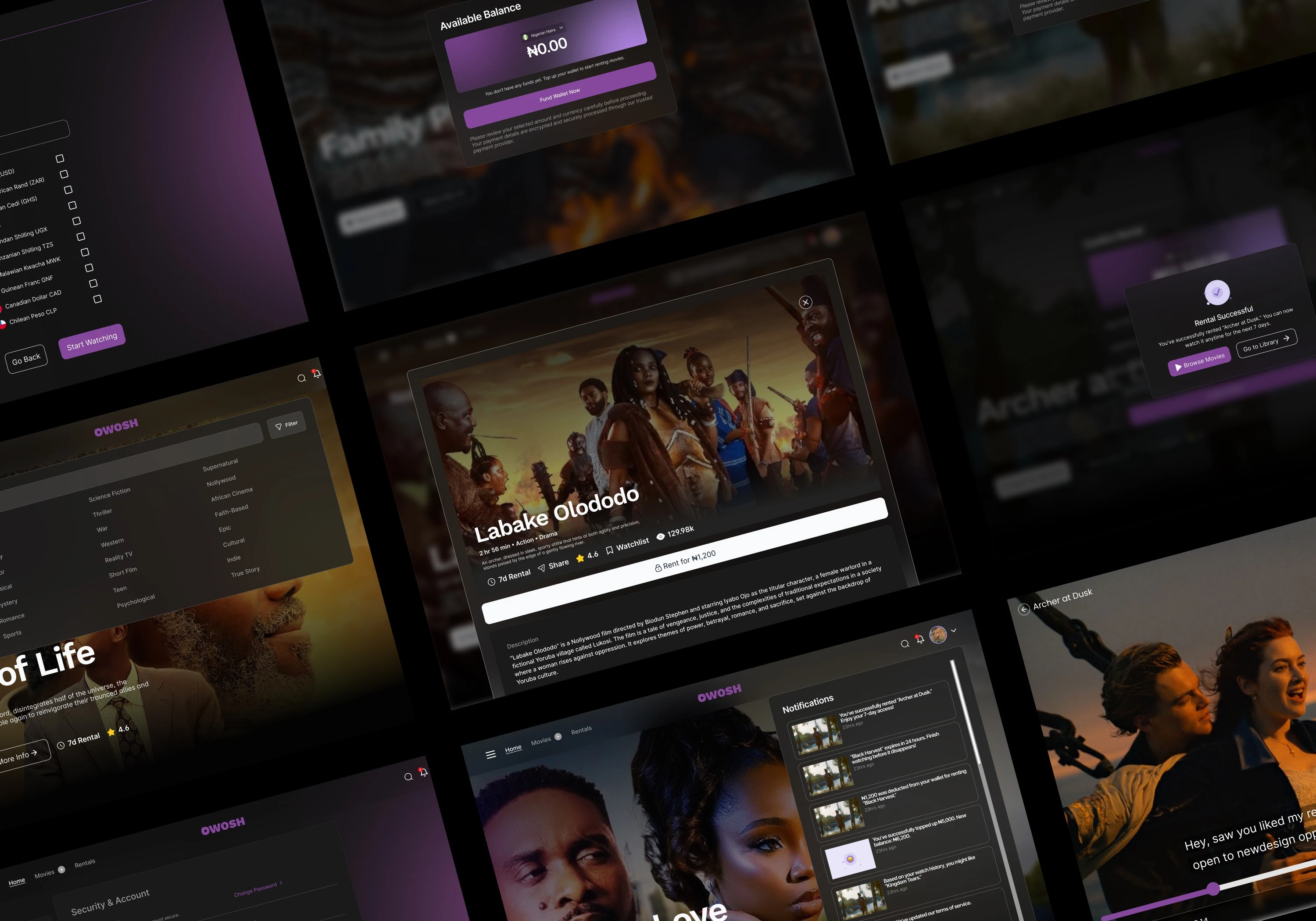 I began by studying the product requirement documents and mapping user journeys to uncover where users and administrators would encounter the most friction. My strategy was to create a design that felt as polished as global platforms like Netflix but adapted to African realities such as variable internet speeds, geo-restrictions, and the need for local payment options. For users, I designed simple onboarding with email verification, multi-profile support, and wallet funding flows that integrated Flutterwave’s payment system across more than twenty currencies. I made the rental process clear by displaying transparent pricing, enforcing seven-day rental periods, and embedding countdown timers that reflect device-locked DRM restrictions. For admins, I designed a dashboard that brought together movie management, geo-restriction tools, revenue analytics, user behavior insights, and review moderation into one seamless experience.