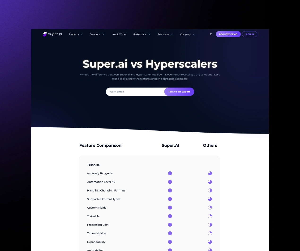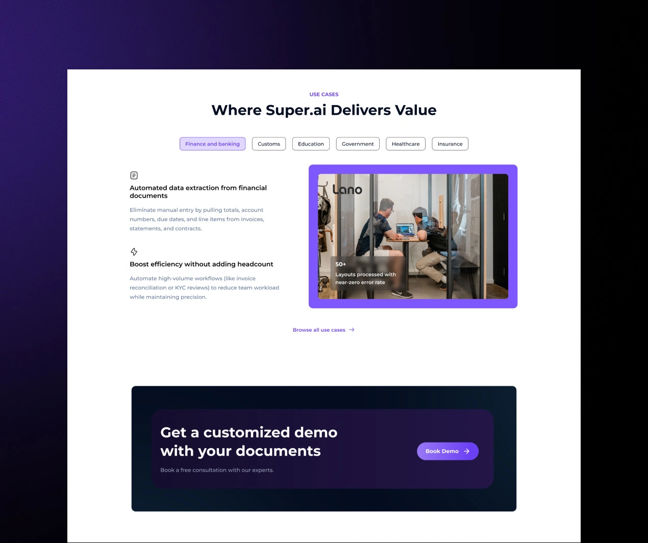 Super.ai is an enterprise-grade Intelligent Document Processing (IDP) platform that helps large teams automate unstructured workflows like invoice extraction, customs clearance, and logistics paperwork. The company raised over $25M and operates in a highly competitive space, where clarity of offering and credibility are key.
