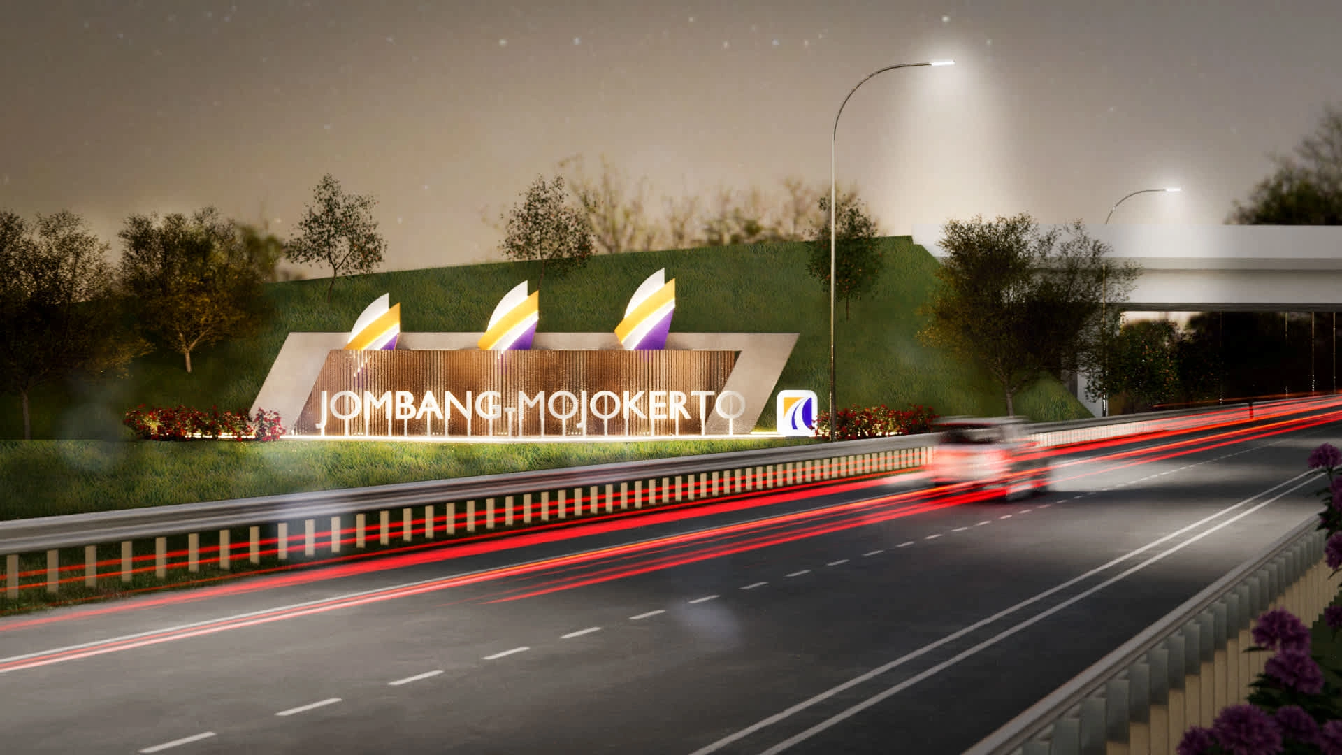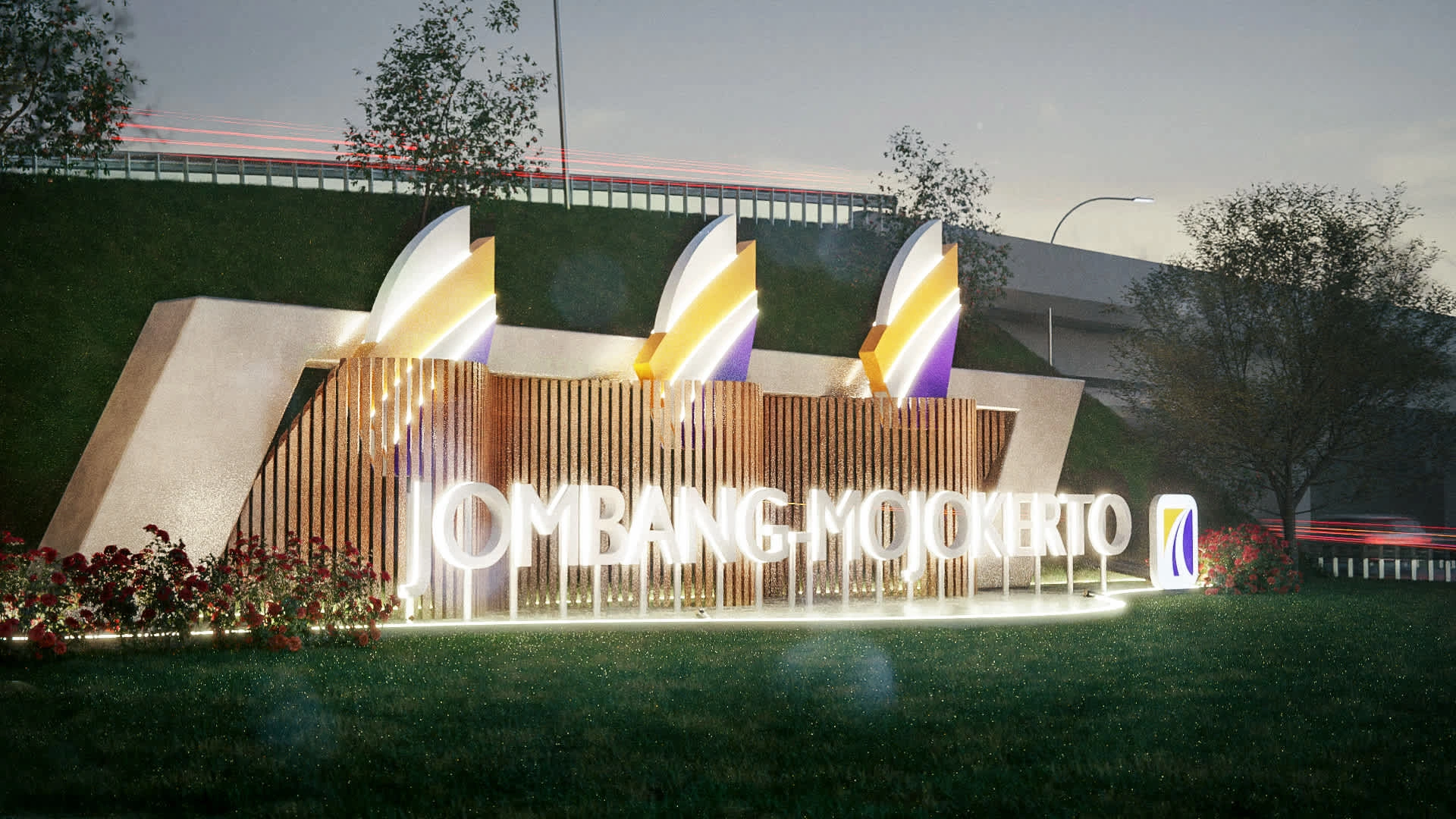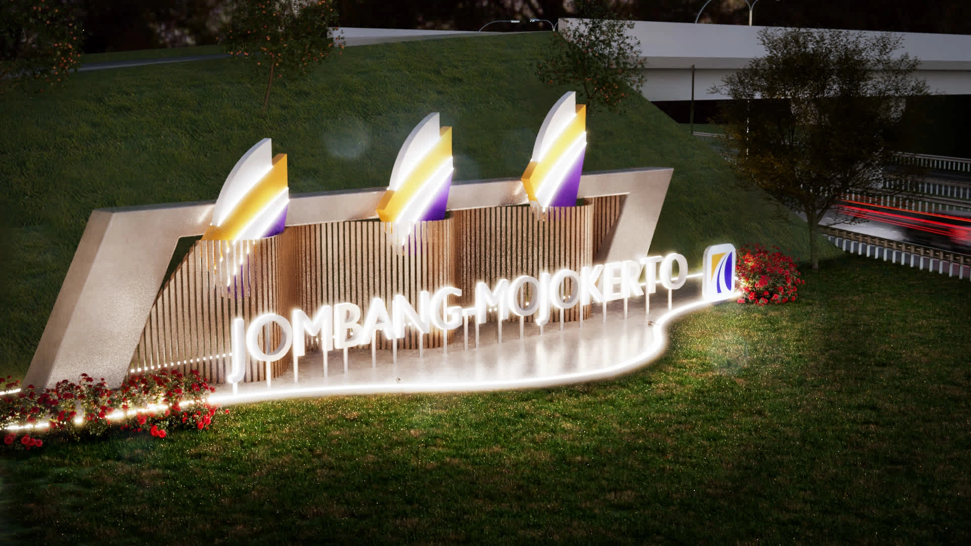 The highway landmark symbolizes the connection between Jombang and Mojokerto.