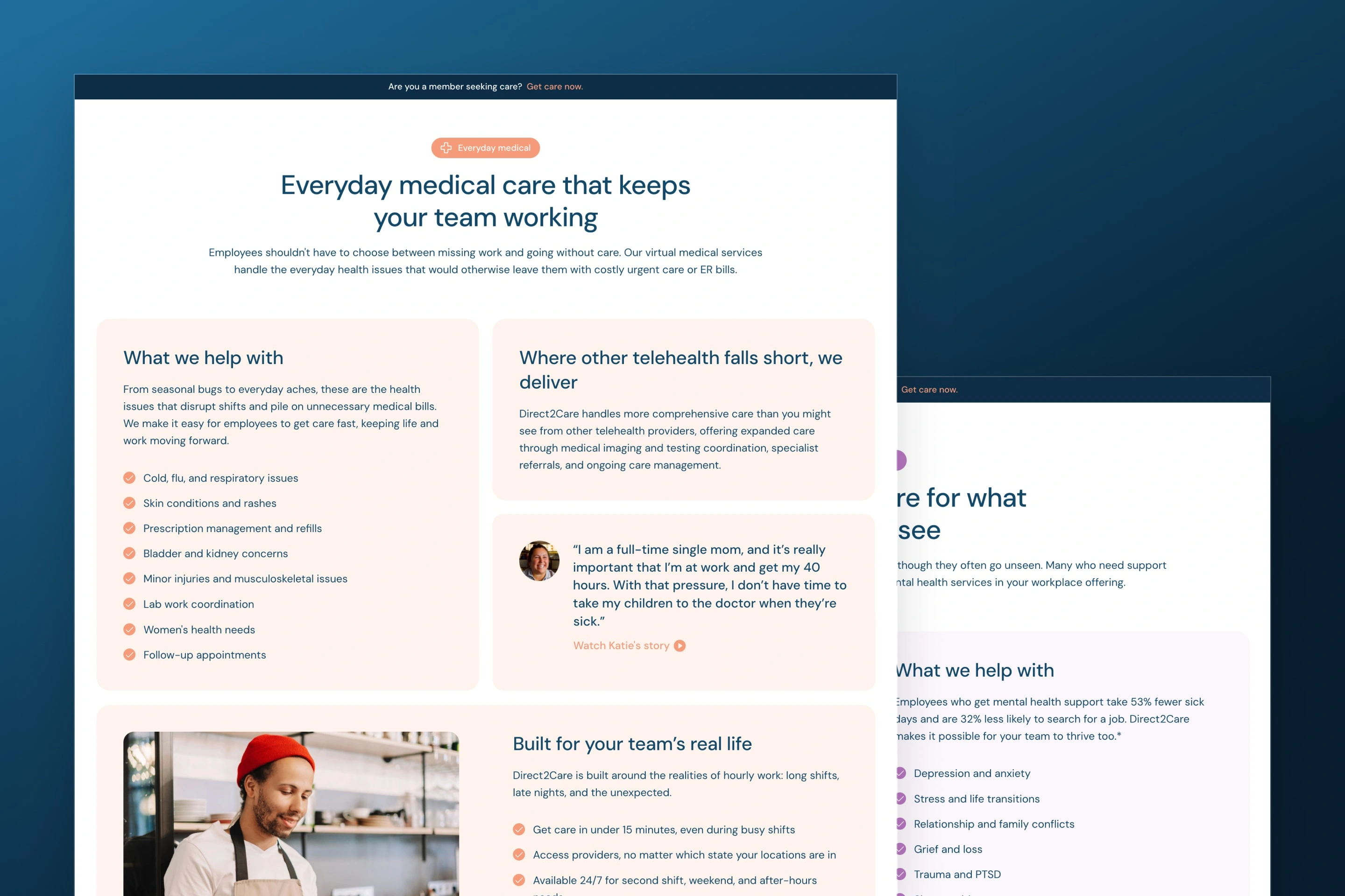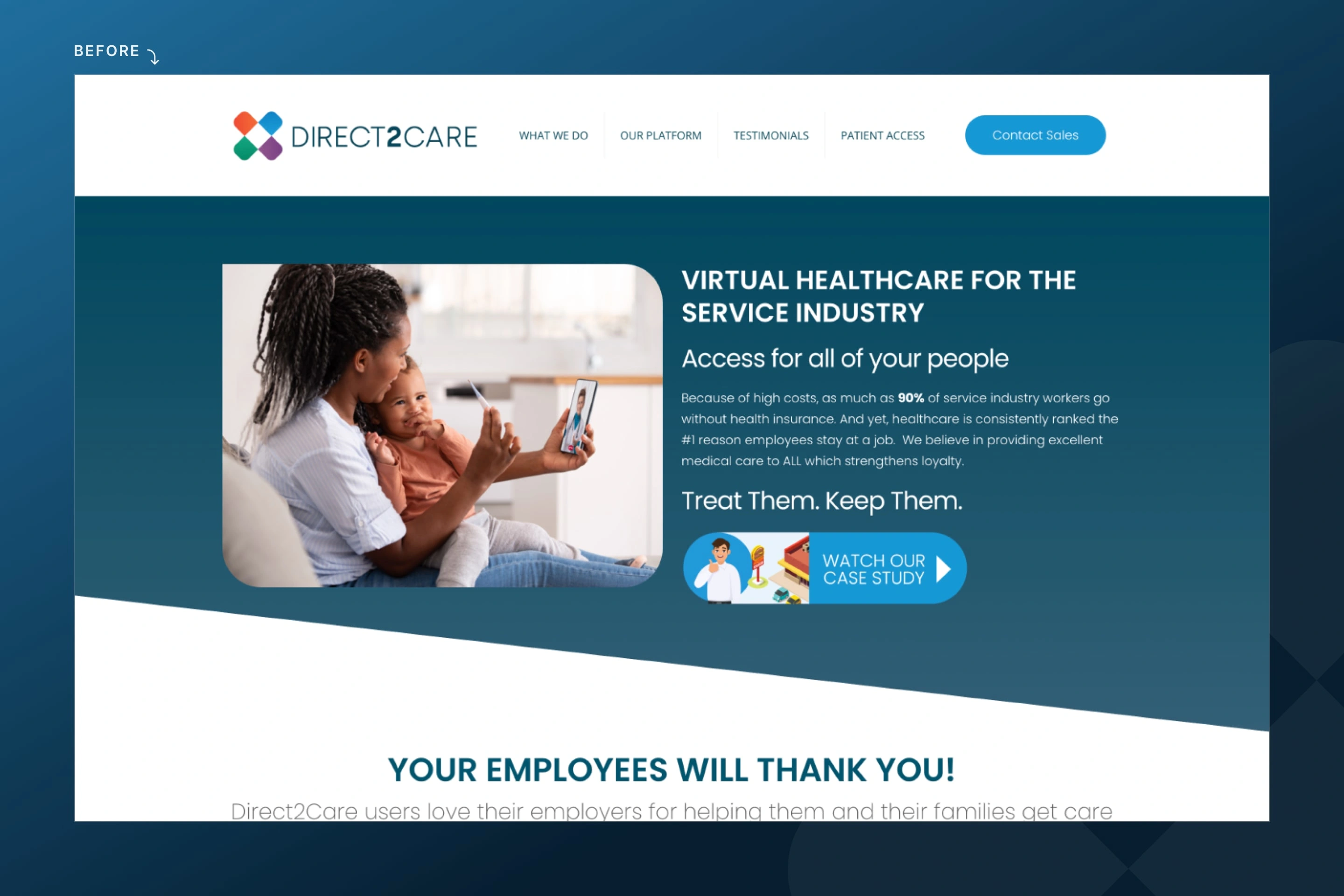 Direct2Care operates in a healthcare-adjacent space. Prospects frequently assumed they were selling insurance. The sales team was spending valuable time correcting misunderstandings that the website should have handled upfront.