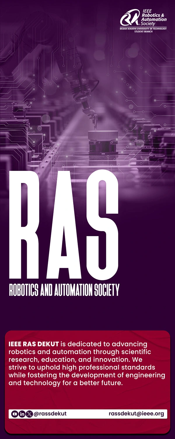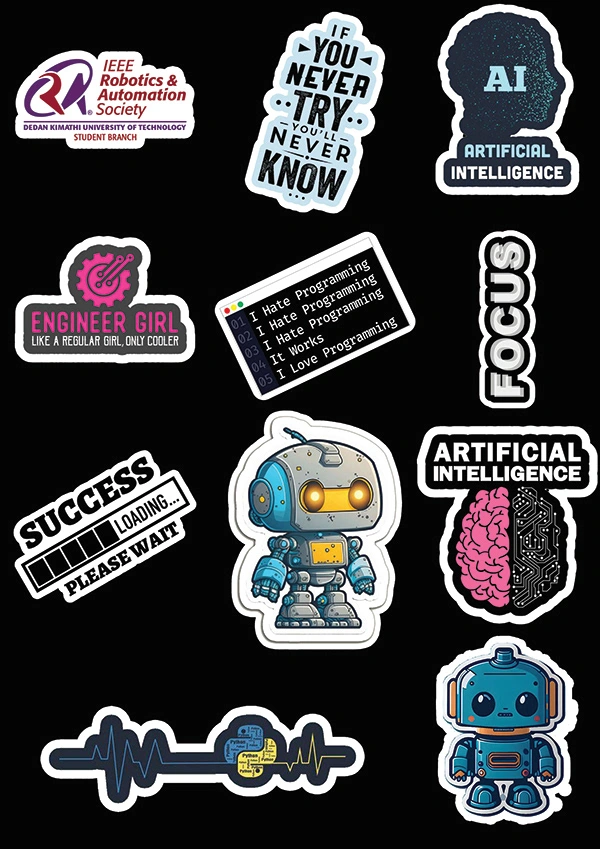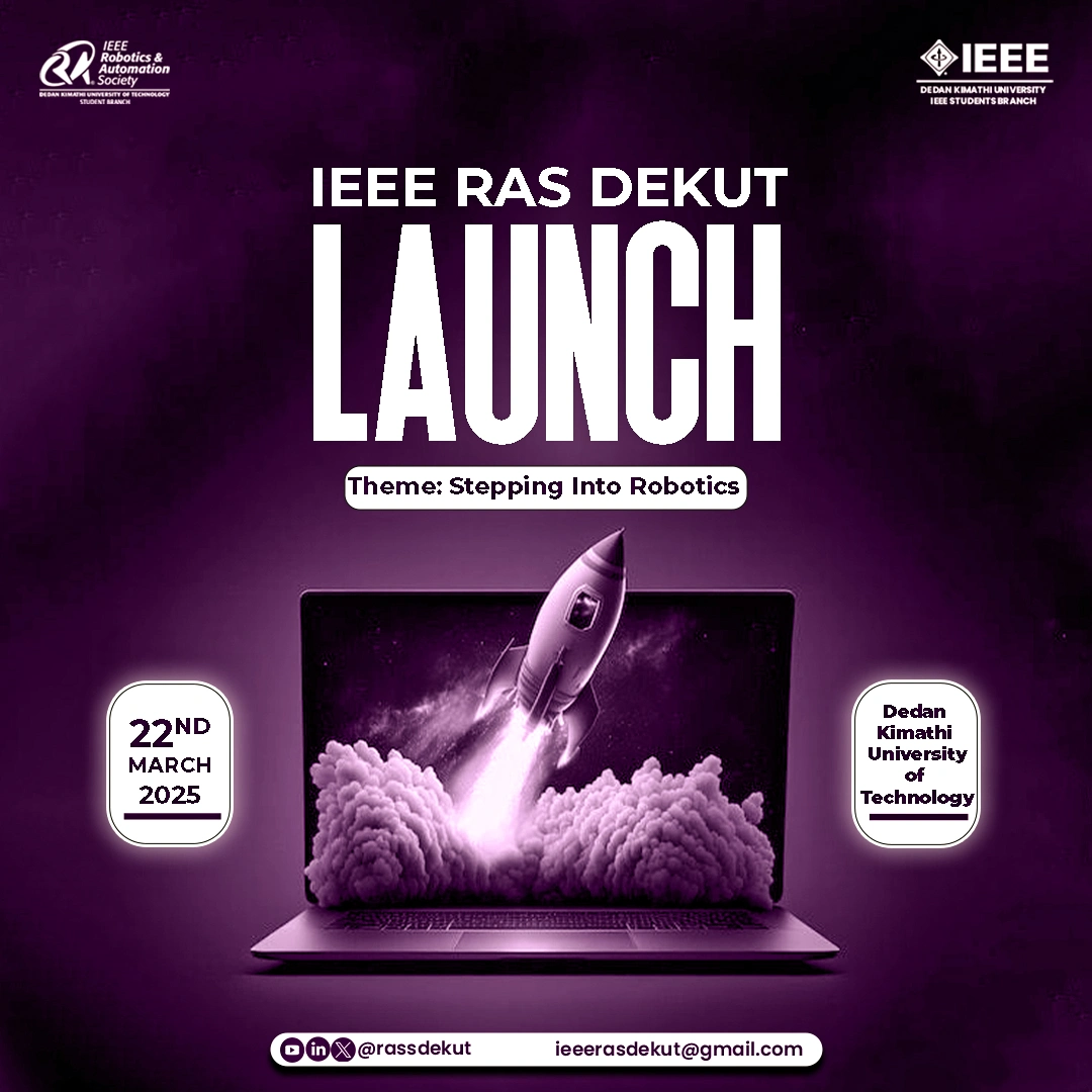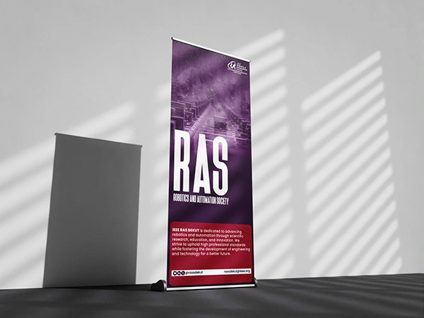 This branding suite for the IEEE Robotics & Automation Society (RAS) DEKUT Student Branch promotes innovation in robotics and automation at Dedan Kimathi University of Technology. Featuring a purple-to-red gradient palette and futuristic design, the collection includes t-shirts, pens, water bottles, a roll-up banner, and stickers, all crafted to reflect the society’s mission of advancing technology for a better future.