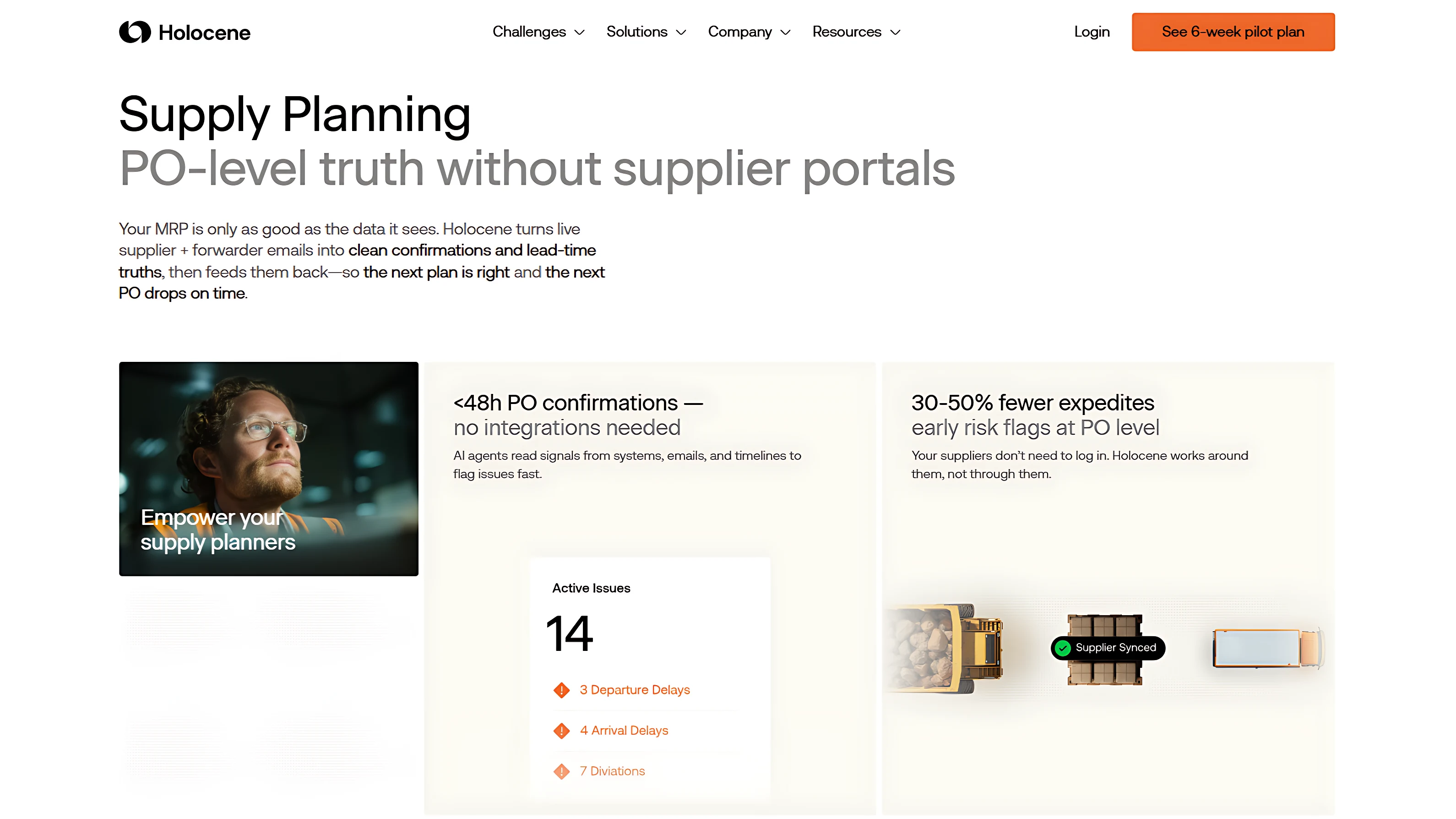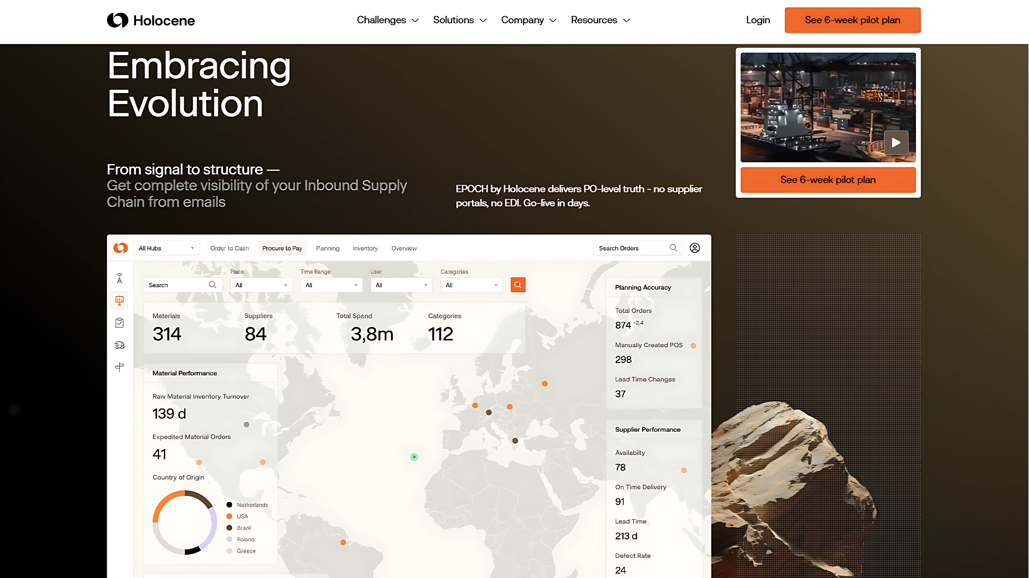 This project showcases a full website build for Holocene, an AI-driven supply chain intelligence platform that provides real-time PO-level visibility without supplier portals. The site presents a modern, enterprise-grade UI highlighting AI-powered logistics automation, inbound transport tracking, planning accuracy dashboards, and measurable operational impact across global supply chains.