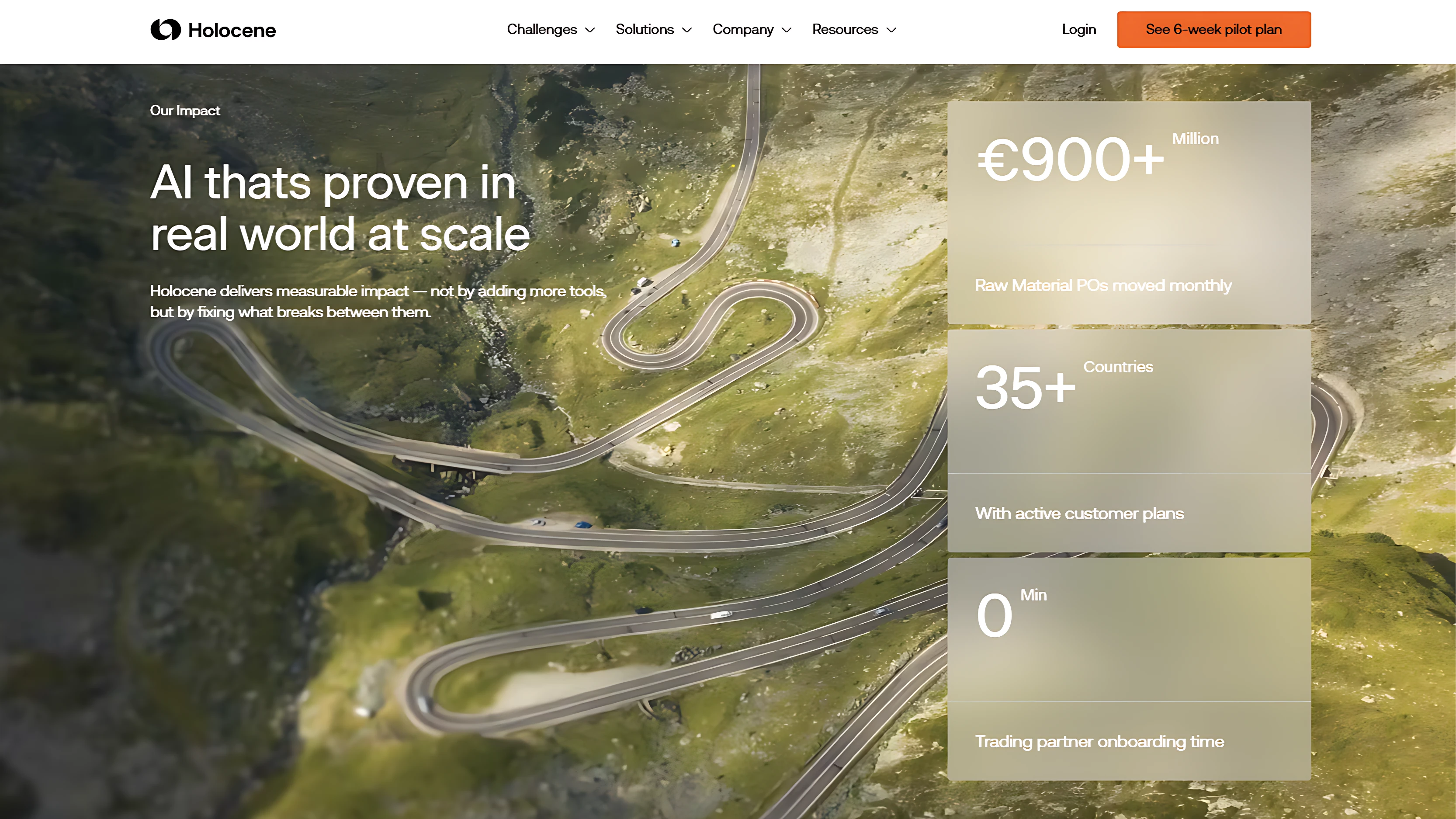 To deliver a high-performance, enterprise-grade web experience that communicates Holocene’s AI capabilities, visualizes complex supply-chain data in a simple way, and gives users confidence in the platform’s real-world impact at global scale.