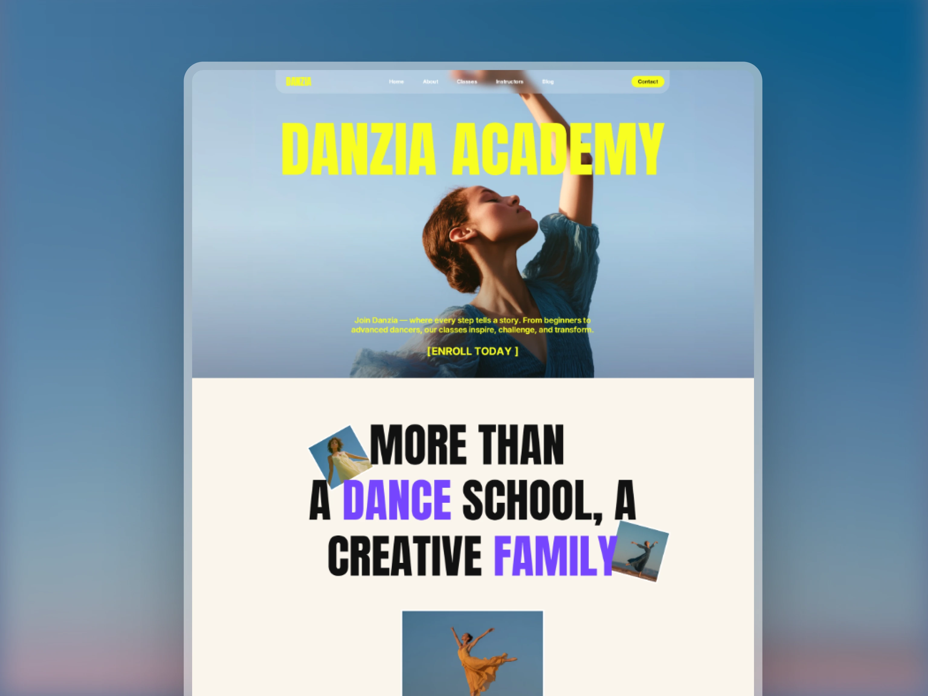 Objective: To build a high-performance dance school template with advanced animations and CMS integration, fully optimized for the Framer Marketplace.