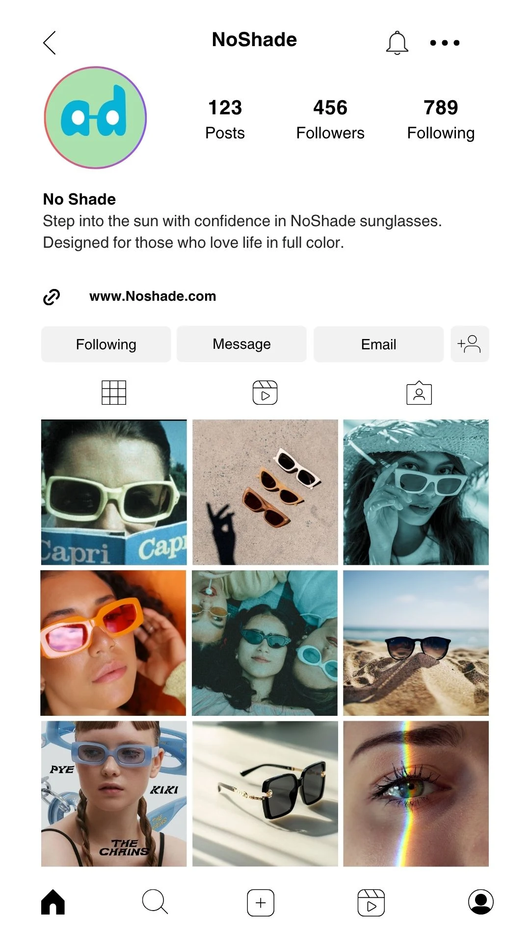 "Step into the sub with confidence in NoShade sunglasses! Designed for those who love life in full color." A brief by @thebriefdiary on instagram.