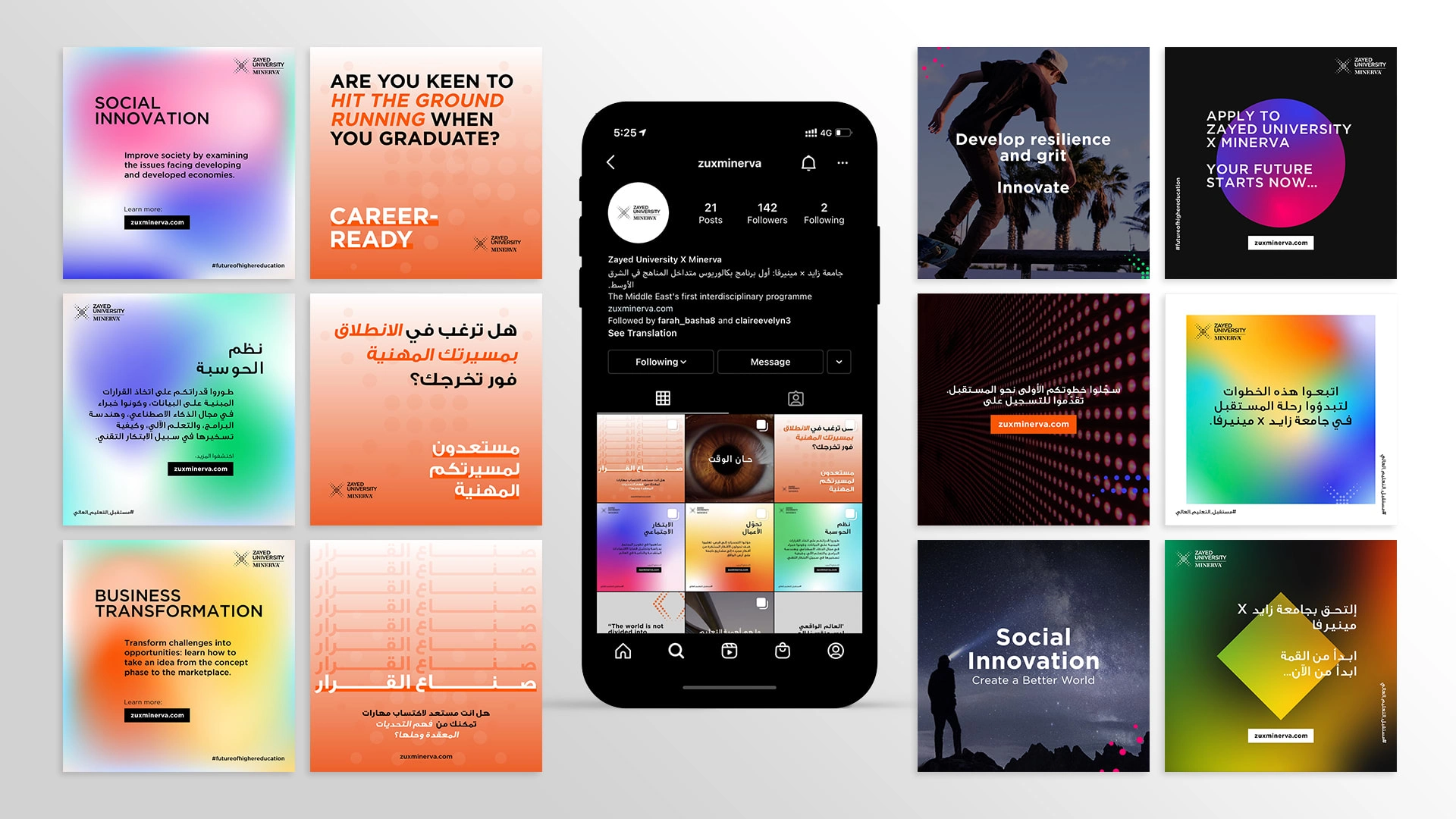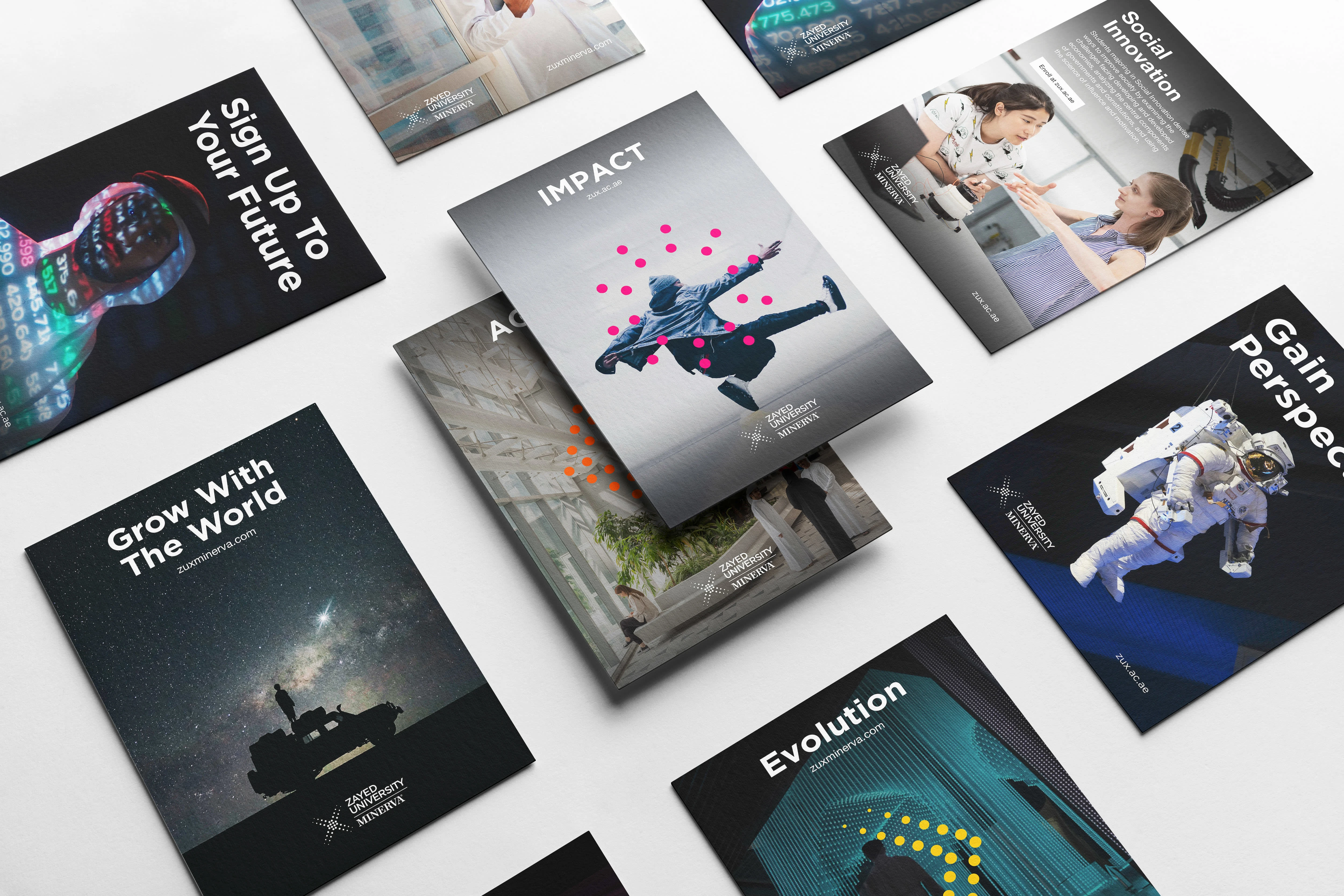 Zayed University is one of the prestige university in the Middle East. My role was to create a creative branding identity for the future college and program resulted from Zayed University x Minerva partnership that is distinctive from other colleges and disruptive to encapsulate the bold vision of Minerva. The new Zayed x Minerva College is all about bringing people and ideas together. It’s about more agile leadership that can face an increasingly complex world. Through the ZU x Minerva College we connect different domains, different sectors, different ideas in order to create people who are well rounded. In this design direction, we bring these ideas to life by using dots elements to represent connection, collaboration, diversity and evolution.