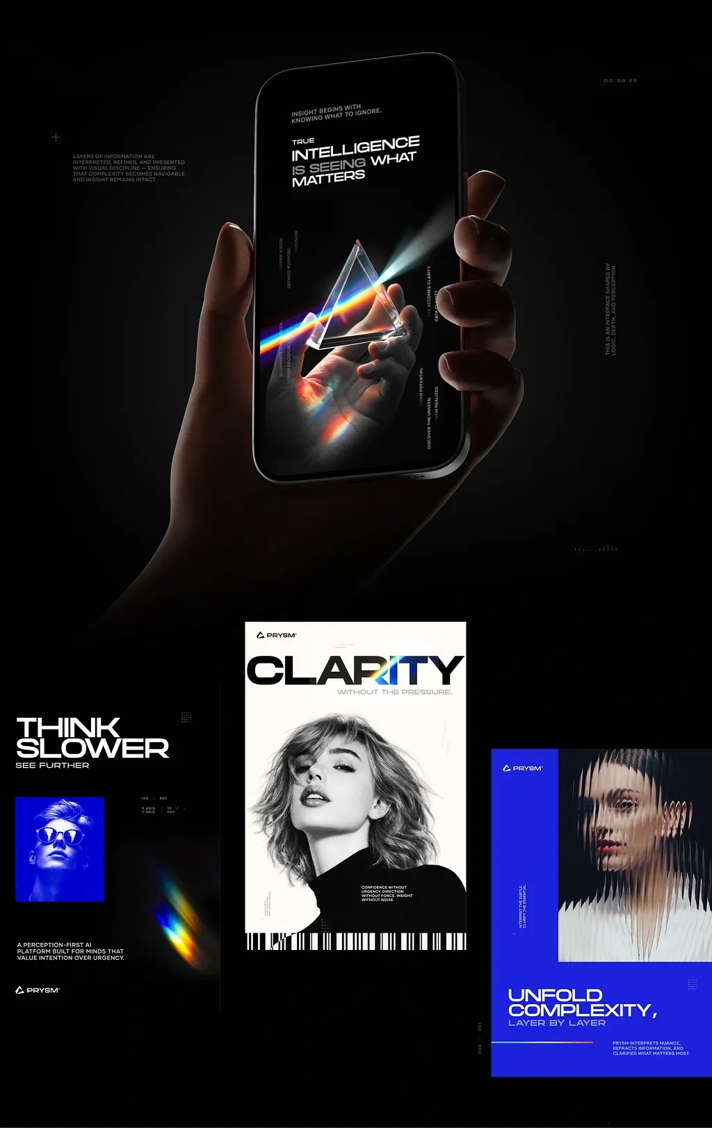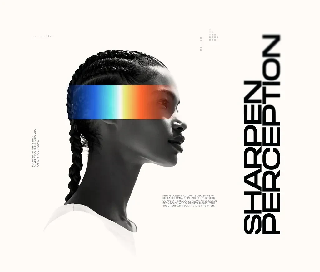 PRYSM is AI-driven branding built on the idea that perception shapes reality, focusing on clarity, insight, and meaningful interpretation over visual noise.