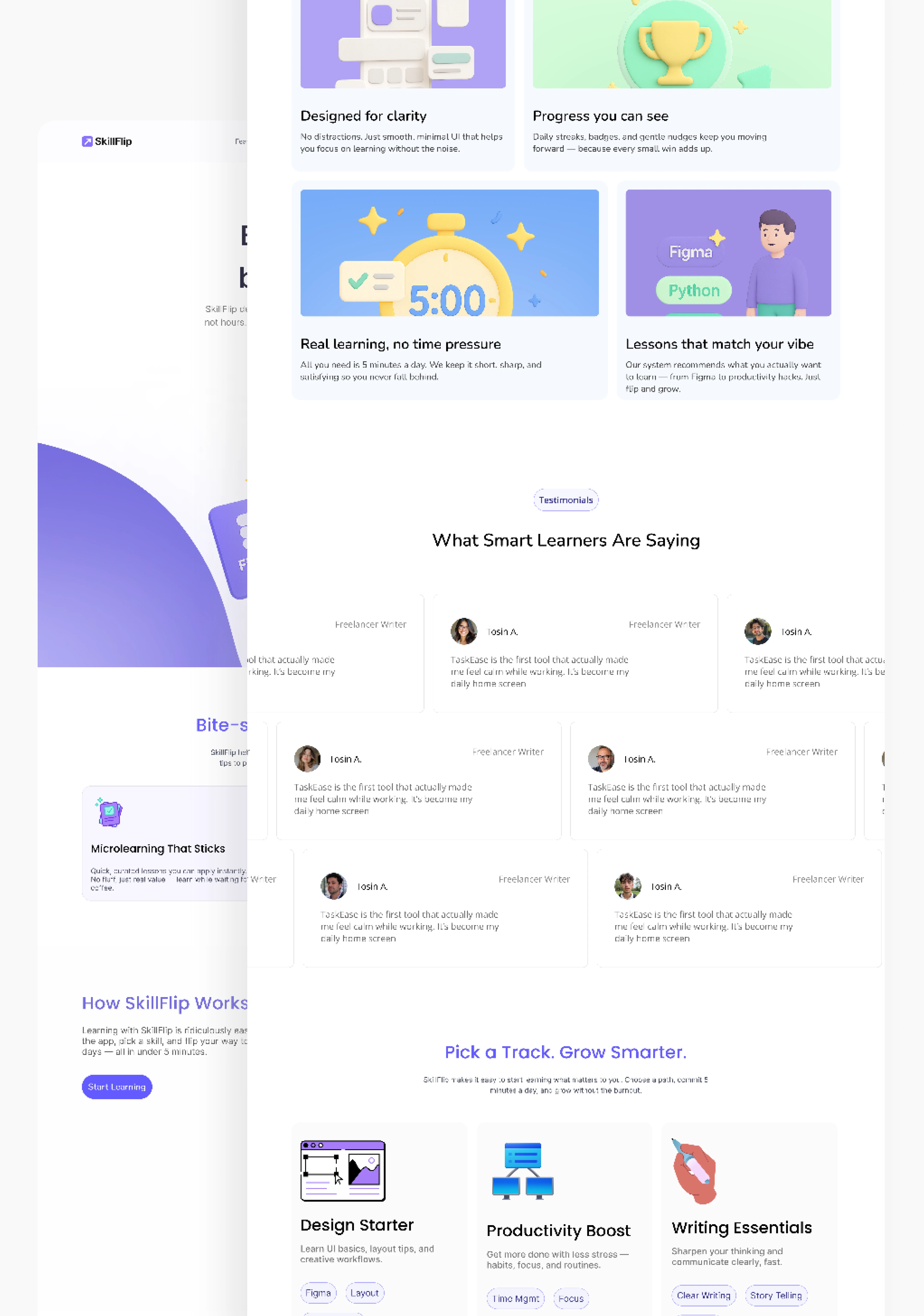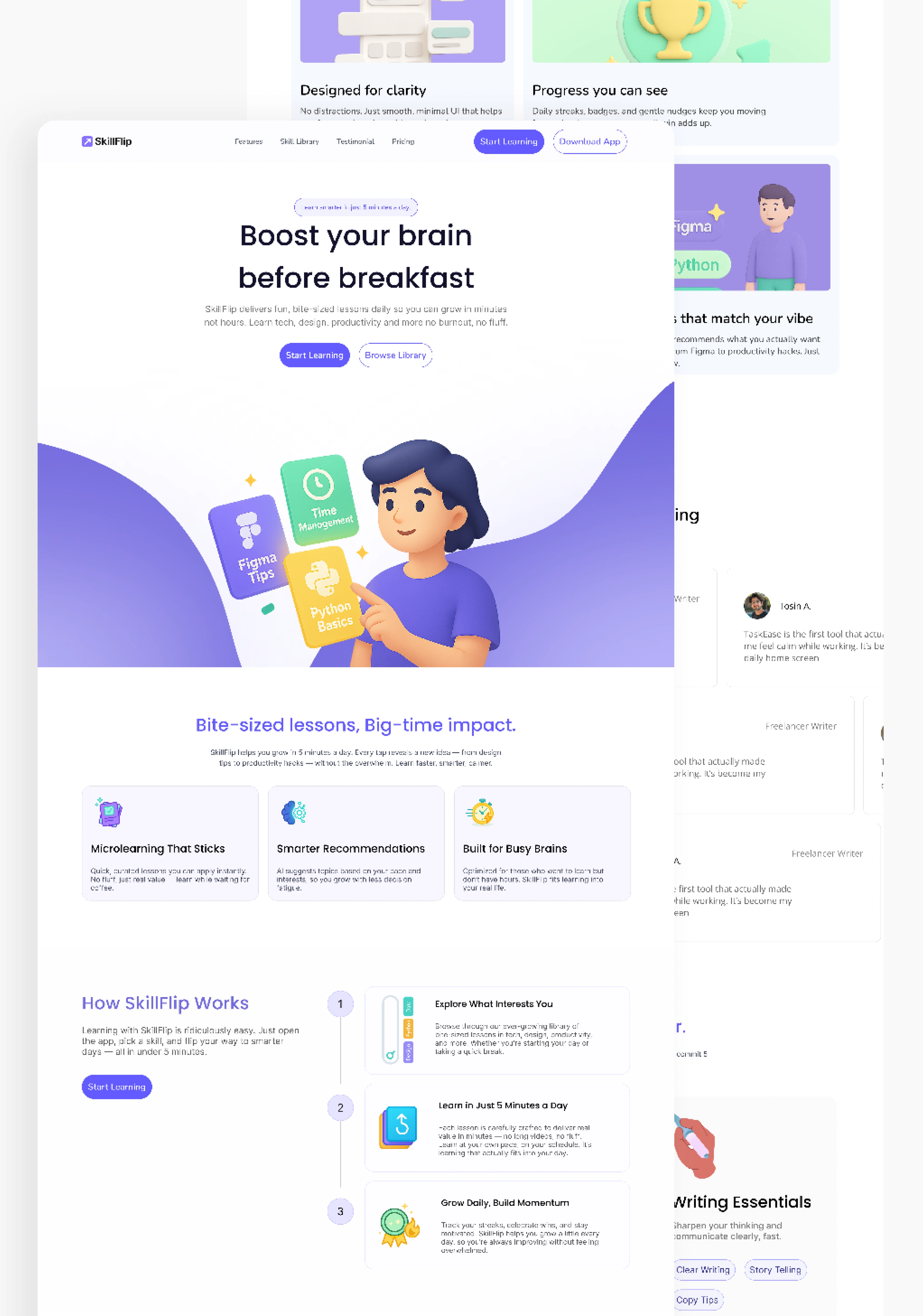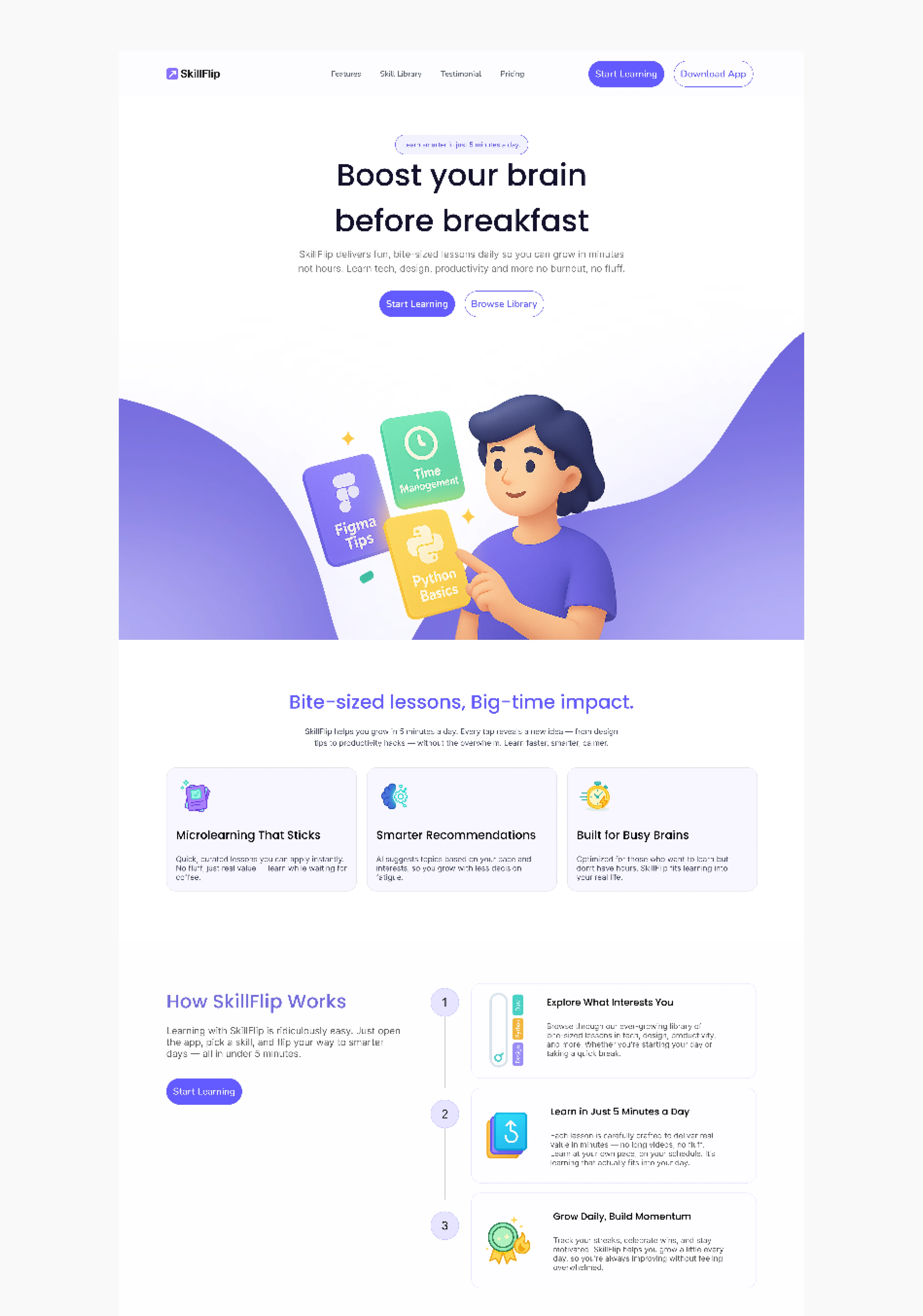 They were launching a smart learning platform focused on microlearning — bite-sized lessons designed for busy professionals. The product was strong, but they needed a landing page that could instantly communicate clarity, structure, and momentum. My job was to translate that into design.