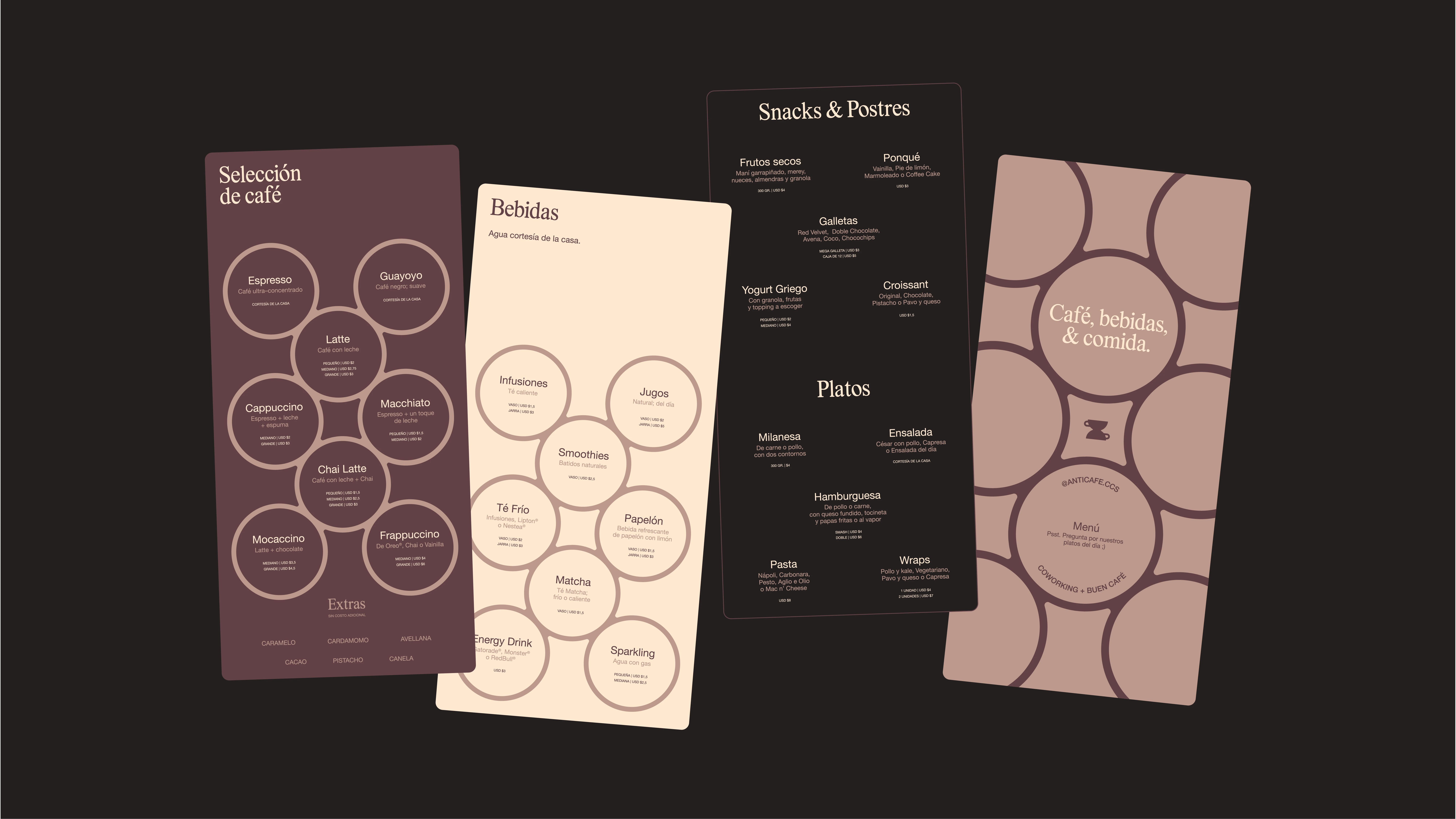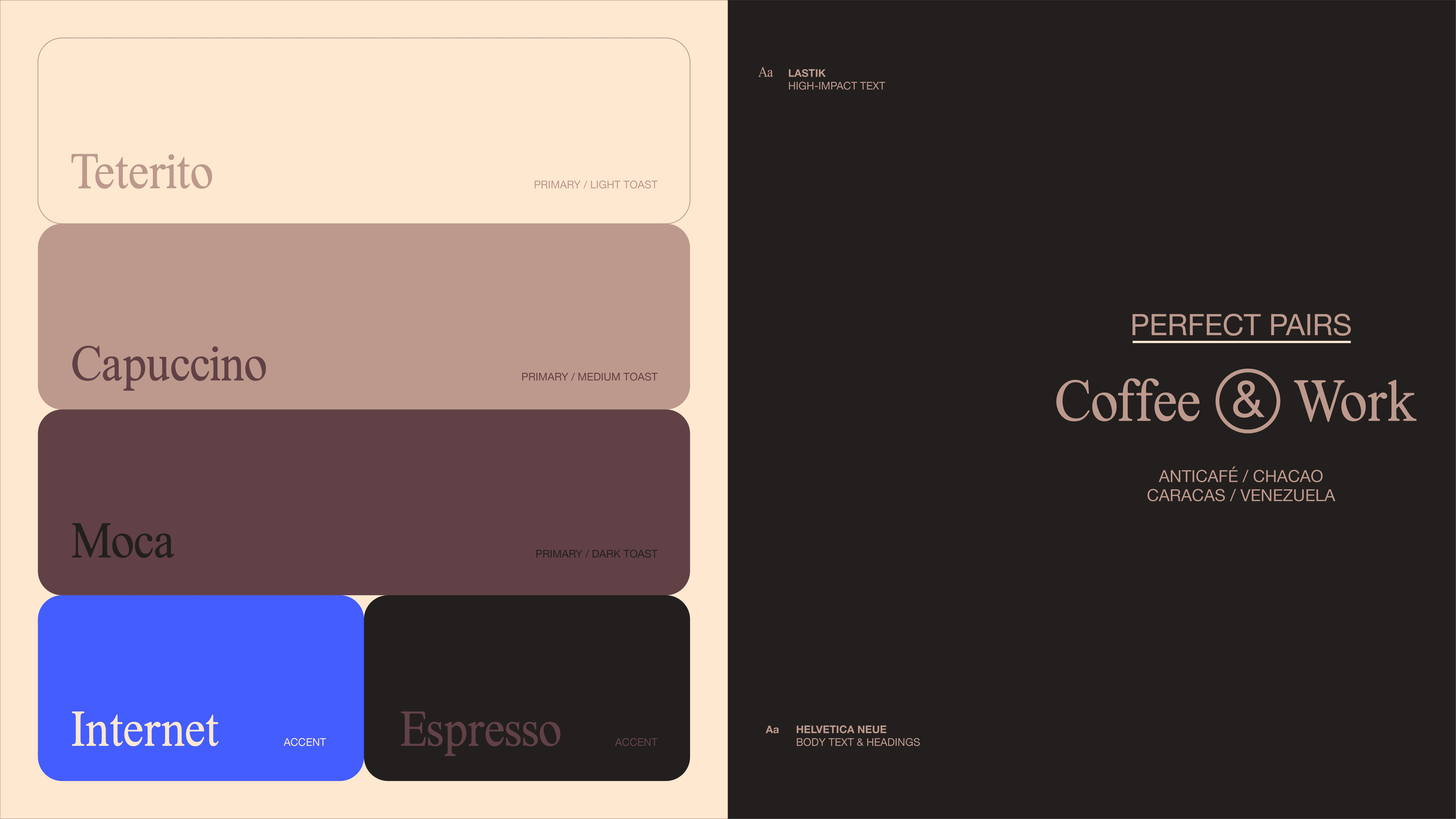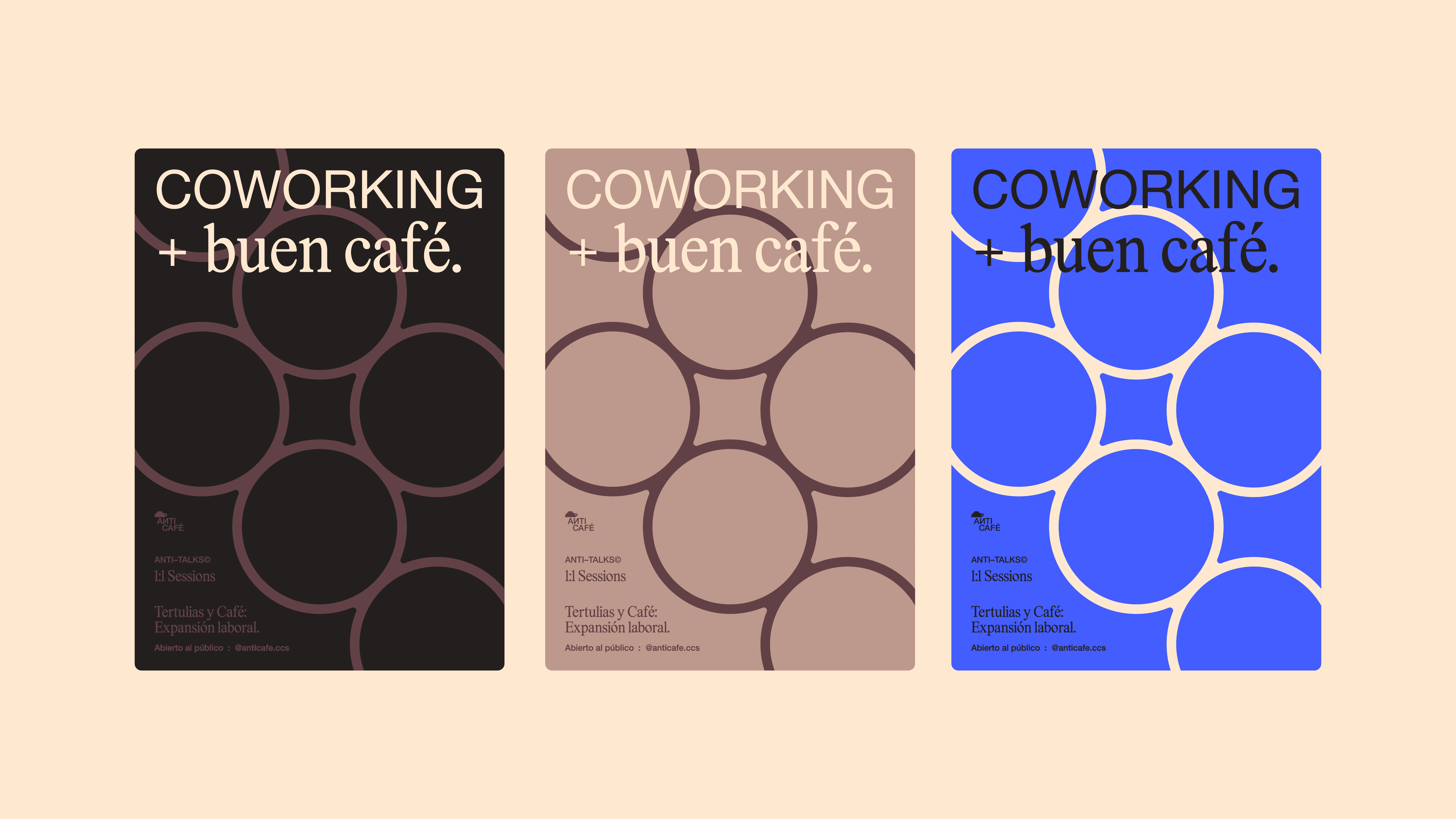 In a market that prioritizes consumption over convenience, Anticafé positions itself as a concept that celebrates and values users' precious time—offering them the benefits of working comfortably (for as long as they need) without the pressure to buy. We explored three key ideas in its identity: time, rhythm, and familiarity.Through 3-module patterns that allude to our 12-hour format and expressive motion graphics, we wanted the brand to represent the passage of time. Meanwhile, the brand's color palette directly references iconic coffee tones, such as Espresso, Teterito, Cappuccino, and Mocha, while incorporating an electric blue, the same one we've seen in internet URLs for years.