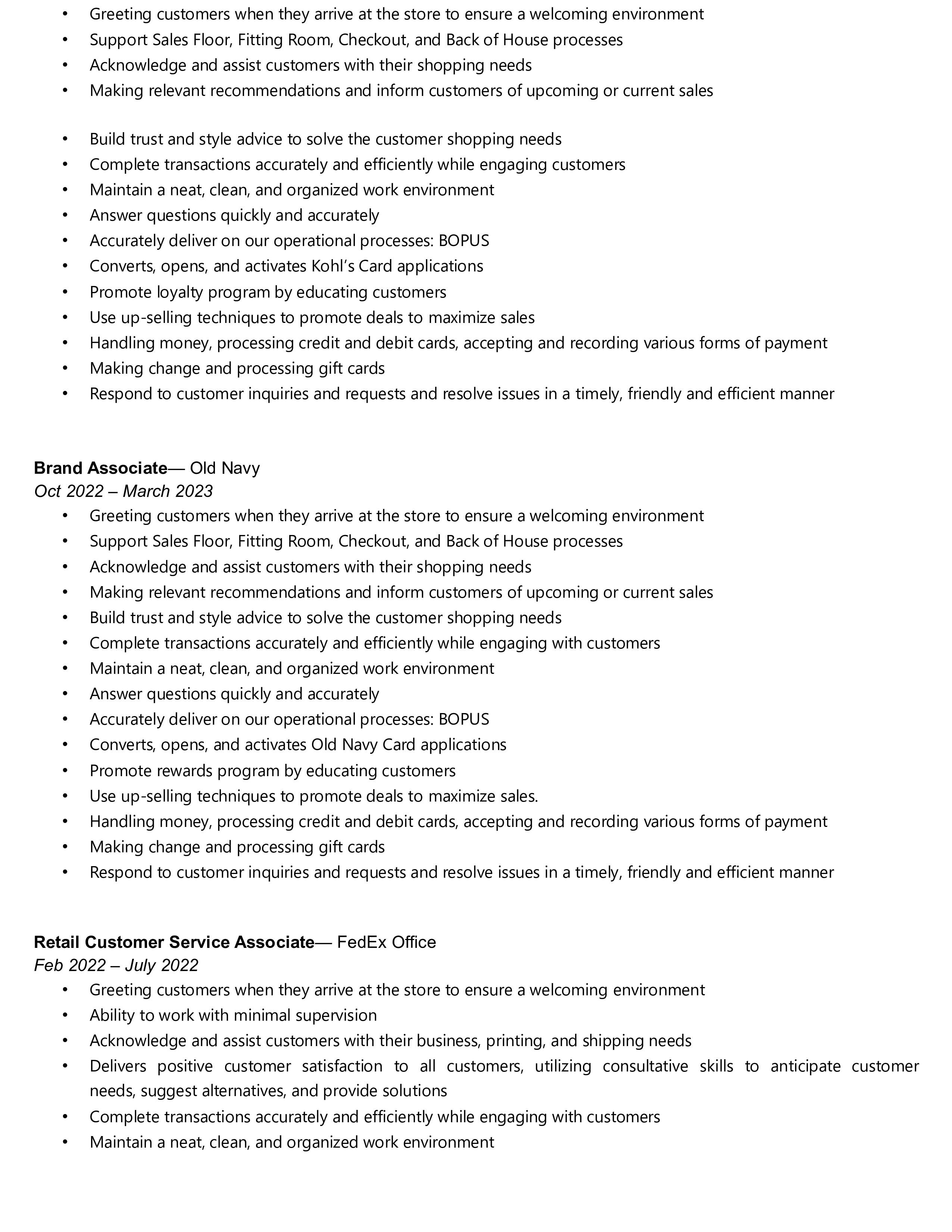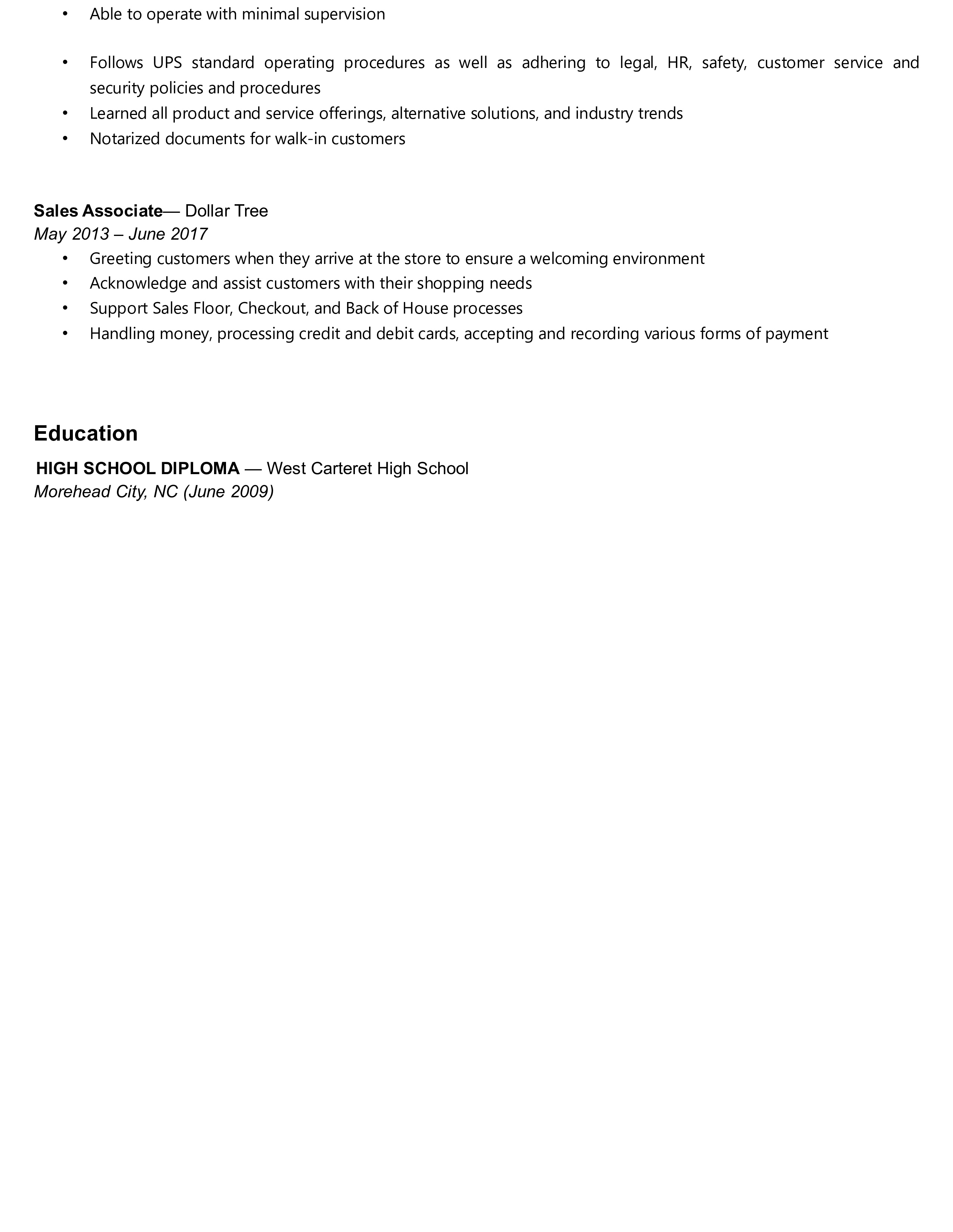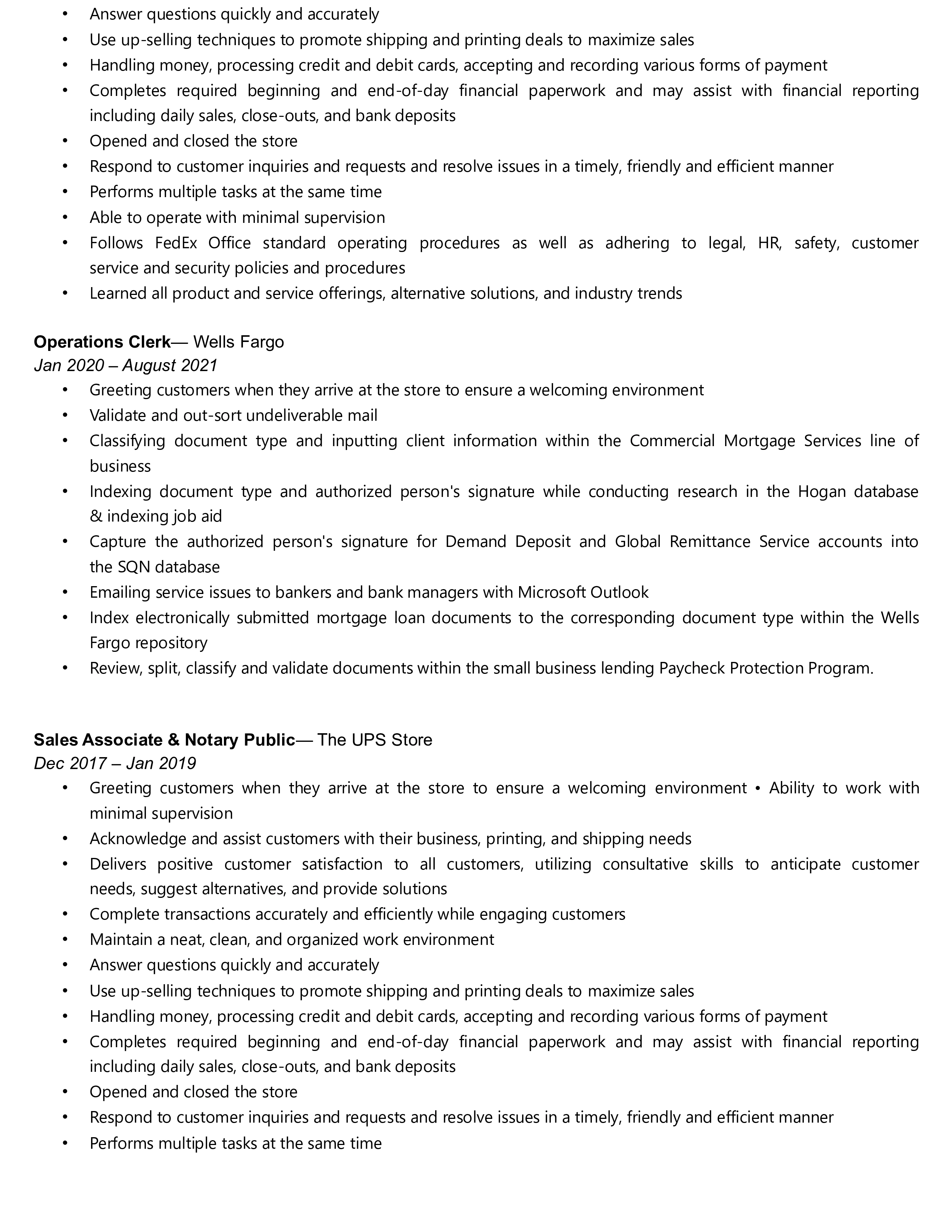 Resumé Work History