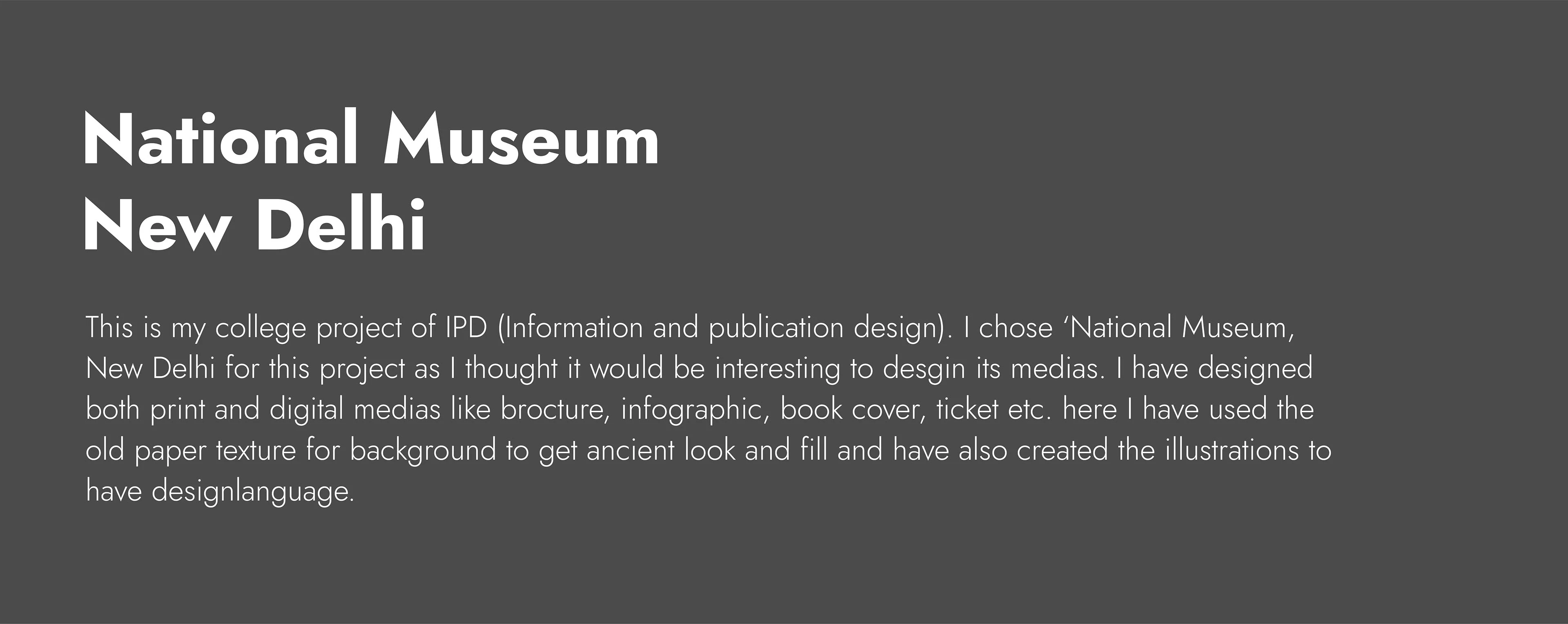 This IPD project (Information and Publication design) was done for National Museum which is located in Delhi.