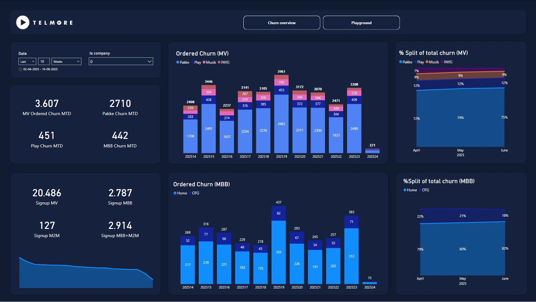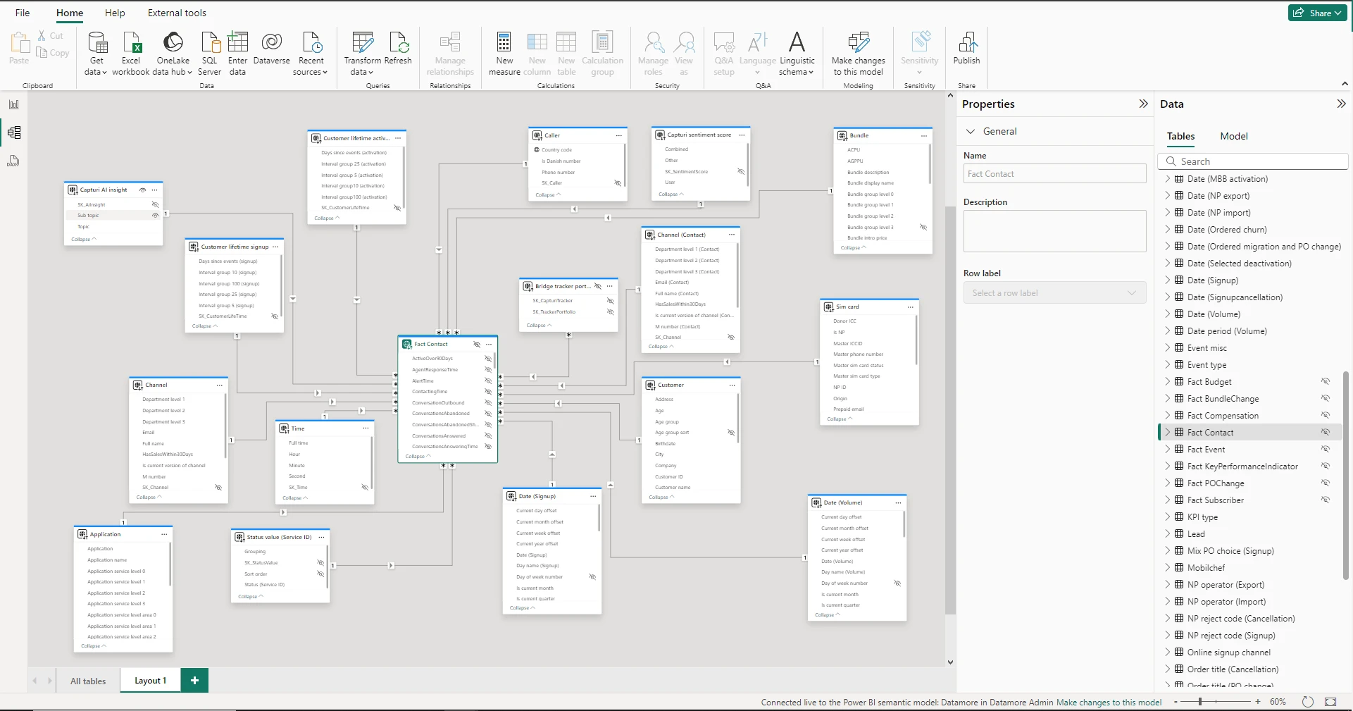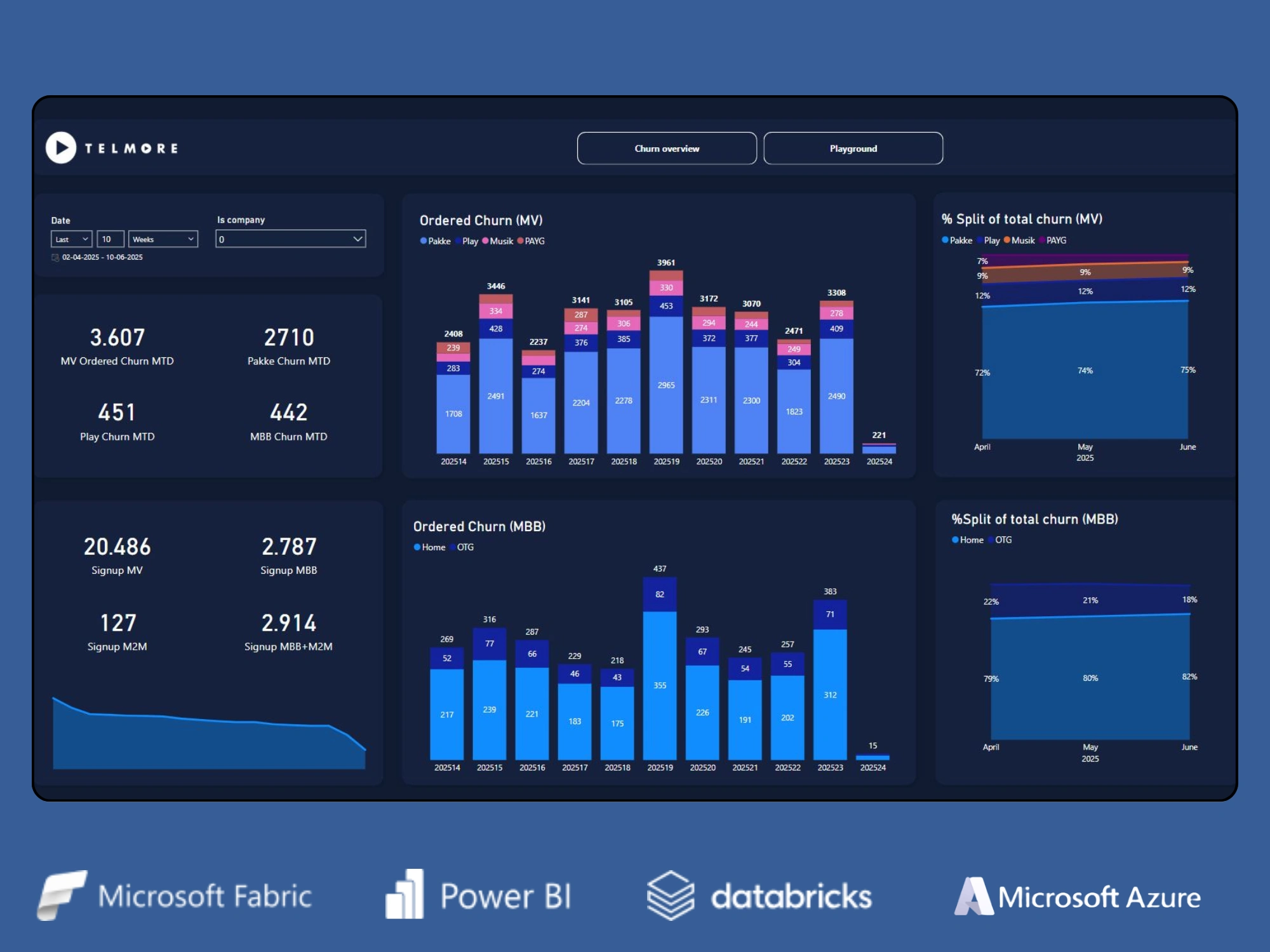 A large Telco company wanted to create a modern Business Intelligence setup and implement various digitalisation strategies to modernise their tech stack and prepare for future market opportunities. The old setup was based on on-premise databases and ad-hoc reports on said database. The company needed a more robust and lean data architecture following best practices, such as dimensional modelling, centralized data governance providing one source of truth, and automation of reports and dashboards through Power BI.