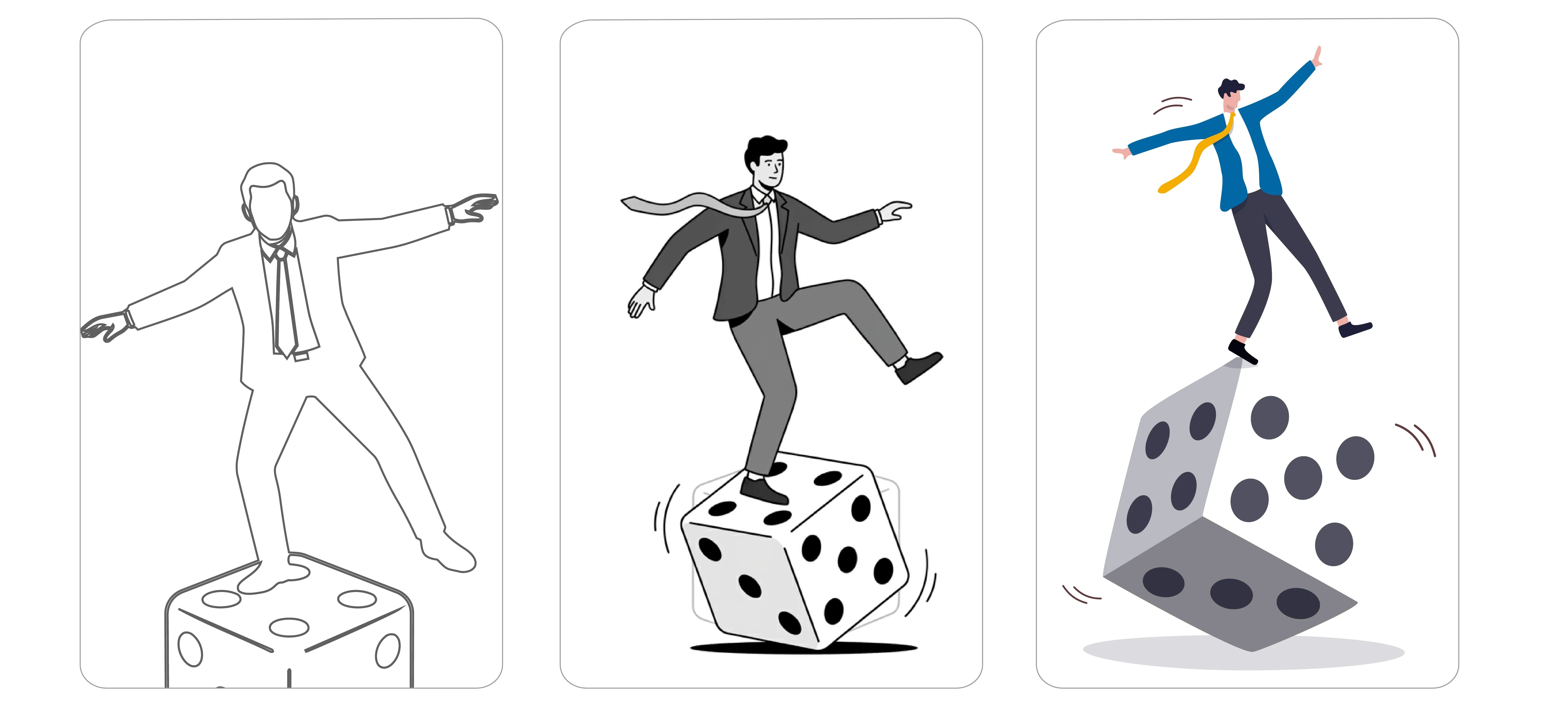 Concept of person on the dice to completion