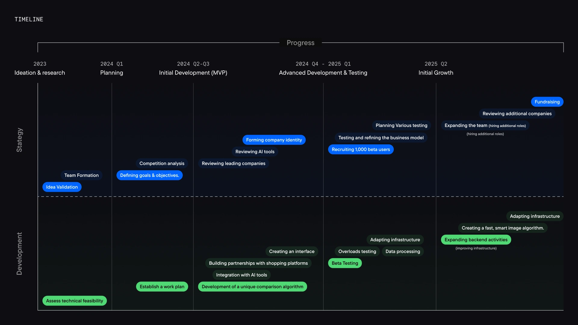 The deck highlighted market potential, strategic partnerships, and the platform’s growth engine, presented in a modern, tech-forward style. Clean layouts and polished visuals emphasized the AI-driven experience, while carefully chosen data points grounded the story in measurable impact.