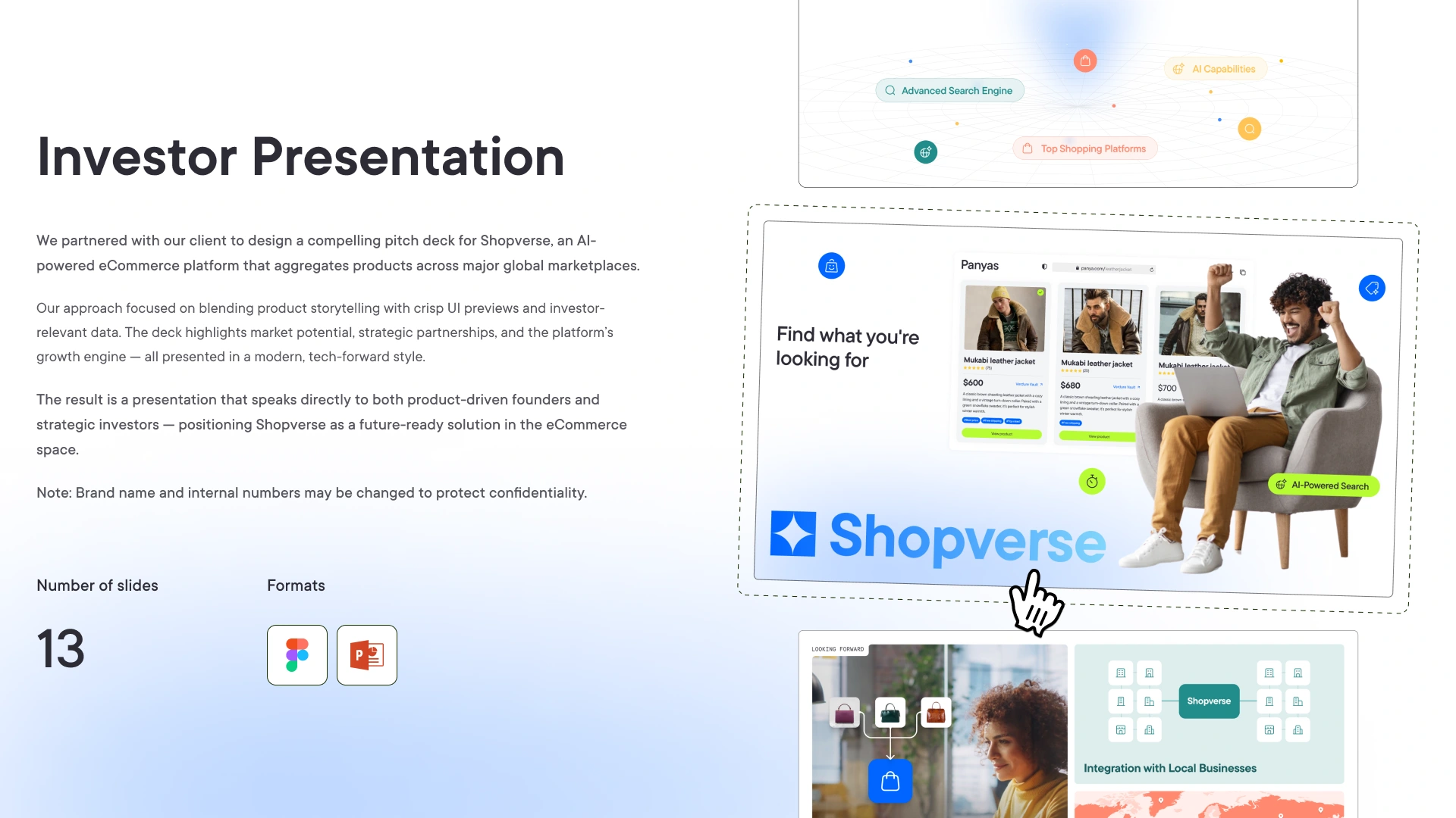 Our approach focused on blending product storytelling with crisp UI previews and investor-relevant data. The goal was to demonstrate not just what the platform could do, but why it mattered—positioning the product as both innovative and commercially viable.