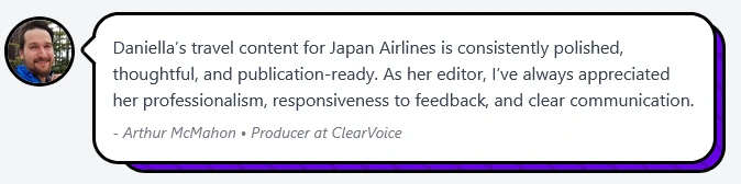 Below are some ghostwritten articles I wrote for Japan Airlines (JAL). These are just a few of the many pieces I wrote for their tourism campaign before opening to tourists after the pandemic.