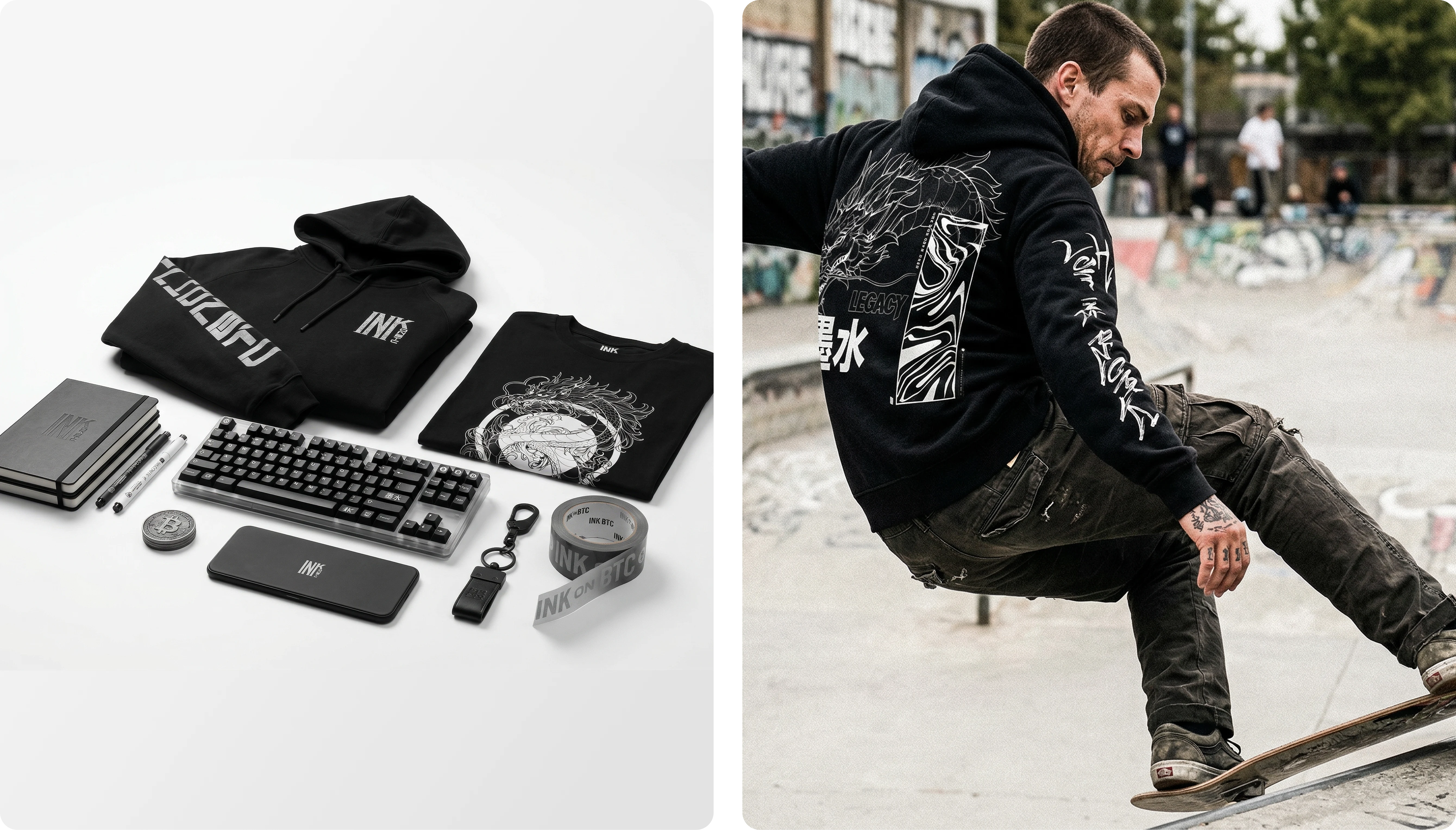 The best community merch doesn't try to market the project, it lives inside the world the project already built. For INK, that meant committing to the same craft standards the core team set: deliberate, ink-first, Bitcoin-permanent.