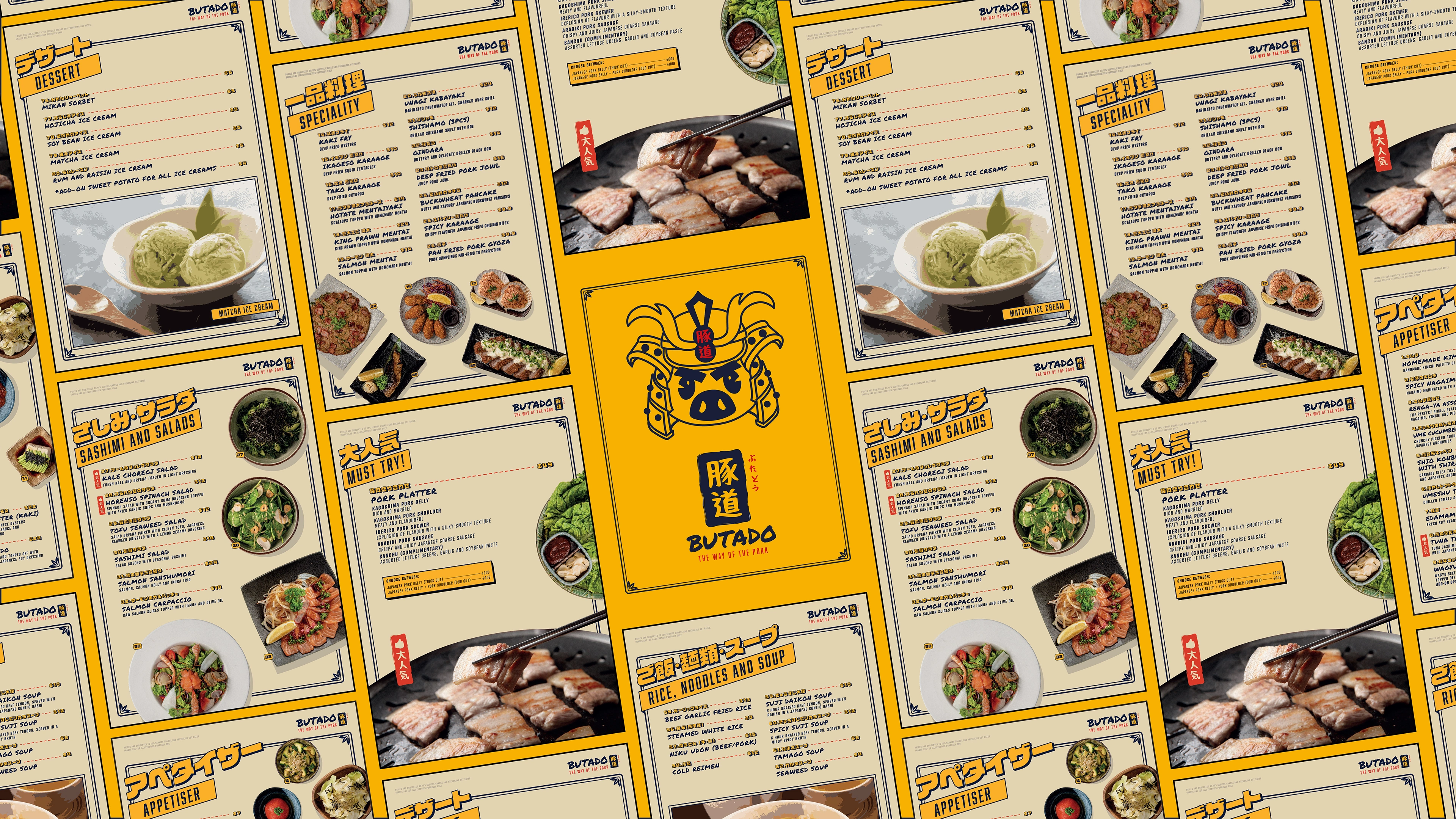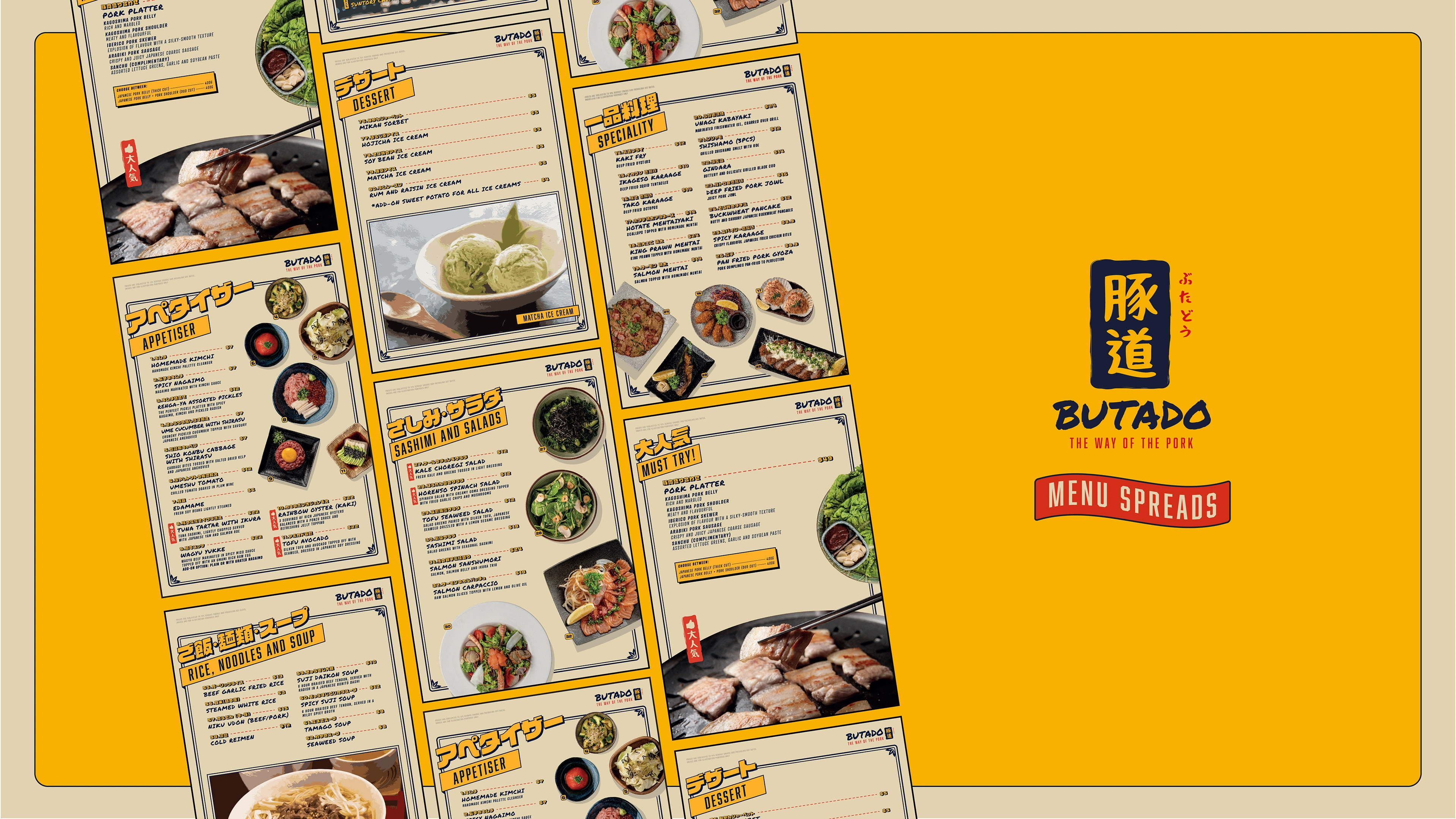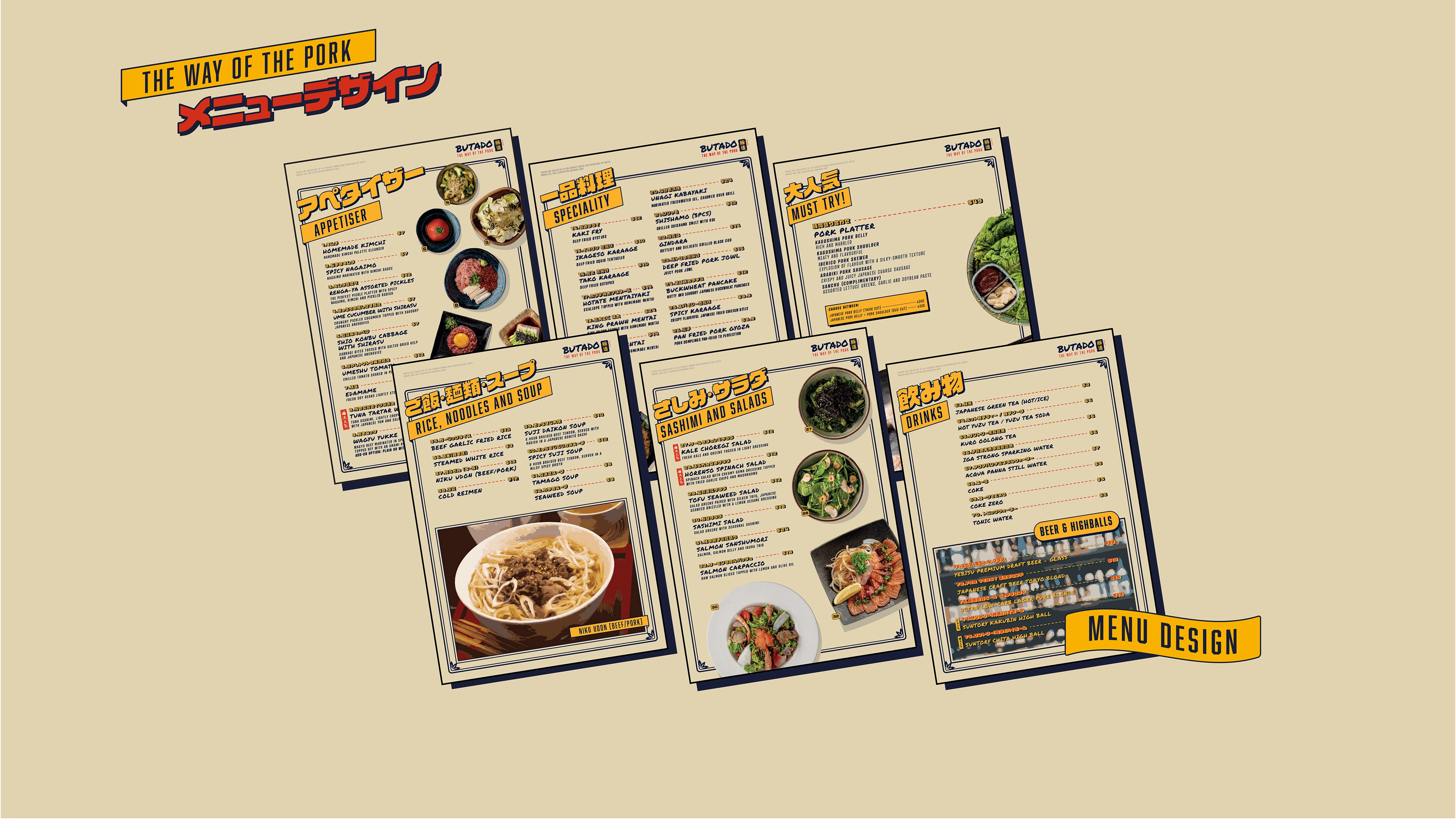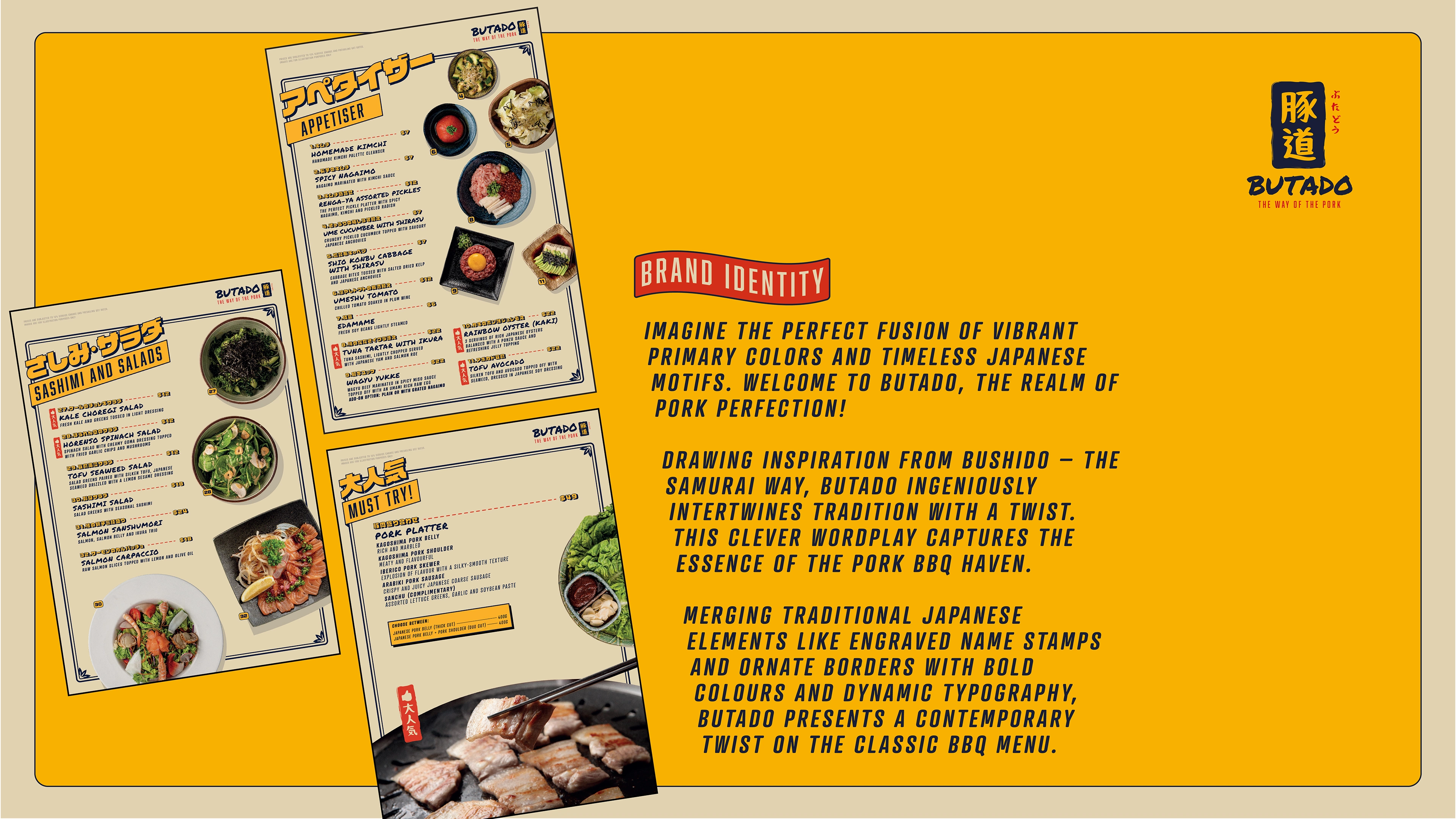 Brand Identity for a Japanese Pork Restaurant, Menu Design and Layout for their new upcoming outdoor concept.