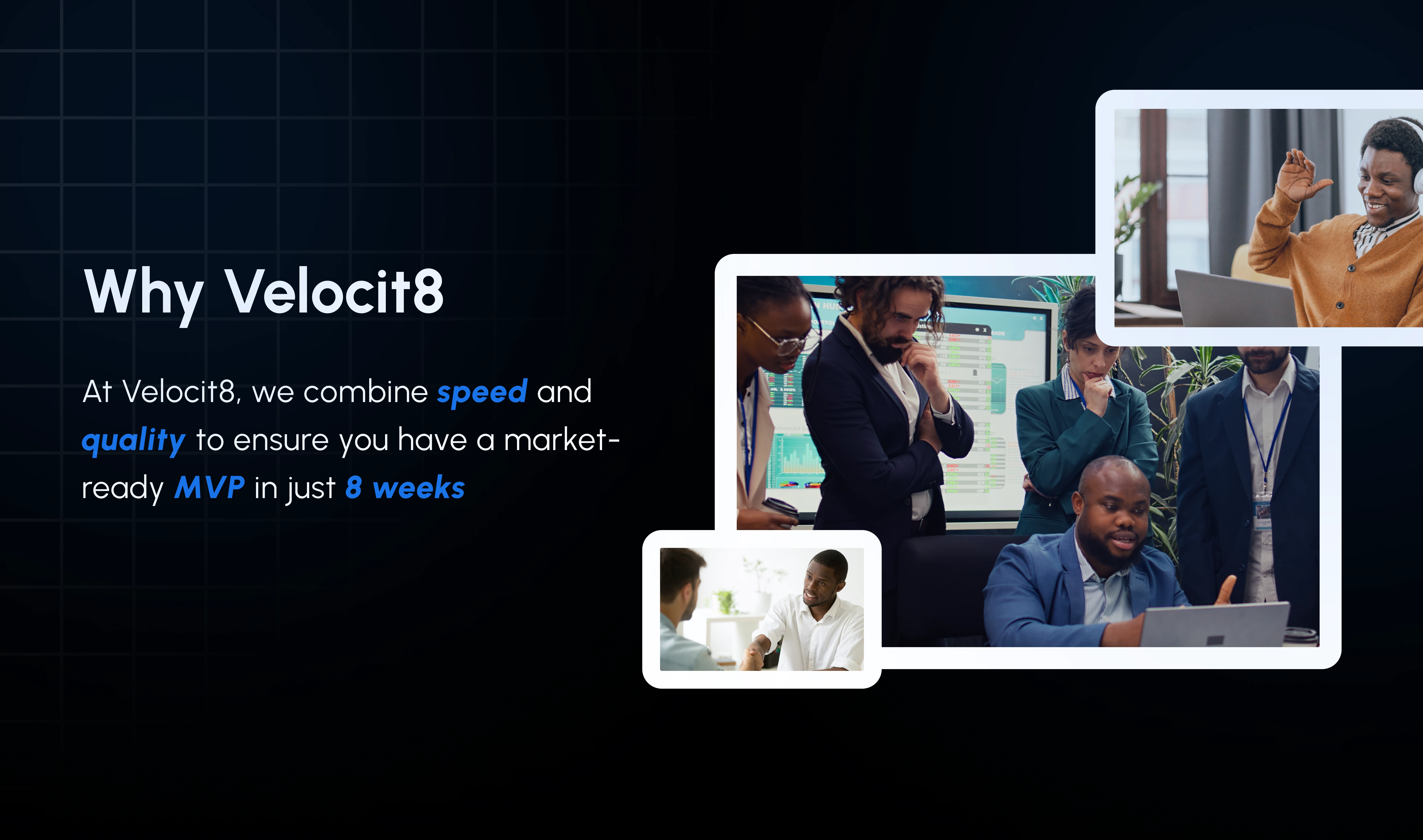 The new landing page established Velocit8's brand identity and immediately began capturing high-quality leads from founders looking to build their MVPs fast.