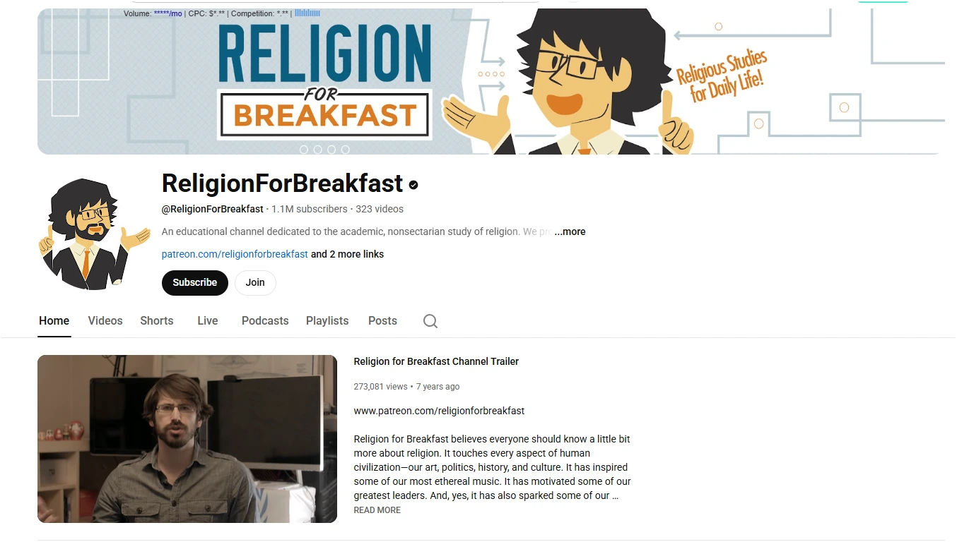 The Religion Department, an extension of the team behind YouTube's Religion for Breakfast, is an online learning community dedicated to the critical and academic study of religion. The platform connects students of all experience levels directly with scholars and experts. It is an academic organization, non-confessional, and not affiliated with any religious tradition.