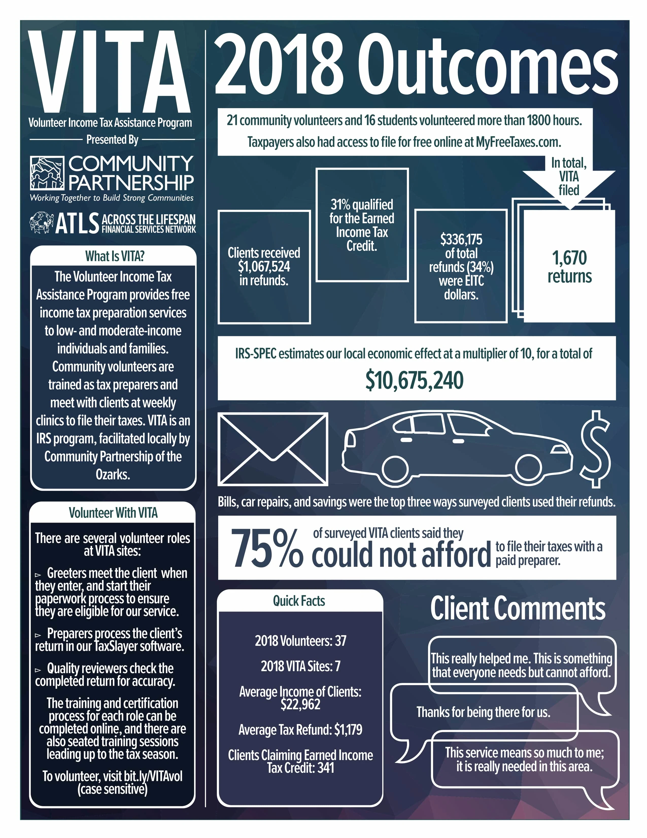 Infographic sheet of results measurable for the Volunteer Income Tax Assistance program.