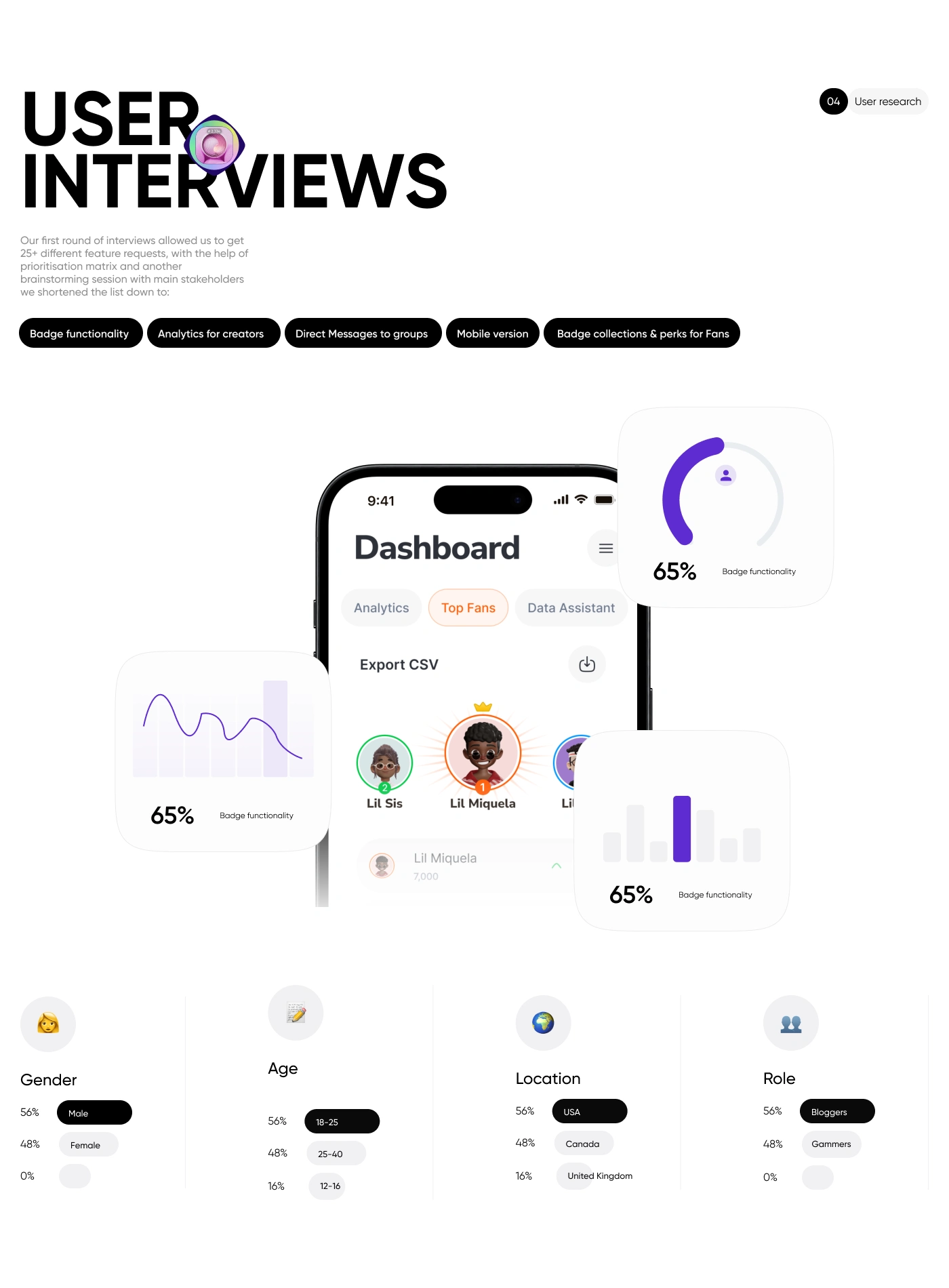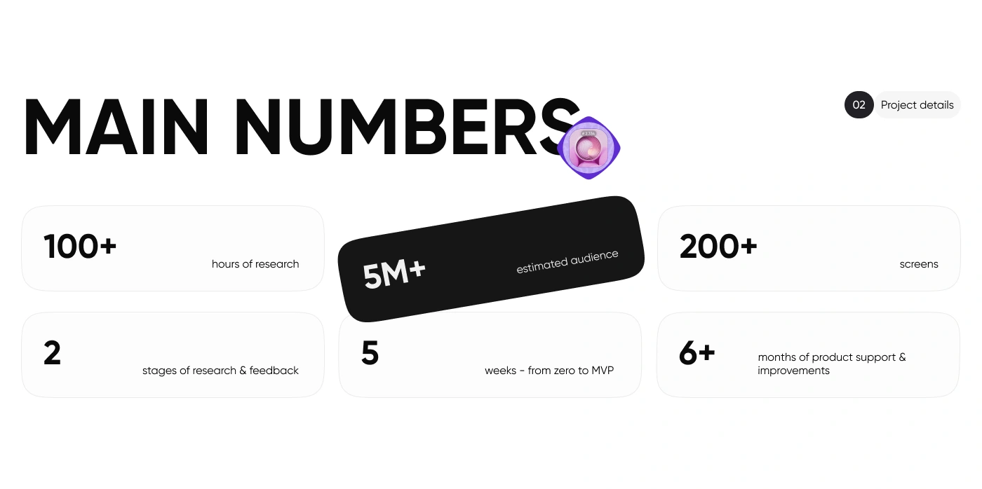 - 4 weeks from zero to MVP (mobile + 2 desktop UI sides for creators & fans) - 6+ months of product support & improvements - 5m+ audience - 200+ screens