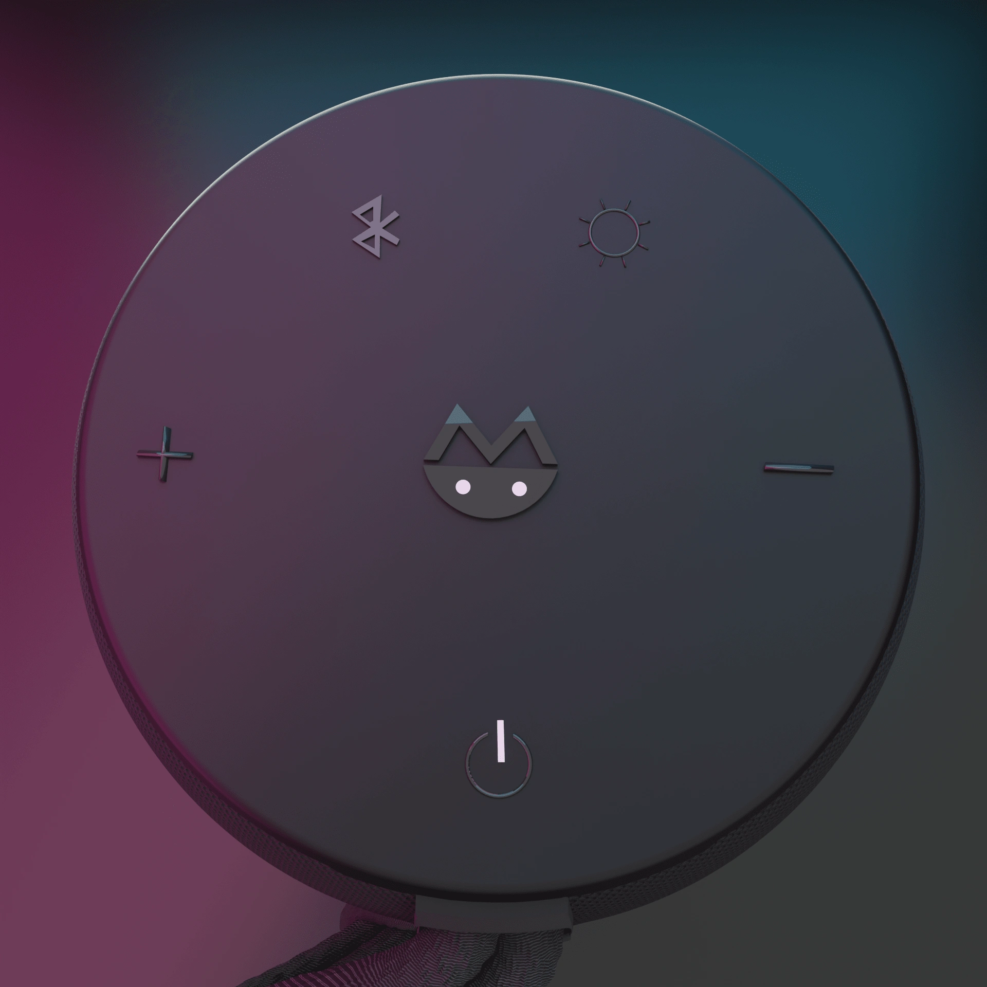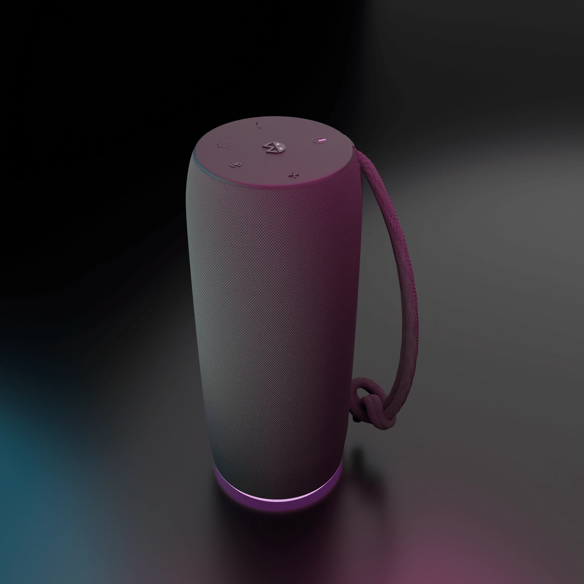 Speaker product render with experimental contrasting colors. Here we use a white backlight with contrasting key and fill light colors to create a professional e