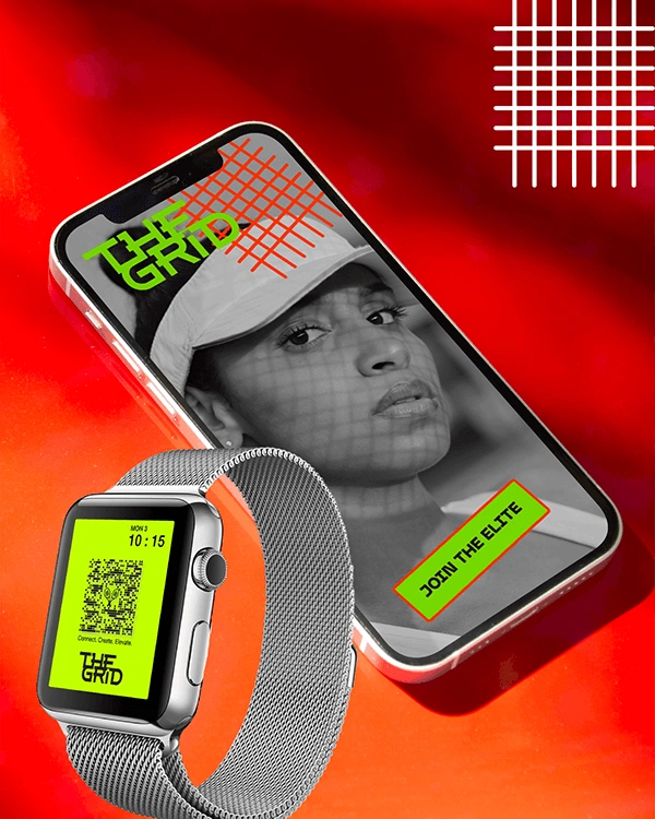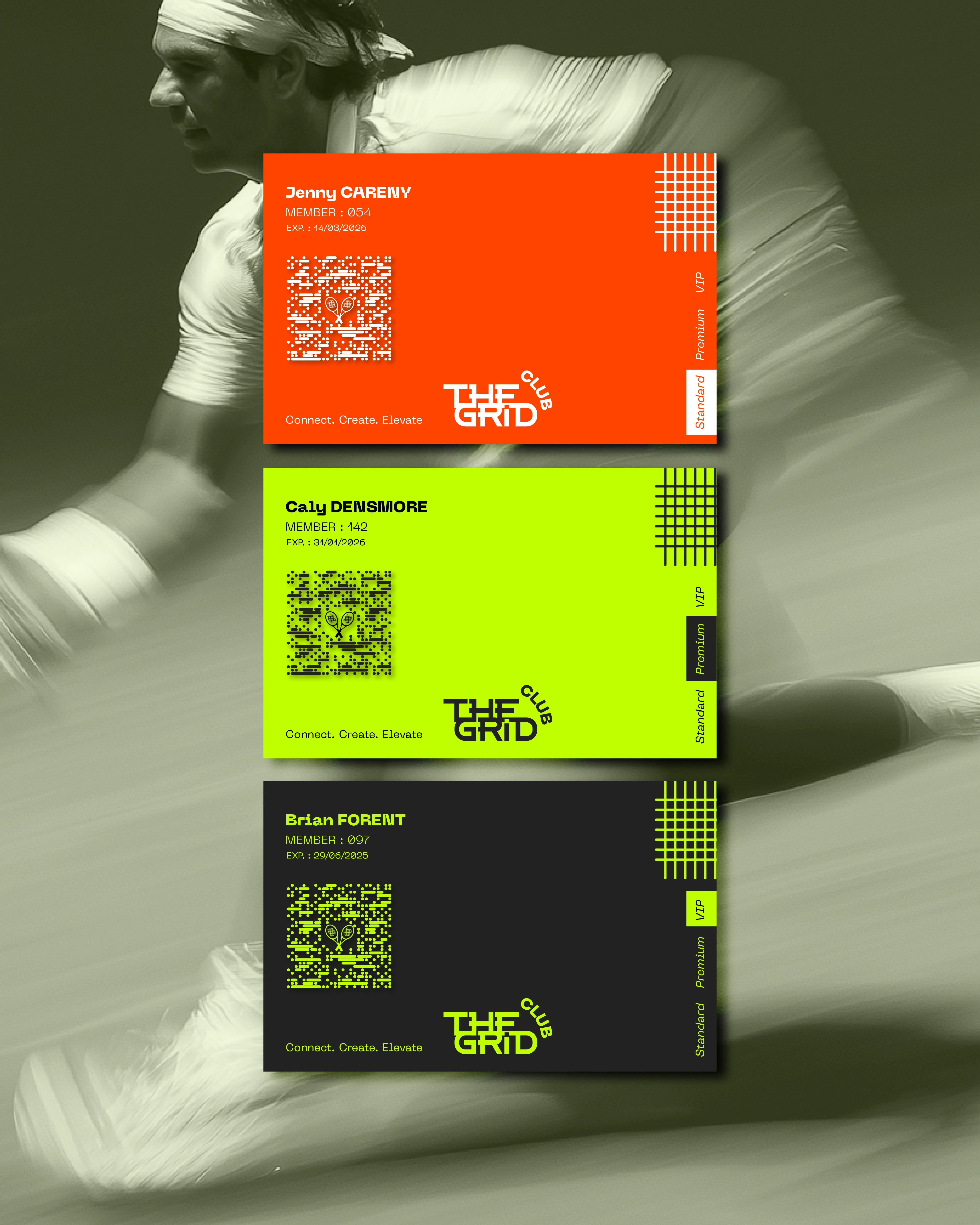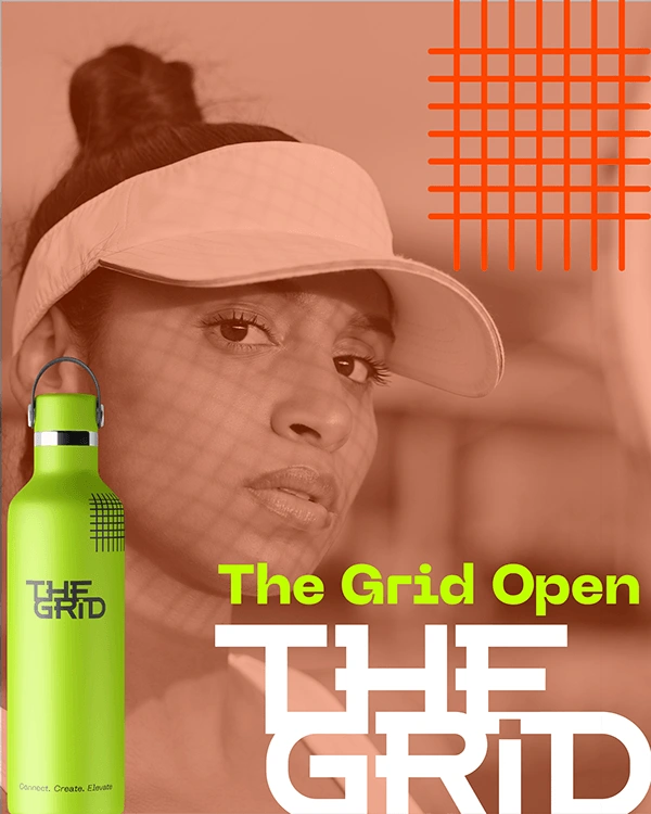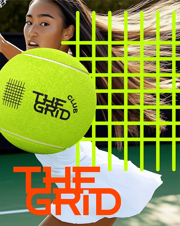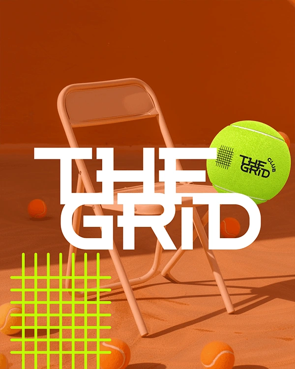 THE GRID is a modern tennis club branding project combining bold typography, sport culture and a premium editorial aesthetic.