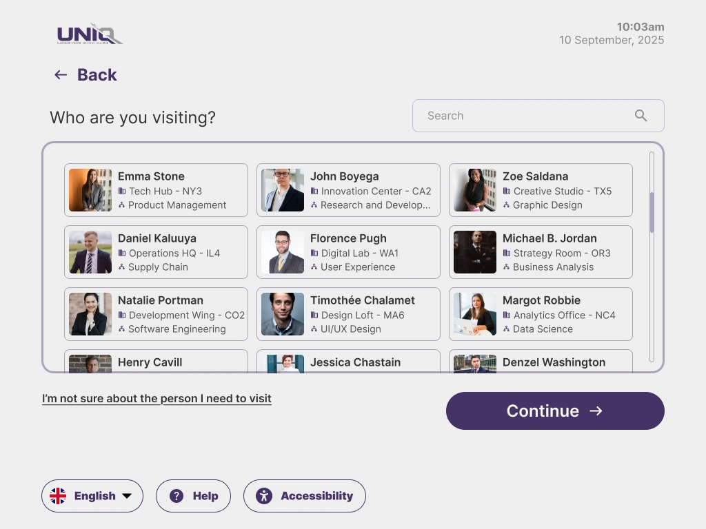Designing a digital kiosk solution to streamline the check-in process for visitors and contractors at high-traffic facilities, replacing manual, paper-based systems.