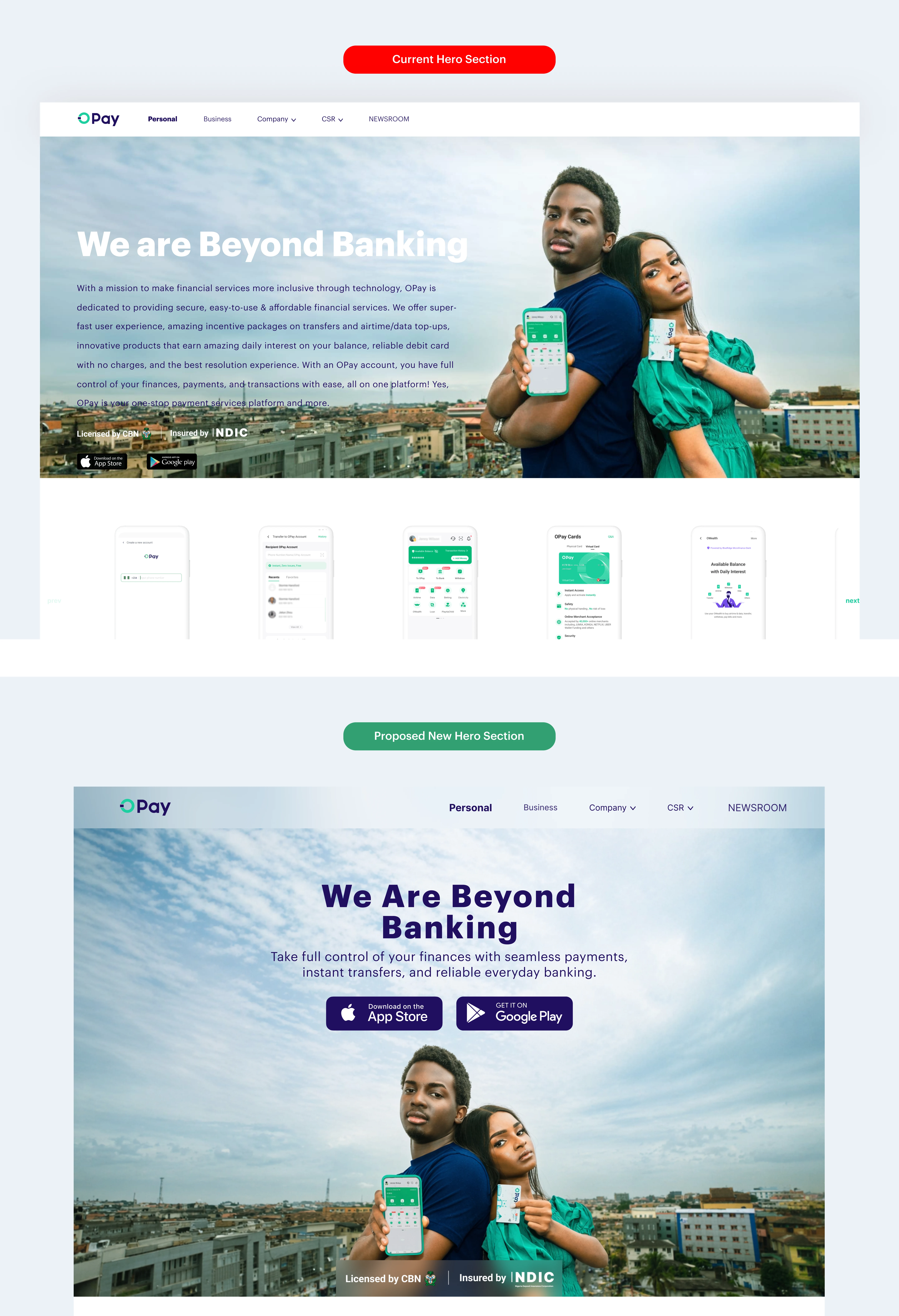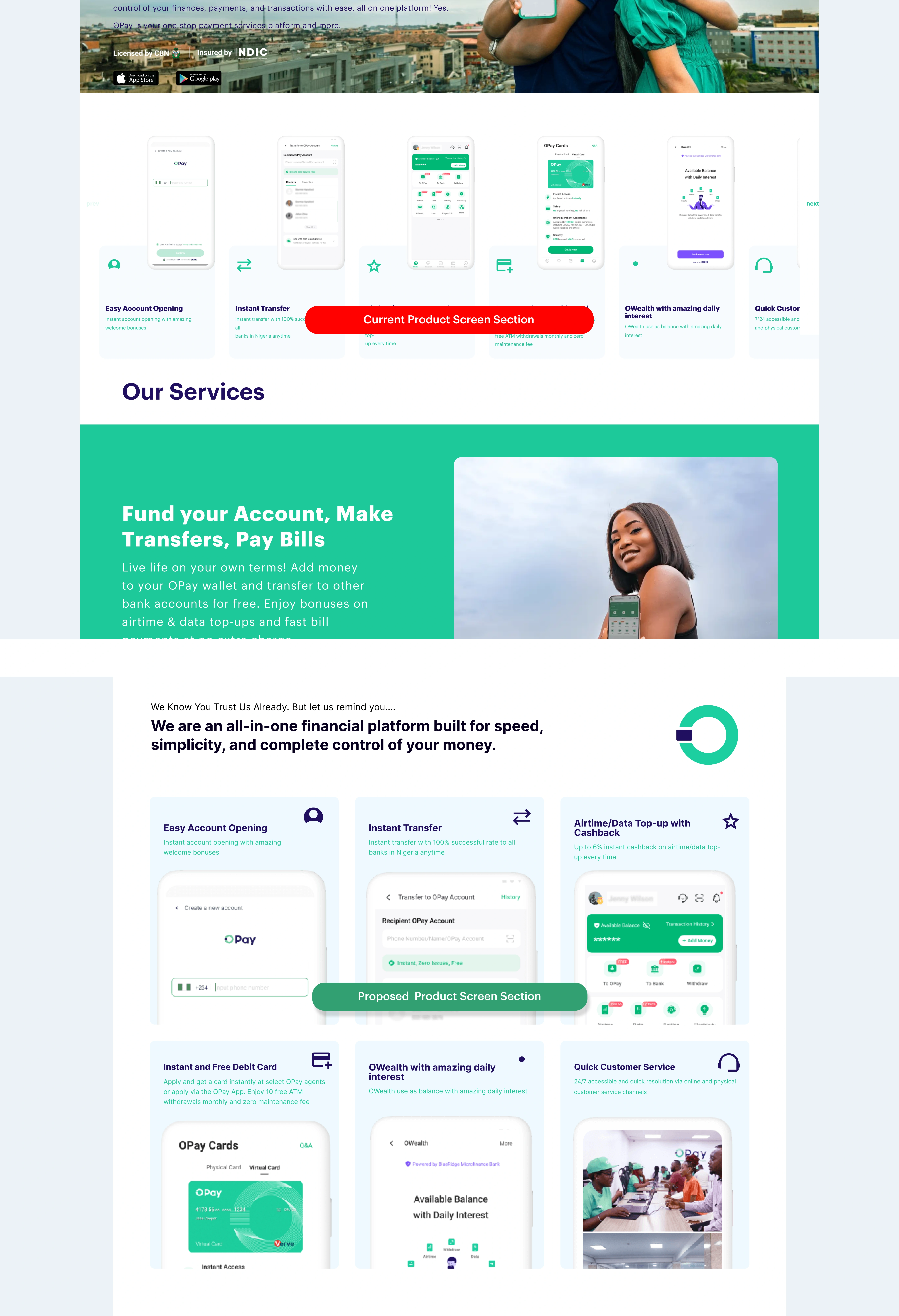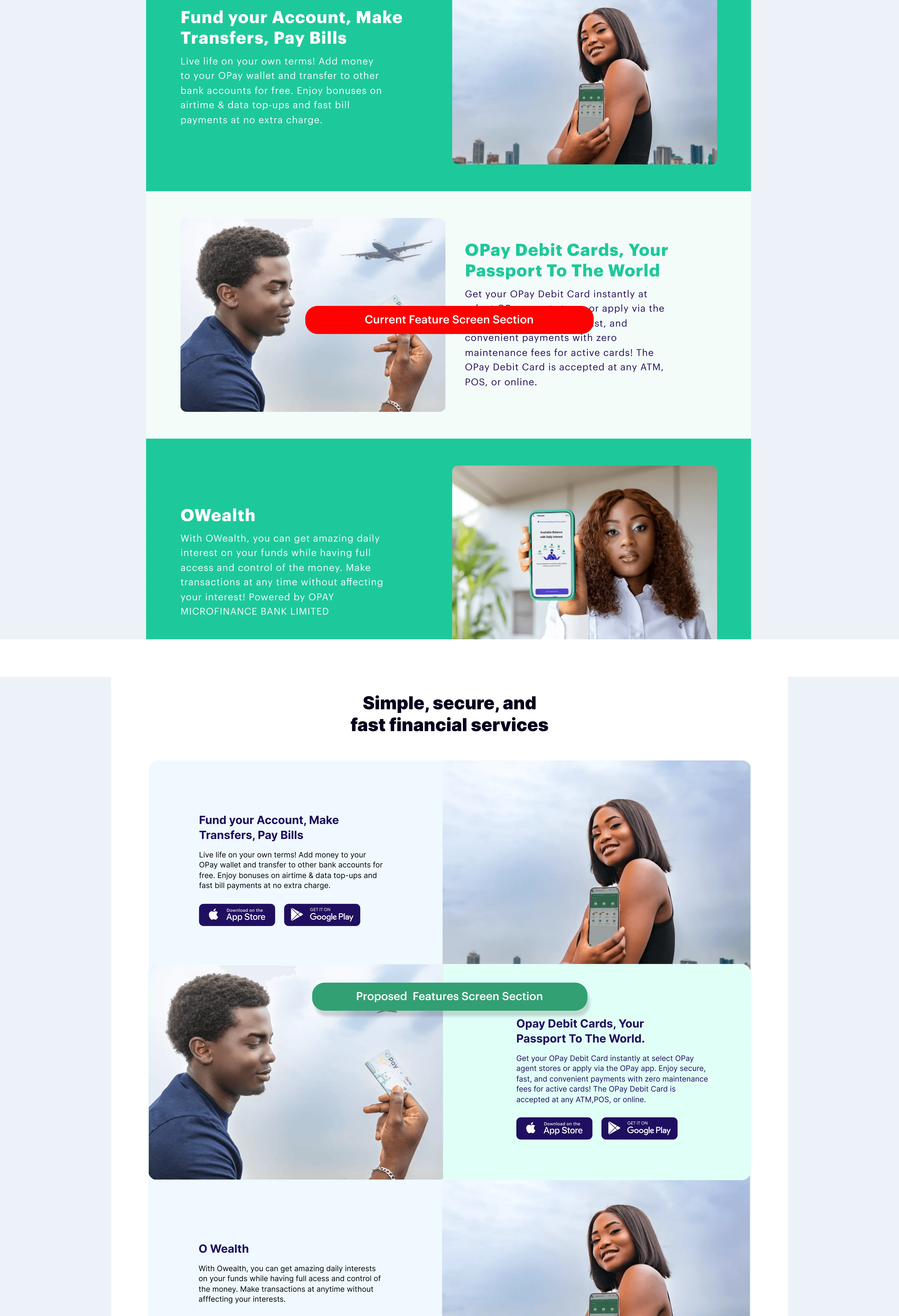Redesigned OPay landing page to improve user clarity, conversion, and trust. This demonstrates my ability to work around complex fintech products and deliver.