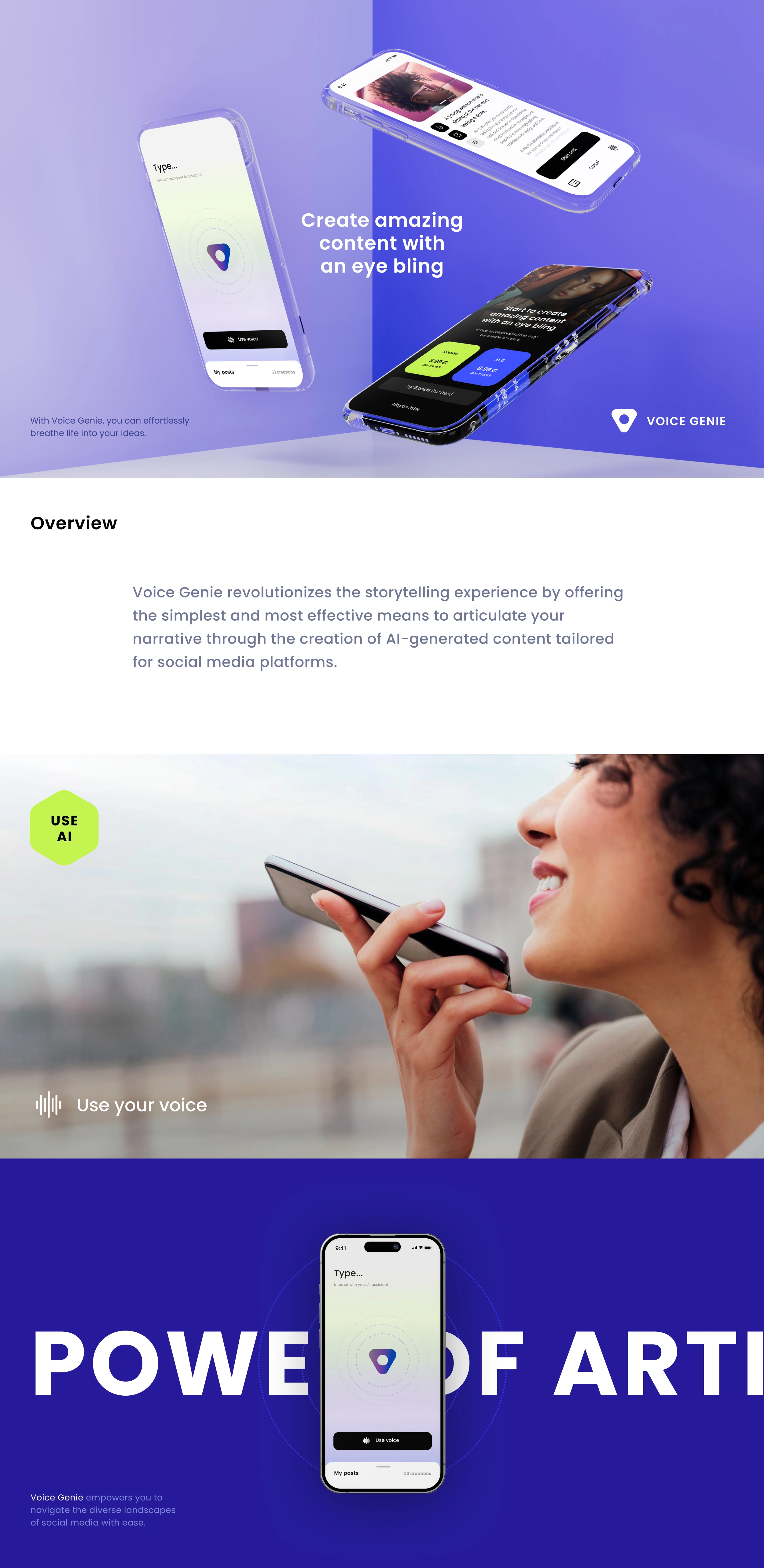 Concept & Design for an AI mobile app that creates content just by speaking with the app.