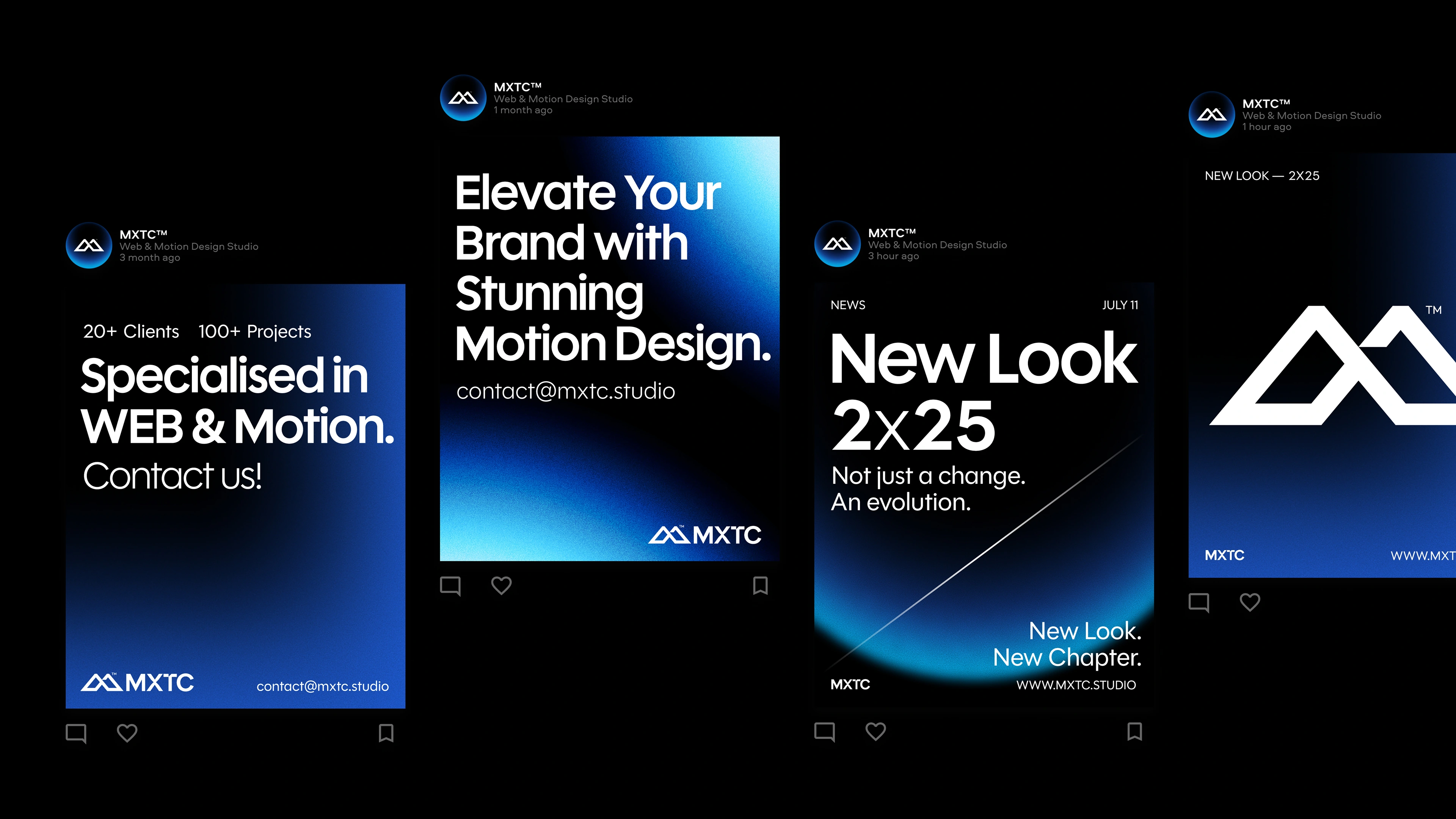 In gathered collaboration, the created symbol is a combination of letters m & x into a unified monogram. MX is the initial of MXTC, the shortcut name of the studio's founders, last name Matić. The form of a symbol is executed in sharp, clear, and dynamic visual language.