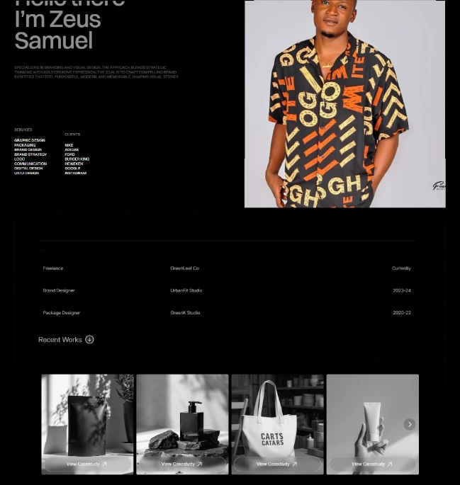 Designed and developed a modern portfolio website for a creative professional, focused on showcasing work, personal brand, and services in a clean and immersive way.