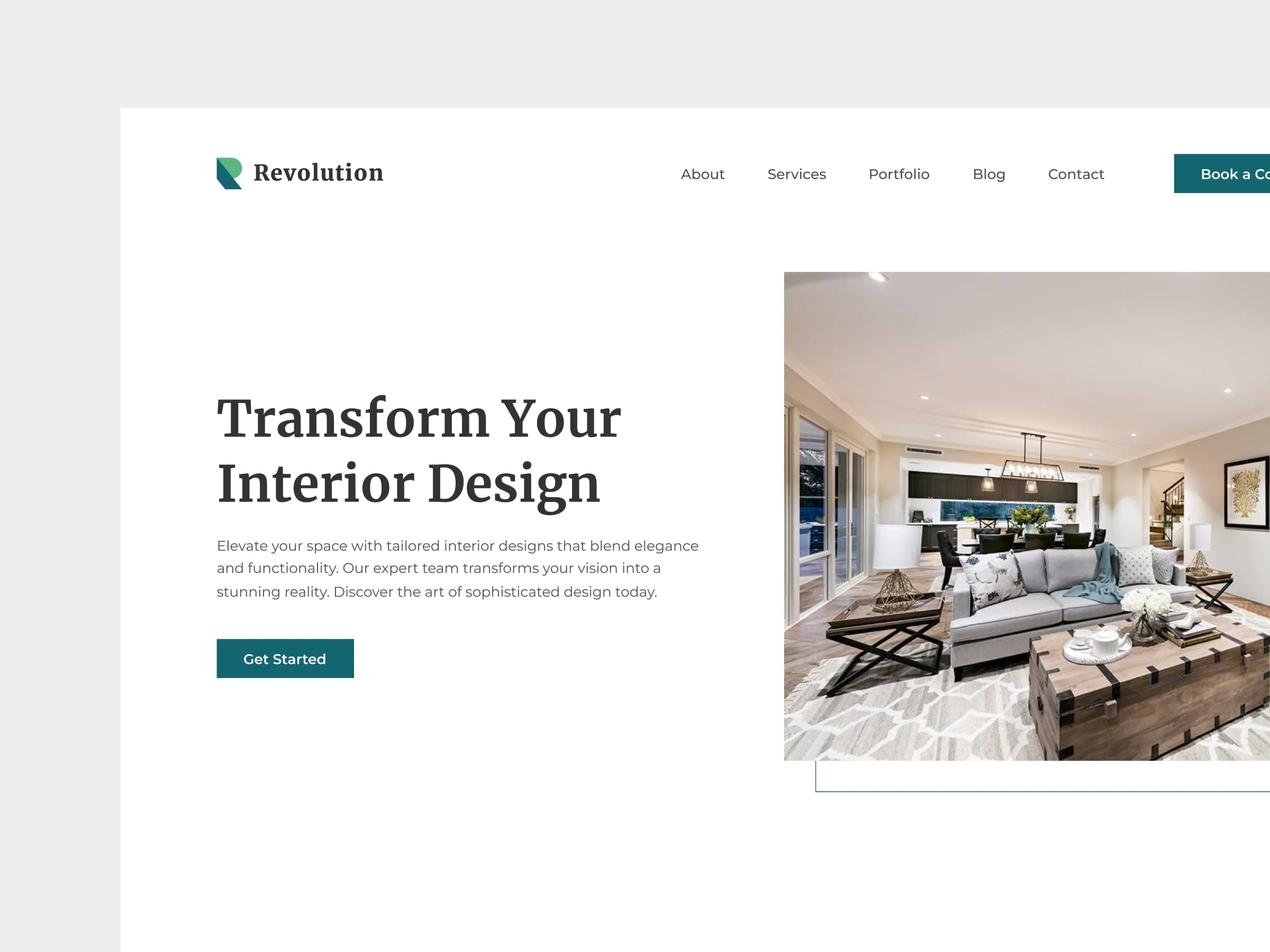 Revolution is a sleek, conversion-focused landing page designed for an interior design company aiming to elevate its digital presence. The goal was to create a visually compelling and user-friendly experience that reflects the brand’s elegance while driving consultation bookings.