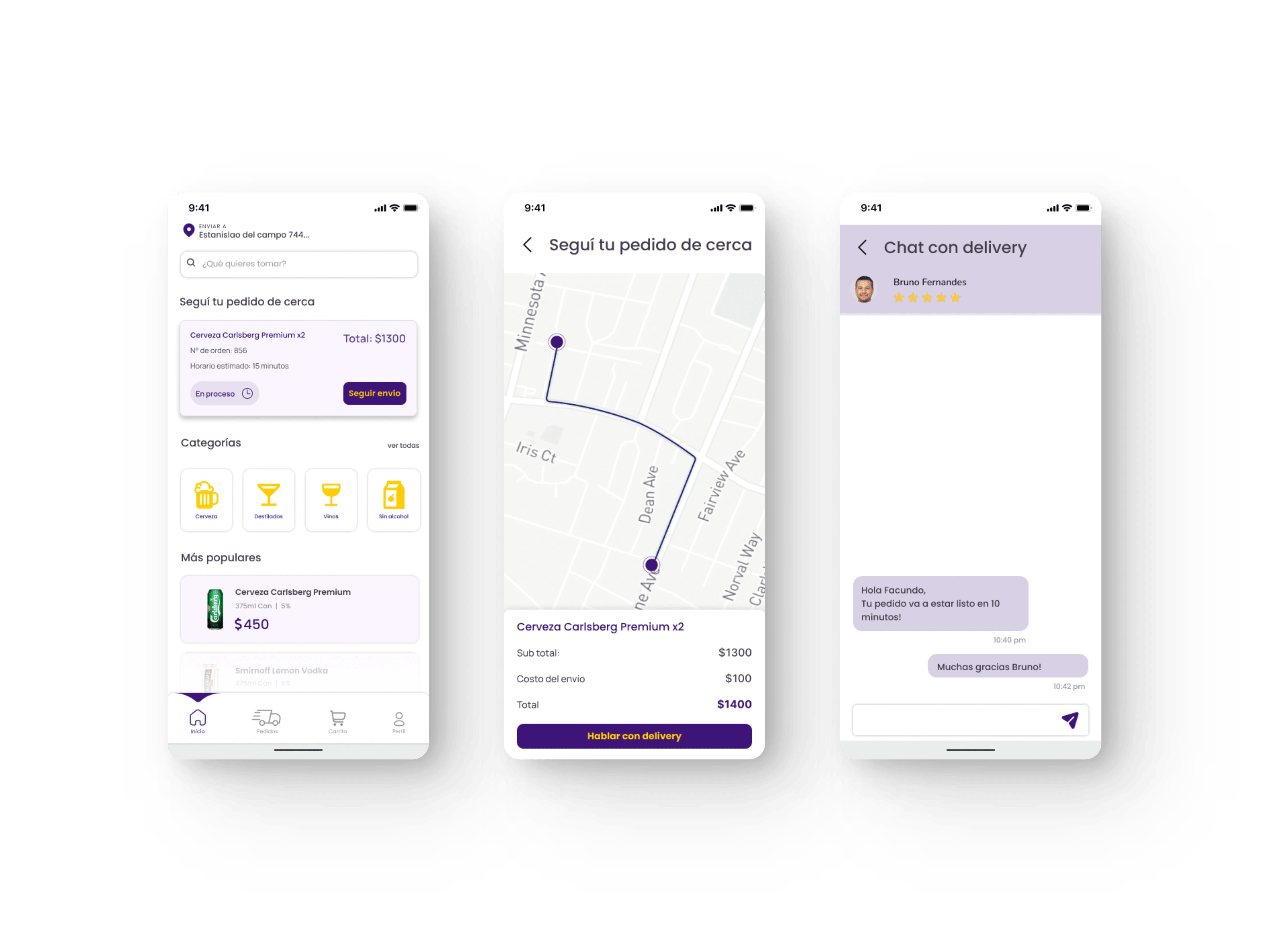 A. We added a card at home that allows the user to see the status of their product and track the shipment. B.We added a real-time map to reduce the feeling of waiting. C. A direct chat was added with the delivery