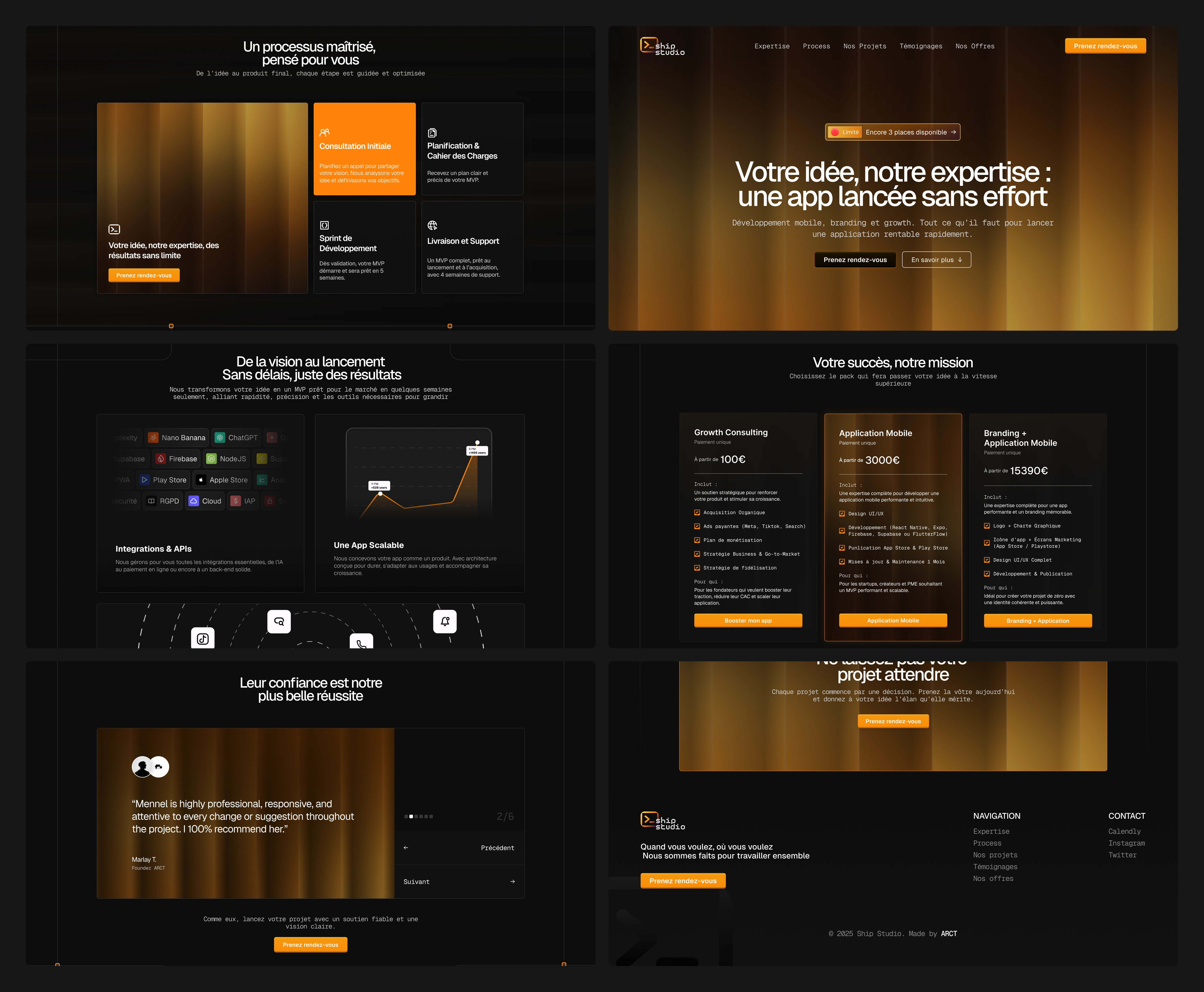 Ship Studio is a mobile application studio that seamlessly blends design, technology, and user experience to craft apps of exceptional precision and elegance. Each project is the result of rigorous research and a passion for innovation, where functionality and interface meet in perfect harmony. Driven by a pursuit of balance, Ship Studio cultivates a design language that merges minimalist clarity with bold, impactful interactions.