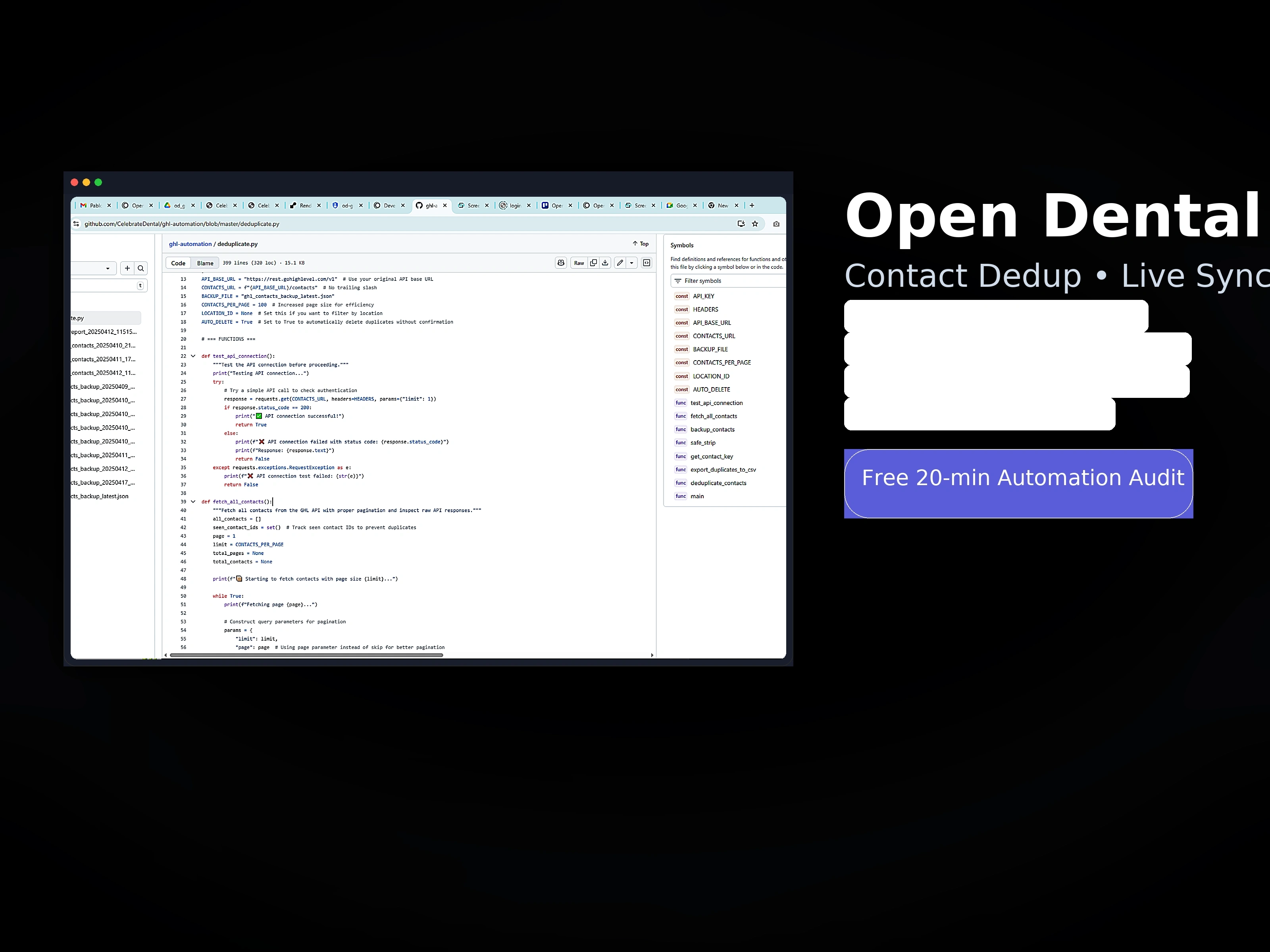 Dedup & sync GHL contacts with Open Dental. Backups + CSV audits + safe deletes. Cleaner pipelines, accurate dashboards.